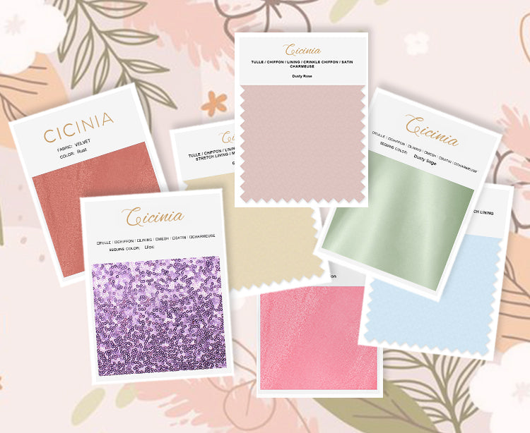 Order Swatches First. Choose the color that best suits your wedding theme and find your favorite fabric.