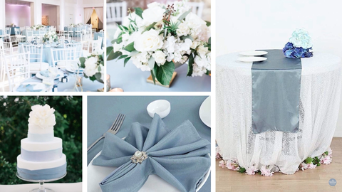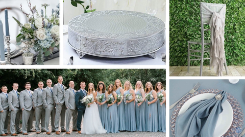 So with pantone's 2020 color of the year being classic blue. We've seen a huge uptick in blue being used in event design. Now like some of the years past, we're seeing everything in a more muted or what we like to call a dusty tone, which basically just means it's a less pigmented version of the color. Also incorporating a color like dusty blue would be so nice for your something old something new something borrowed something blue. I just love this color incorporating to weddings, specifically weddings that i think would have normally been mostly white. Because i think the blue adds like a subtle anchor to the design it adds some weight to it while keeping it still light and airy. There are also so many gorgeous floral that can use this color, specifically hydrangeas.You can use this color with navy beige and muted golds for a very very beautiful sophisticated vibe. This color would work best for traditional modern or beachy themed weddings. I think this color could work beautifully in your wedding party attire as well as floral and linen.