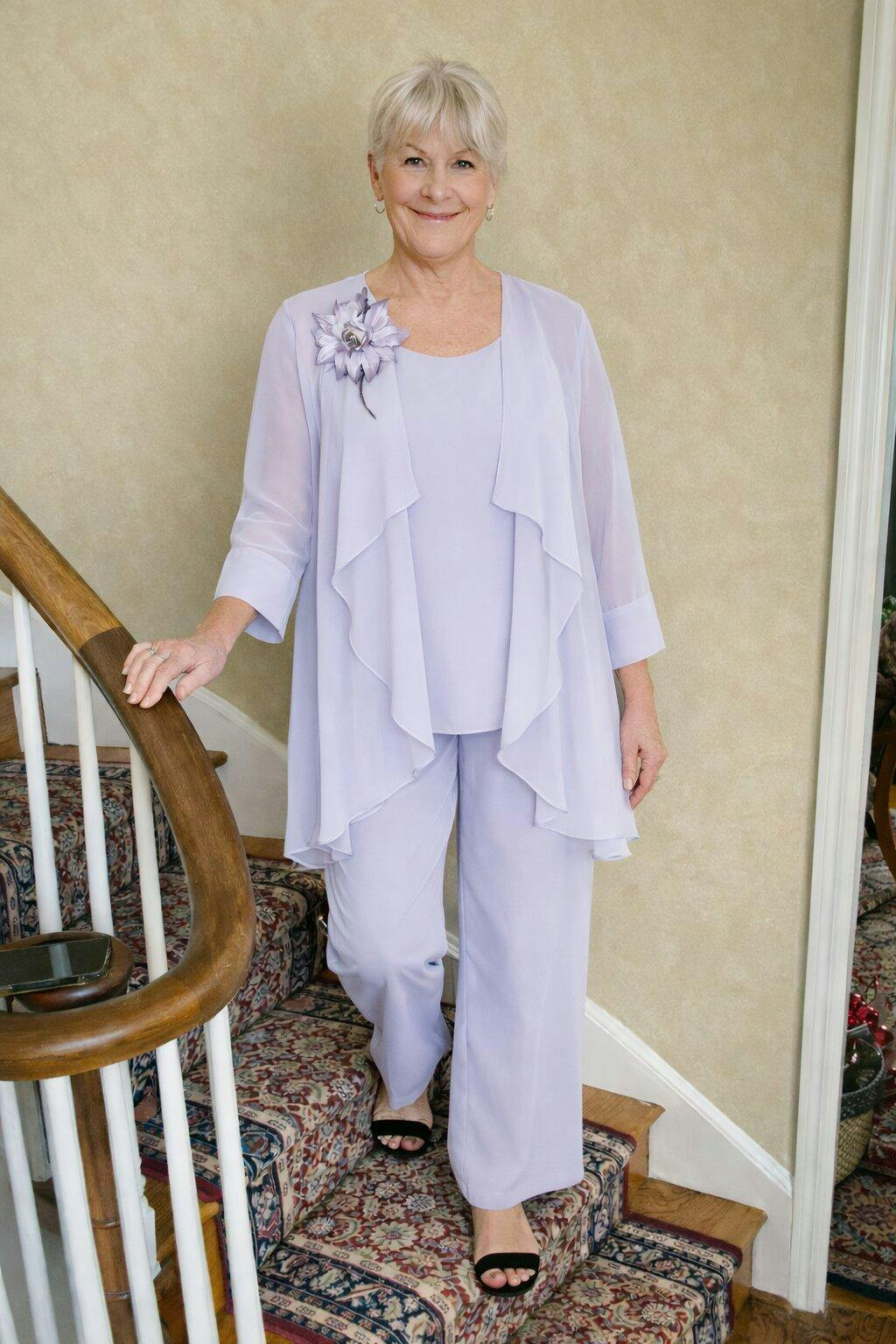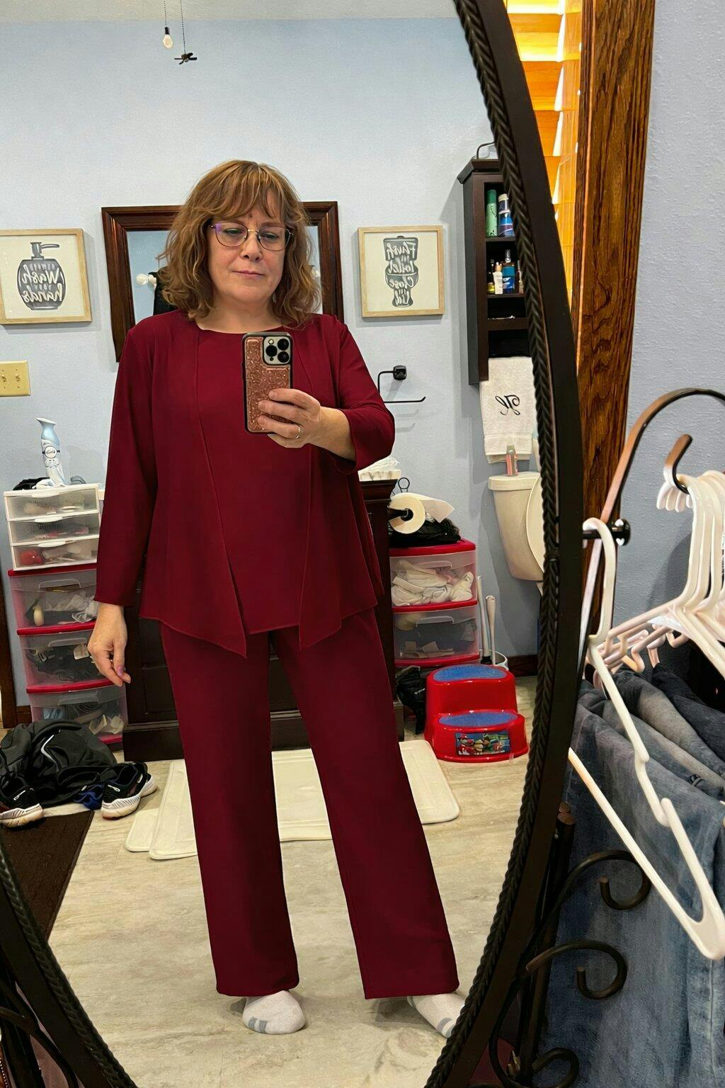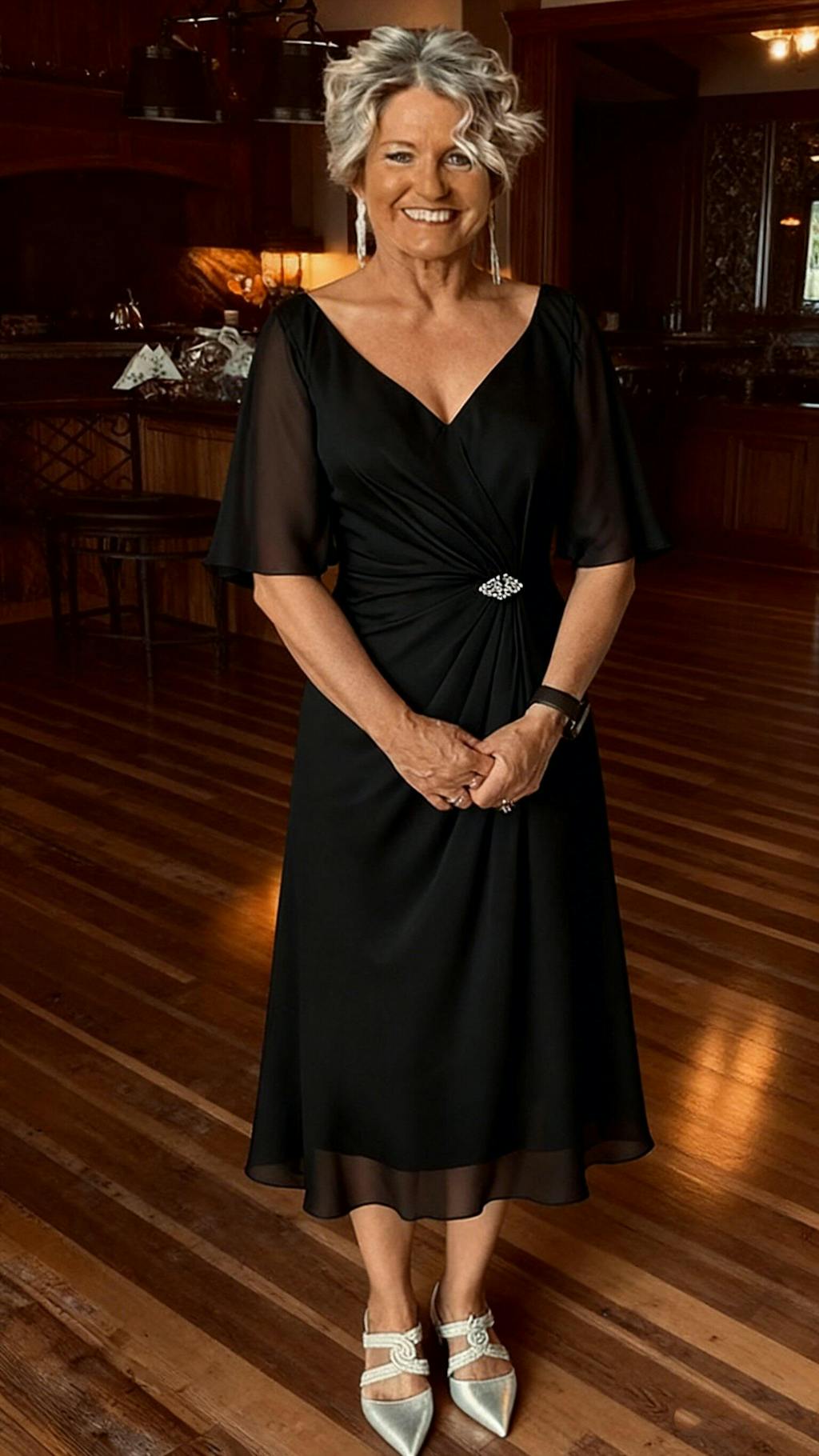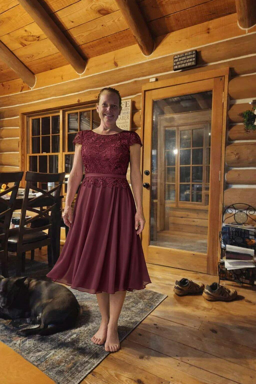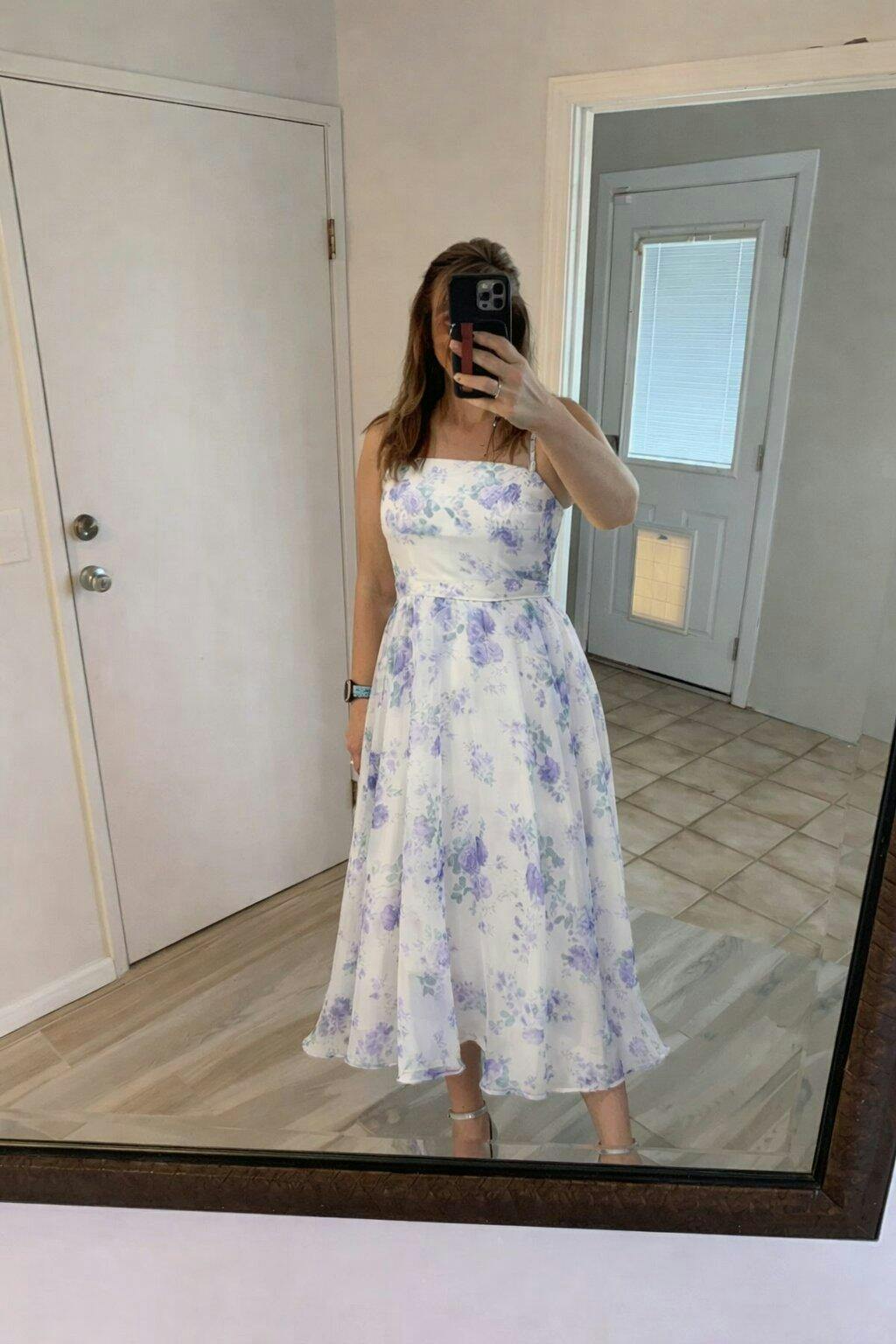 I got so many compliments on this dress on my daughter’s wedding day! It was so light and comfortable and the color was stunning. (it was an outside, mountain view wedding AND I wanted to show off my sparkly shoes ). I love the look and how it all came together!
