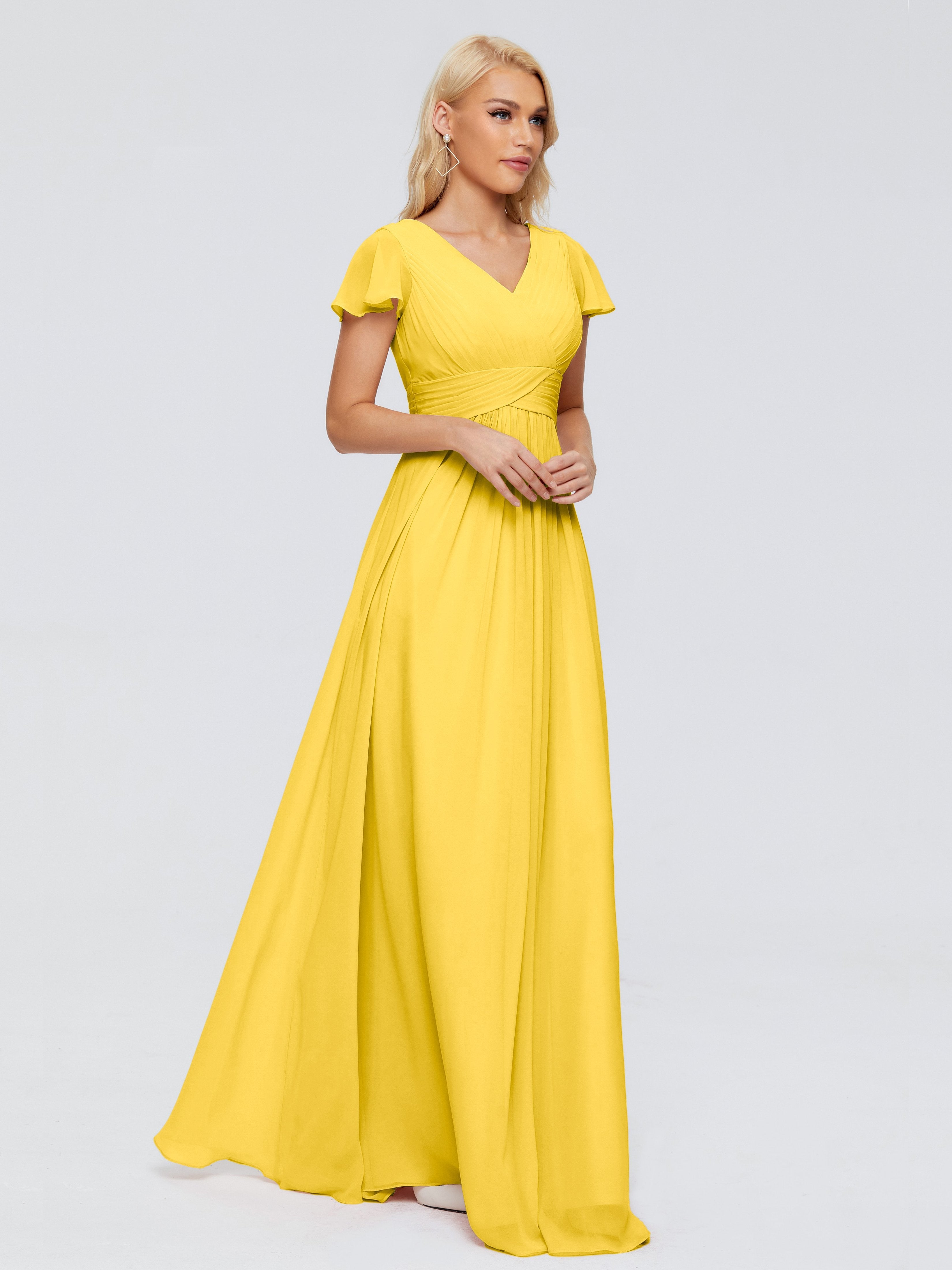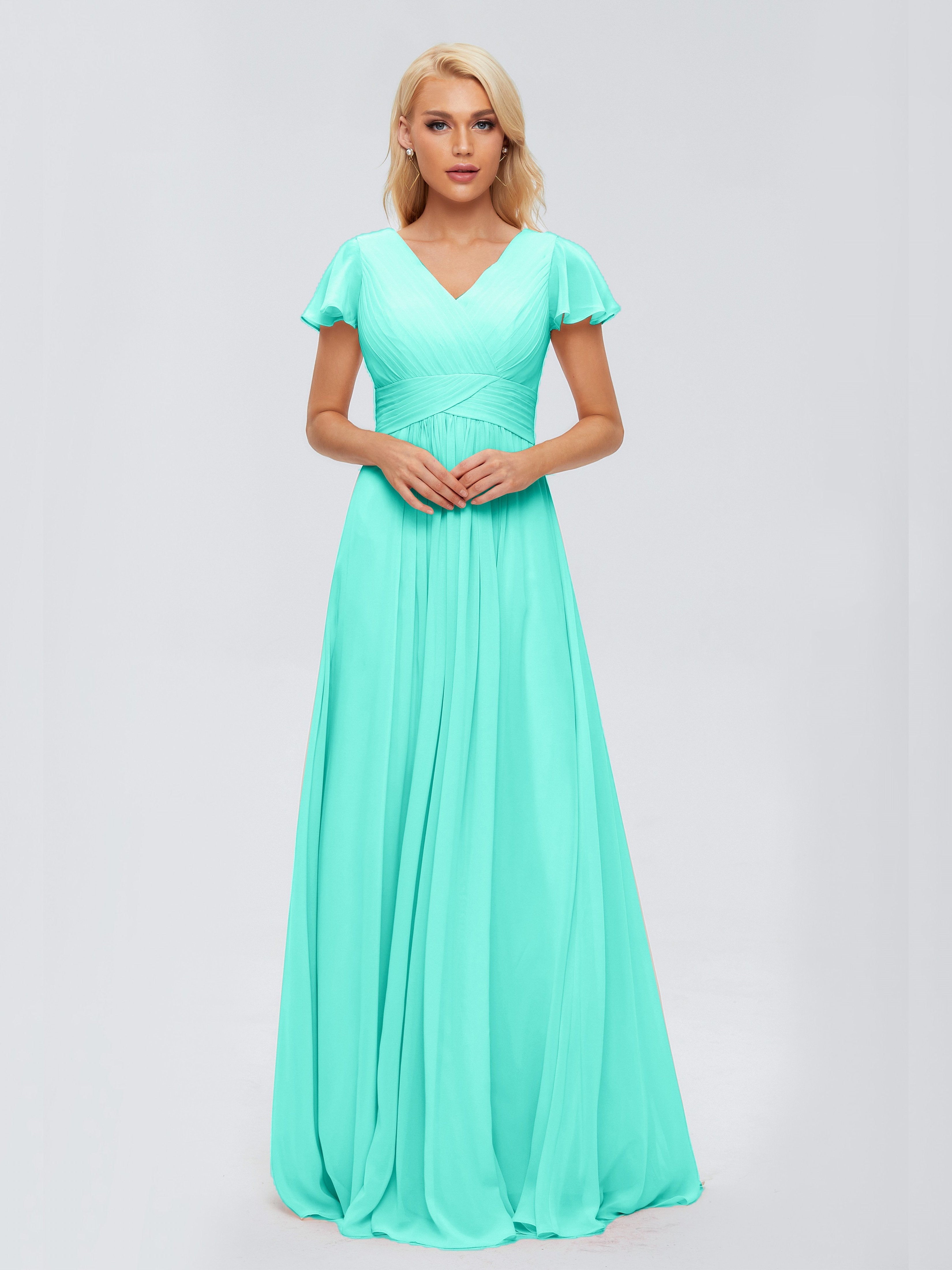 A-line V Neck Chiffon Wedding Guest Dress