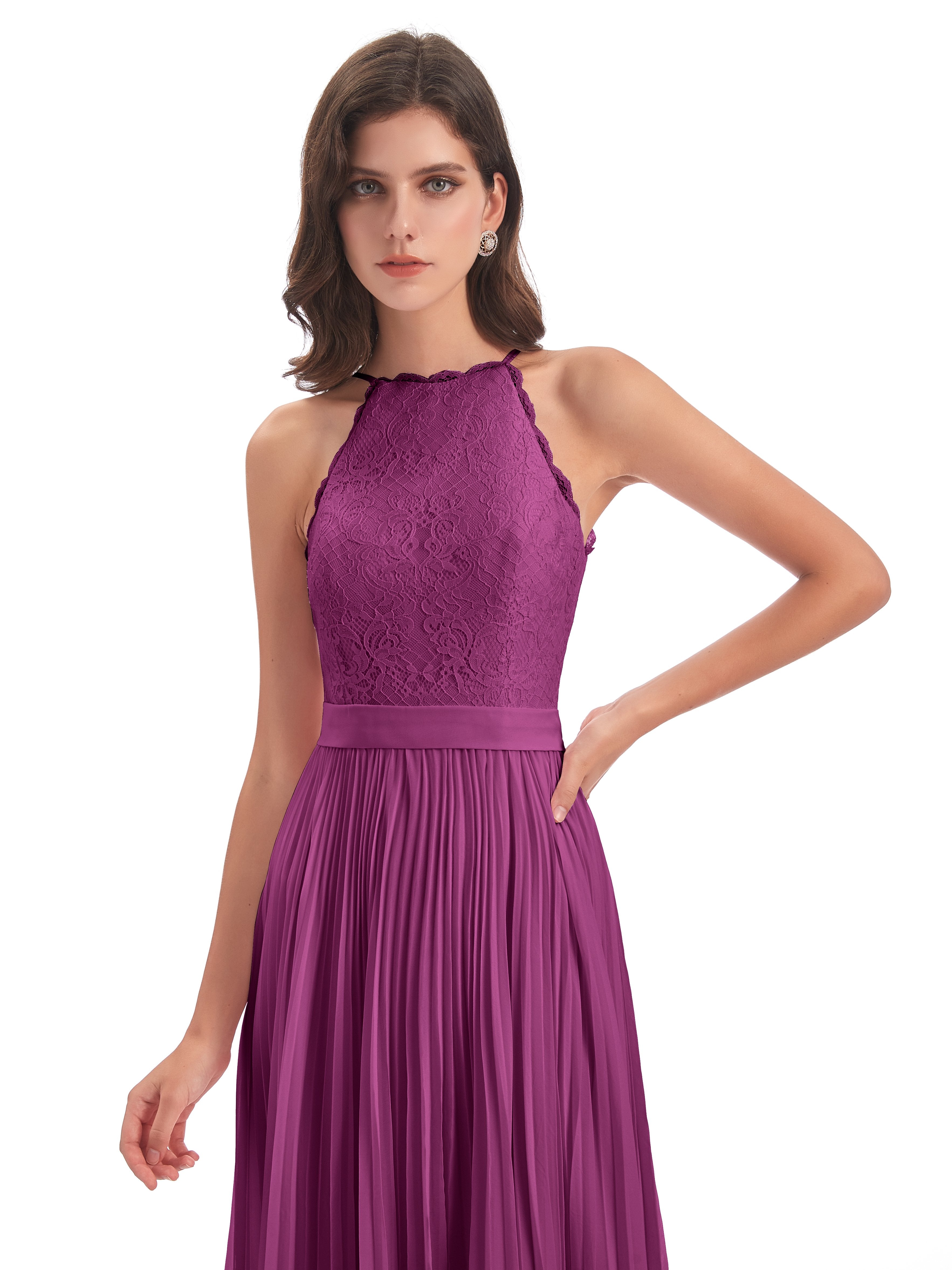 Susan Floor Length Halter Lace Bridesmaid Dresses