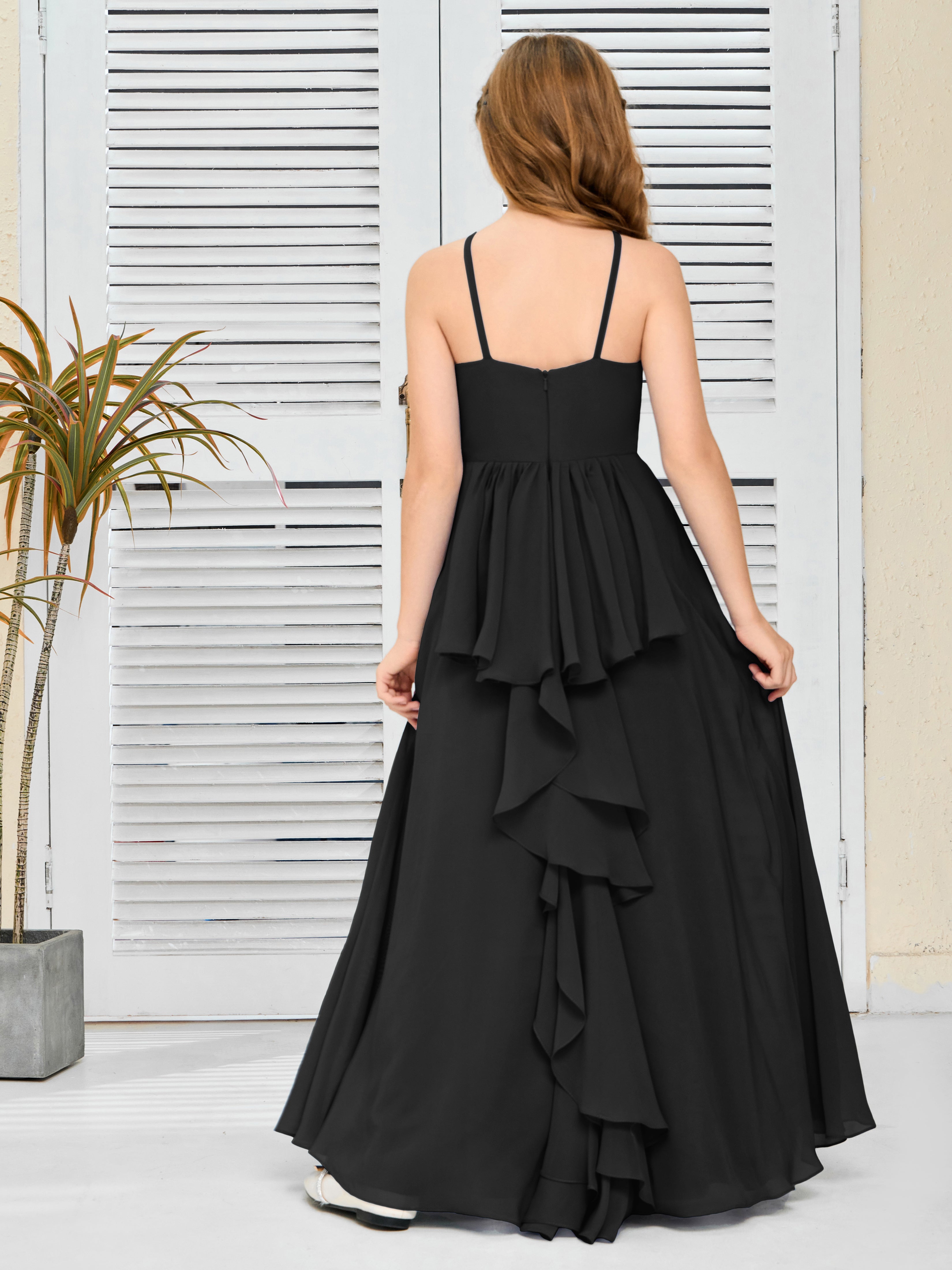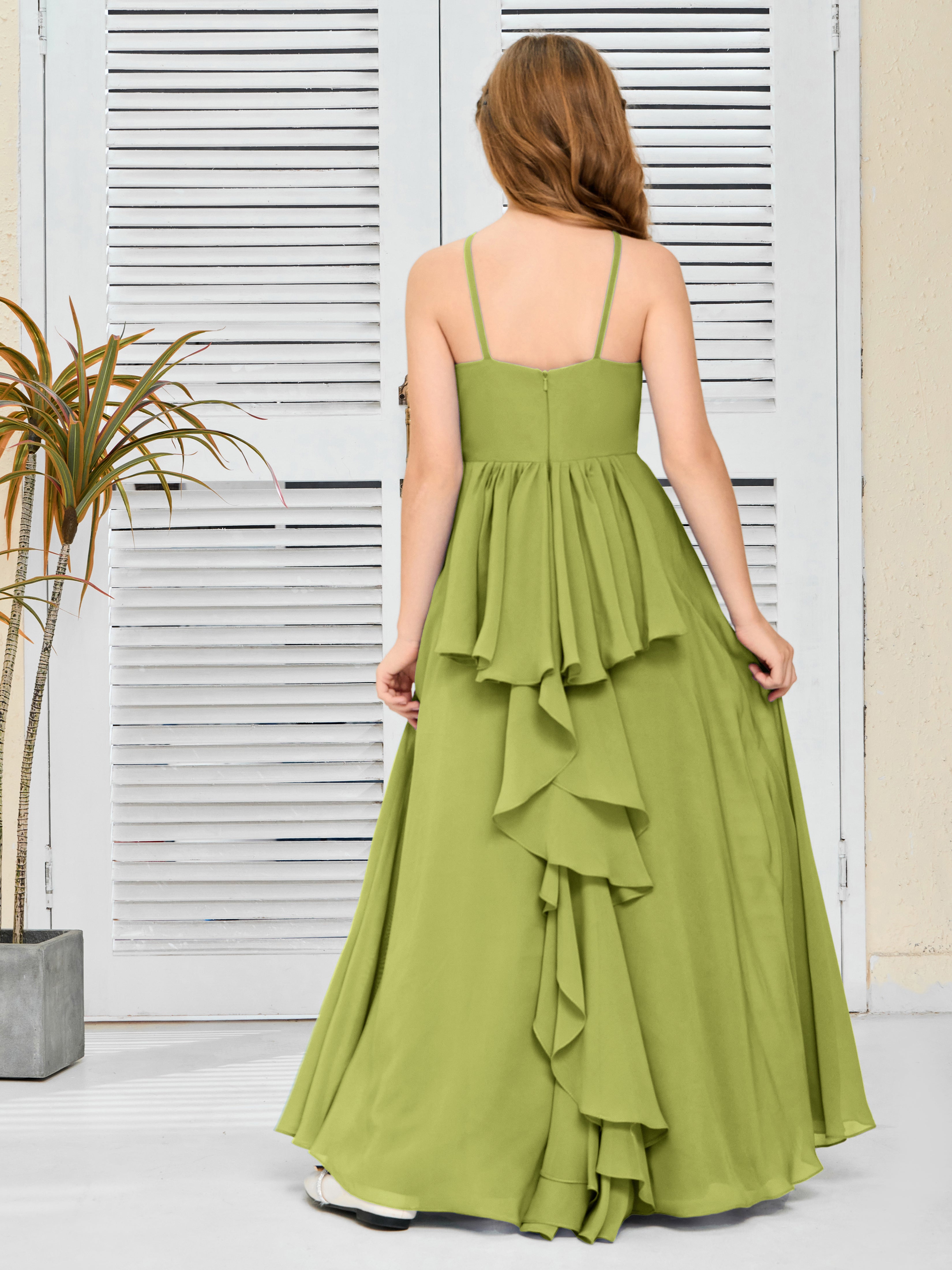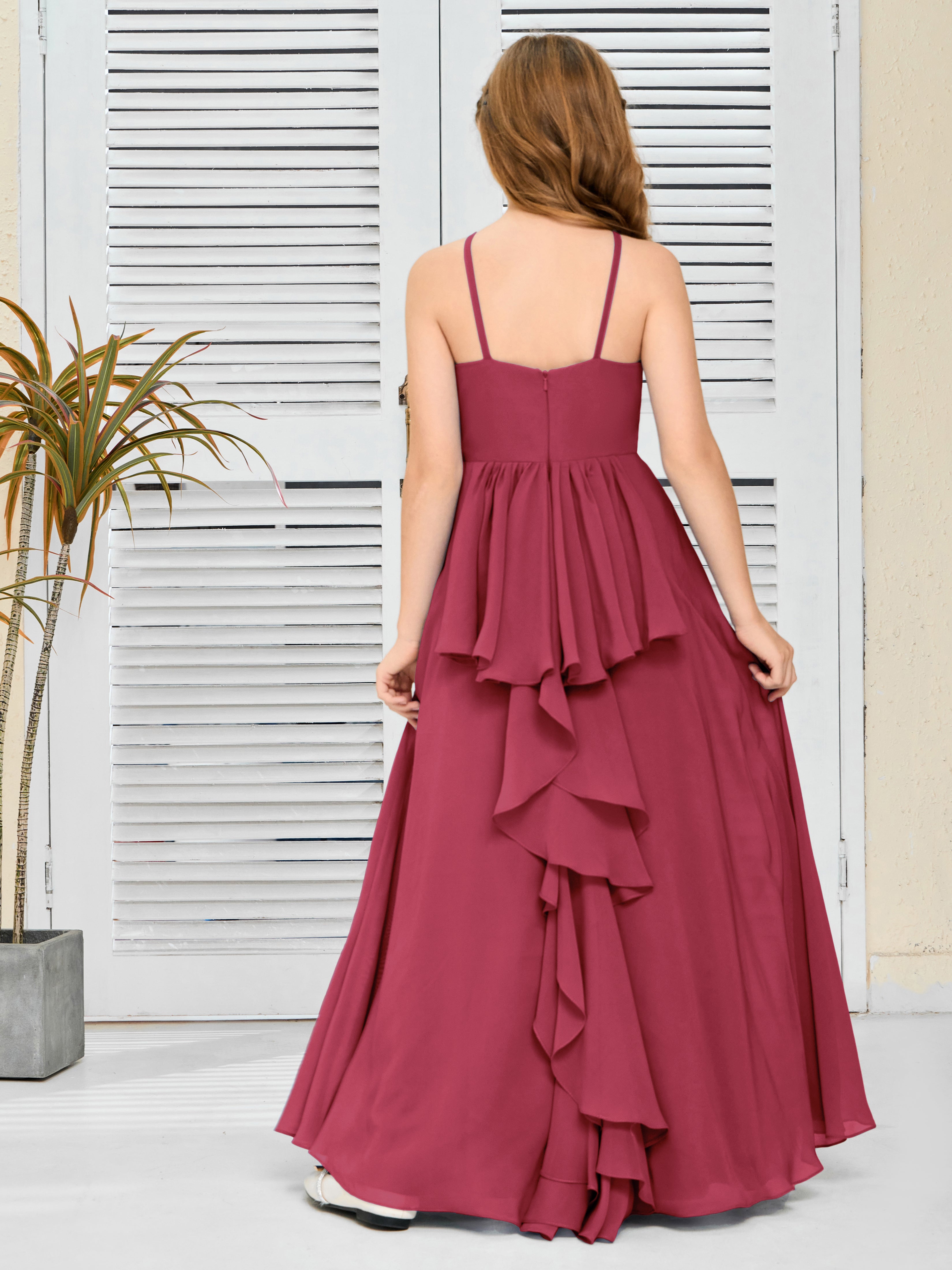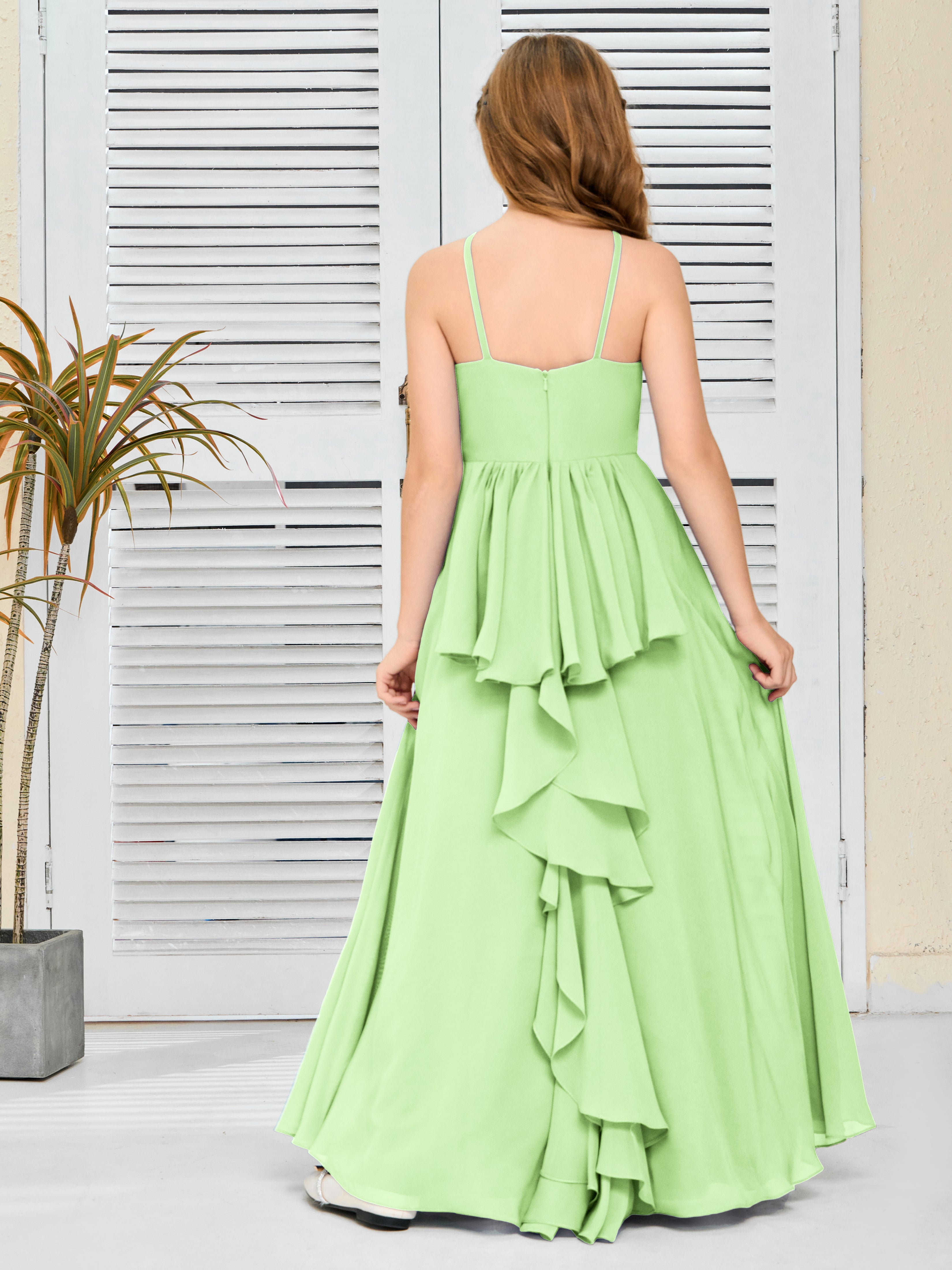 Elegant Chiffon Junior Bridesmaid Dress With Hanging Neckline