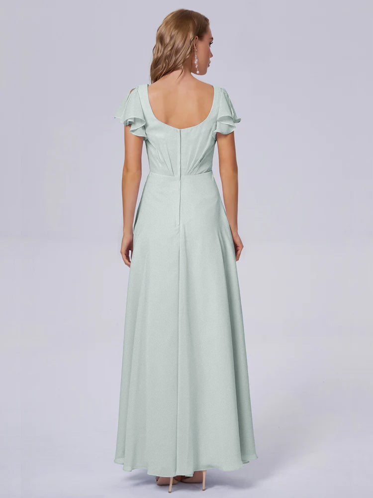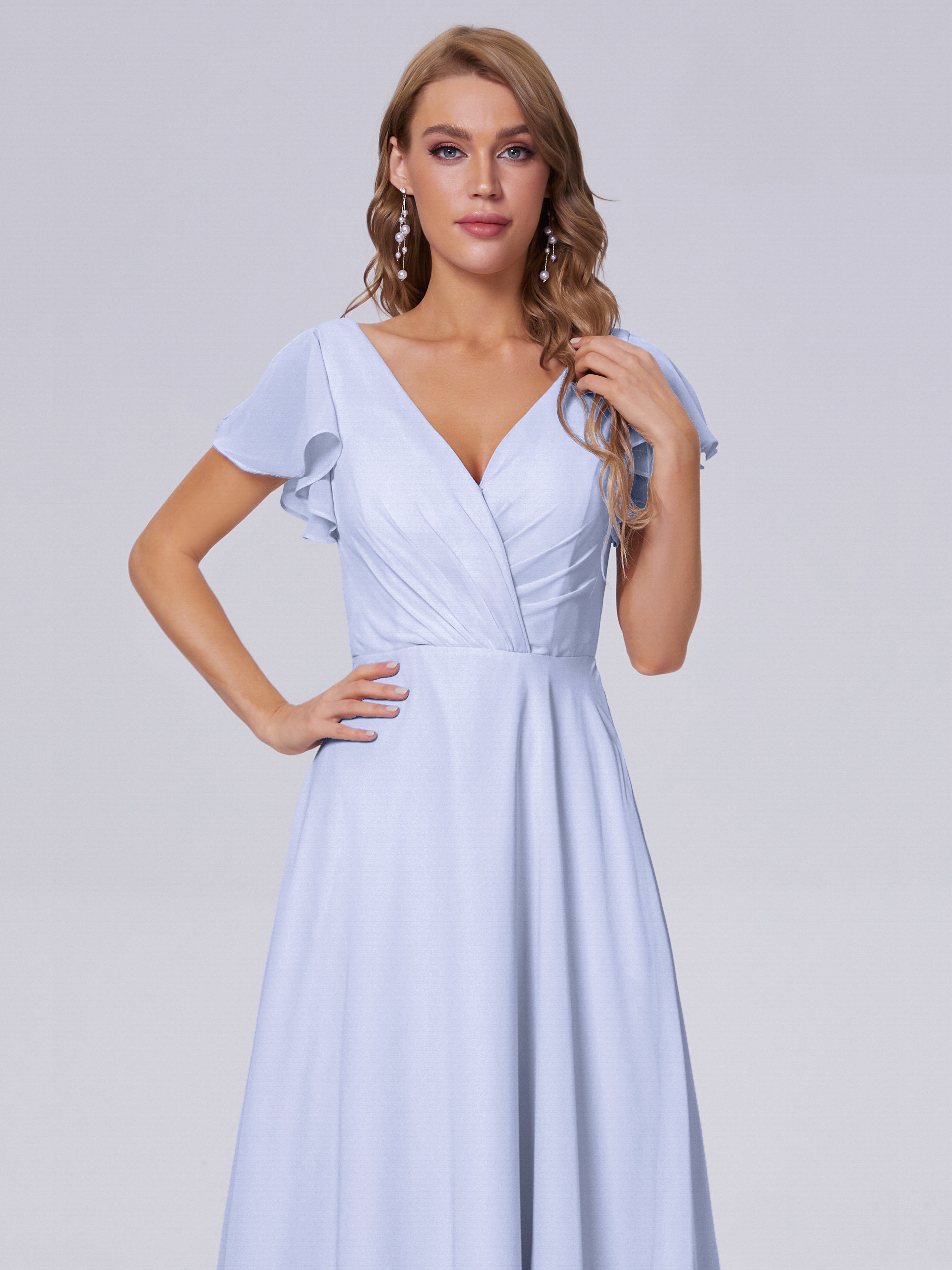 V Neck Short Sleeves Chiffon Wedding Guest Dress
