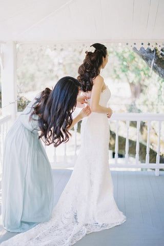 I consider this step very important. If you don't know what bustling is, let me tell you bustling is the particular way. The back of the dress is gathered up so that your bride doesn't trip in between her ceremony and her reception. And sometimes bustles have to deal with ribbons or buttons or wear contraptions that get really complicated and fast. So that's why it's really important for the bridesmaids, or the maid of honor especially, to attend the dress fittings. So that she understands how to actually bustle her particular dress. If she's alone, you're there to help her with the bustle because trust me it’s impossible to do it herself. So in that way she makes it in time for a grand entrance at her reception.