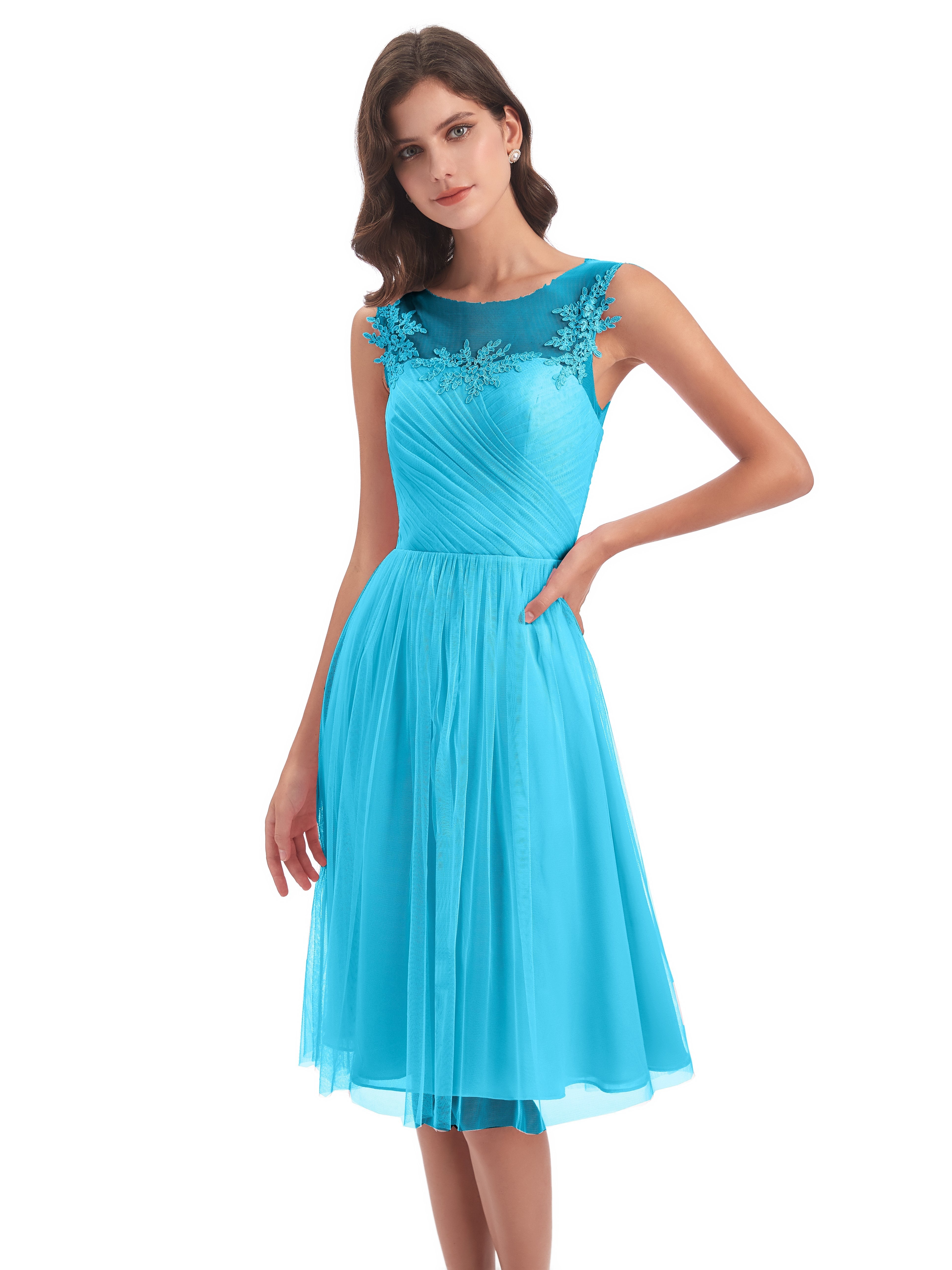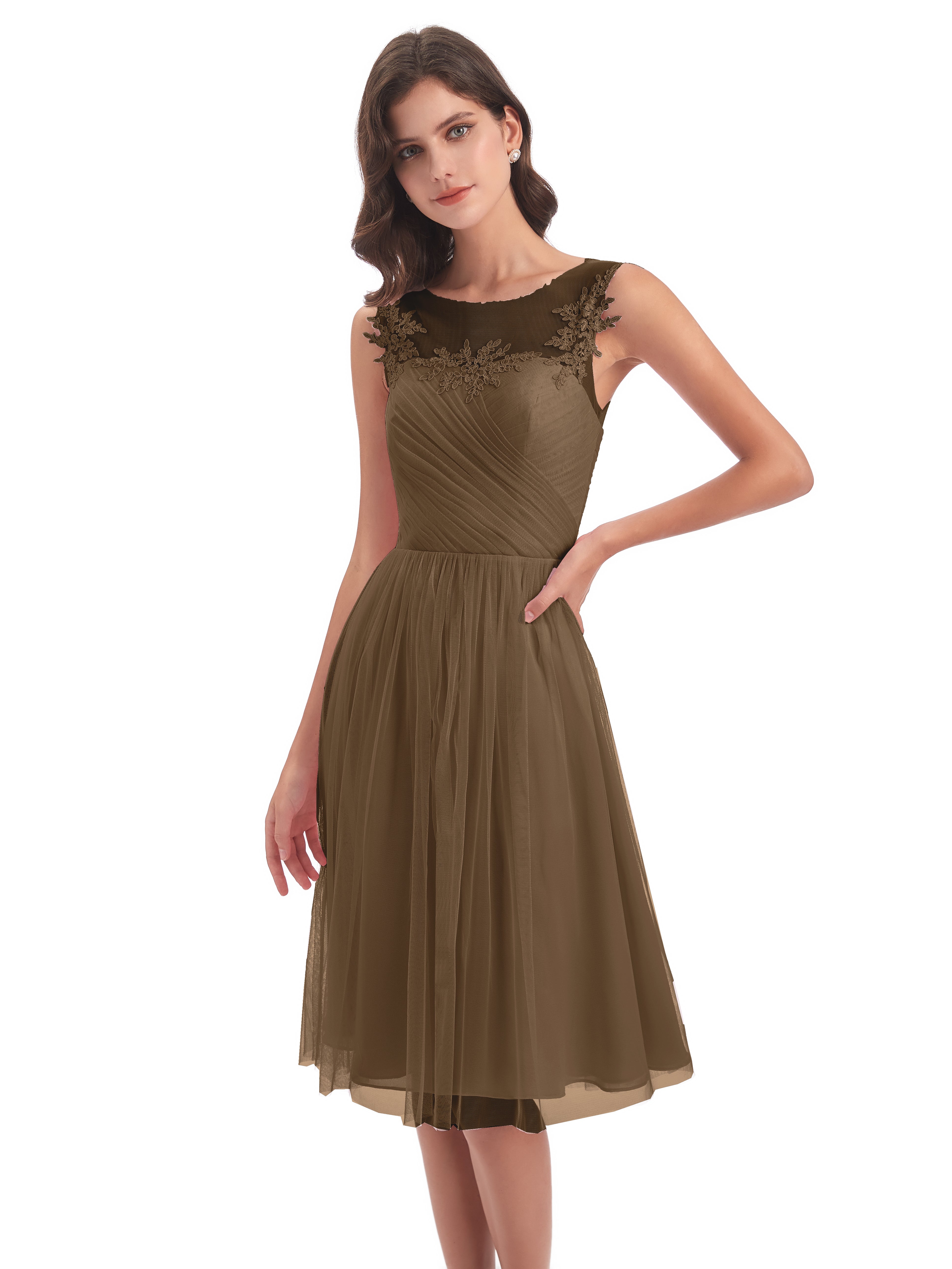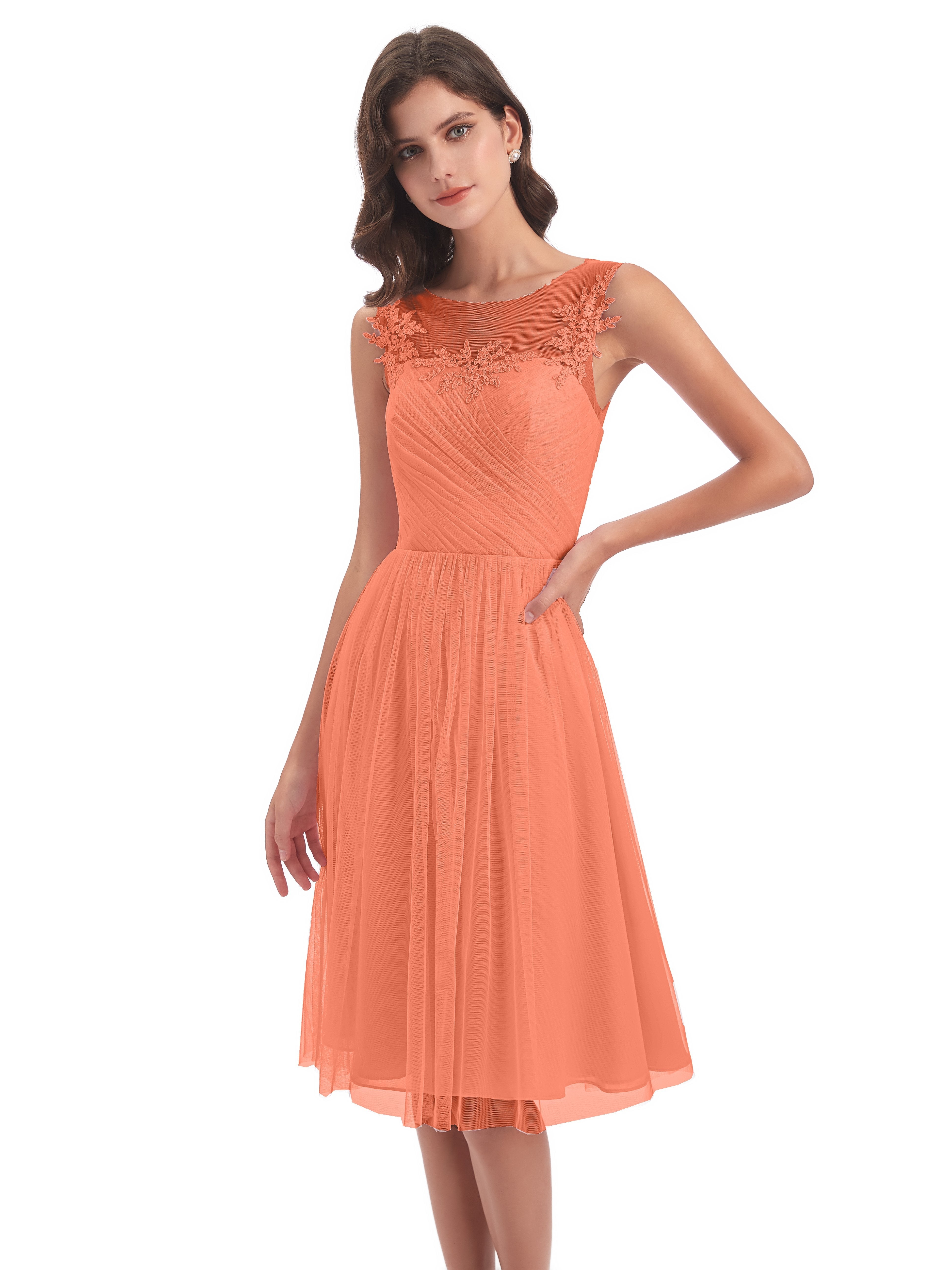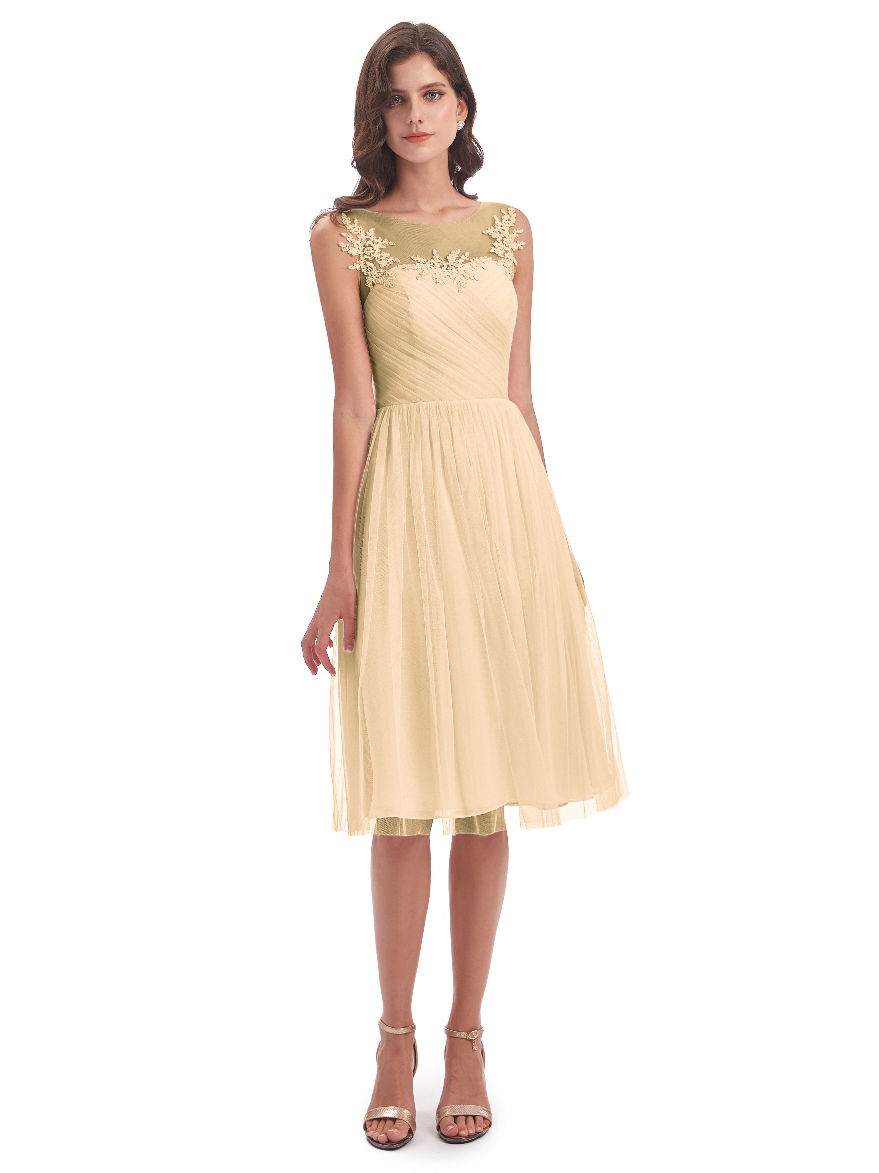 Brooklyn Knee Length Illusion Scoop Tulle Bridesmaid Dresses