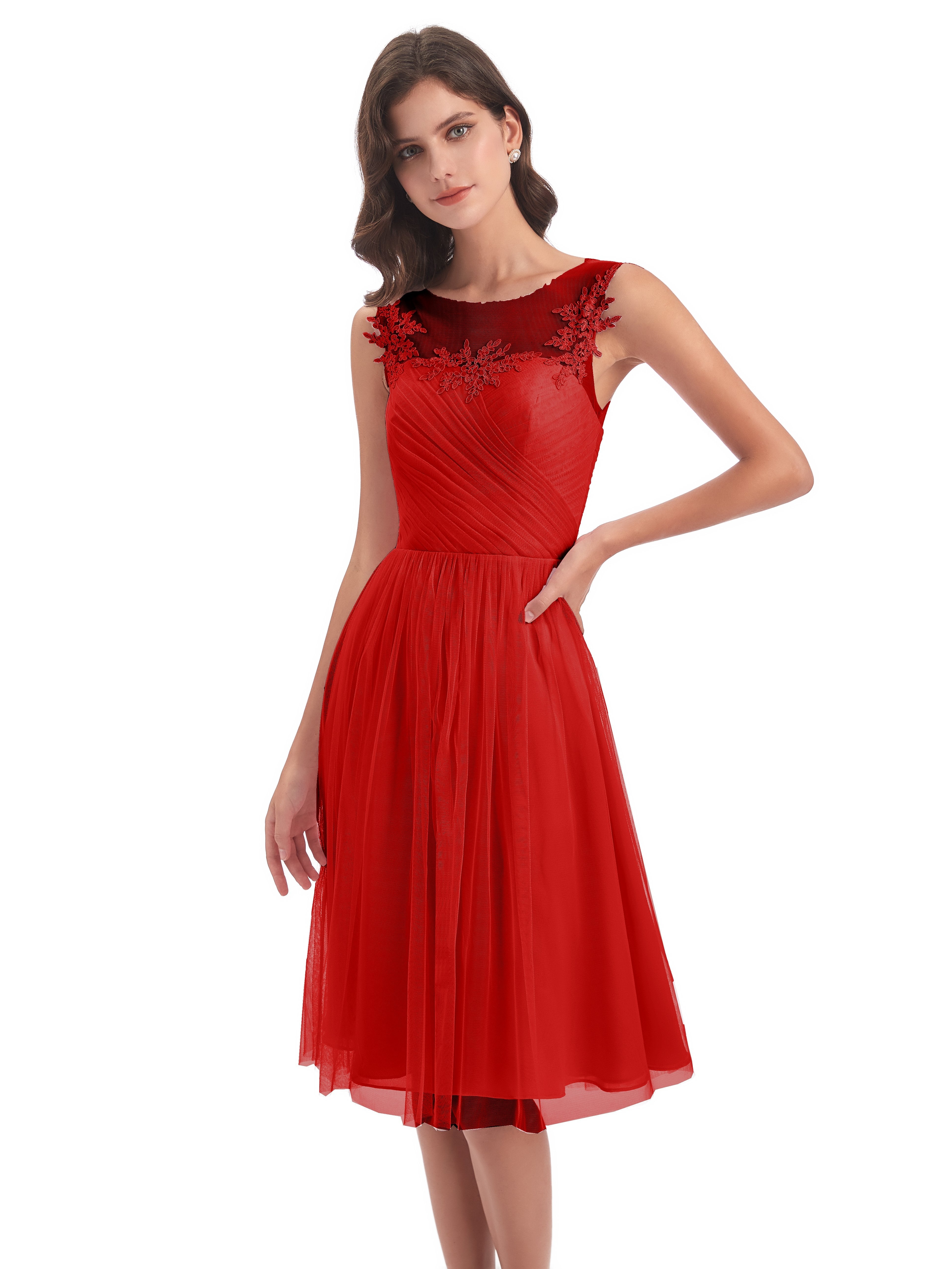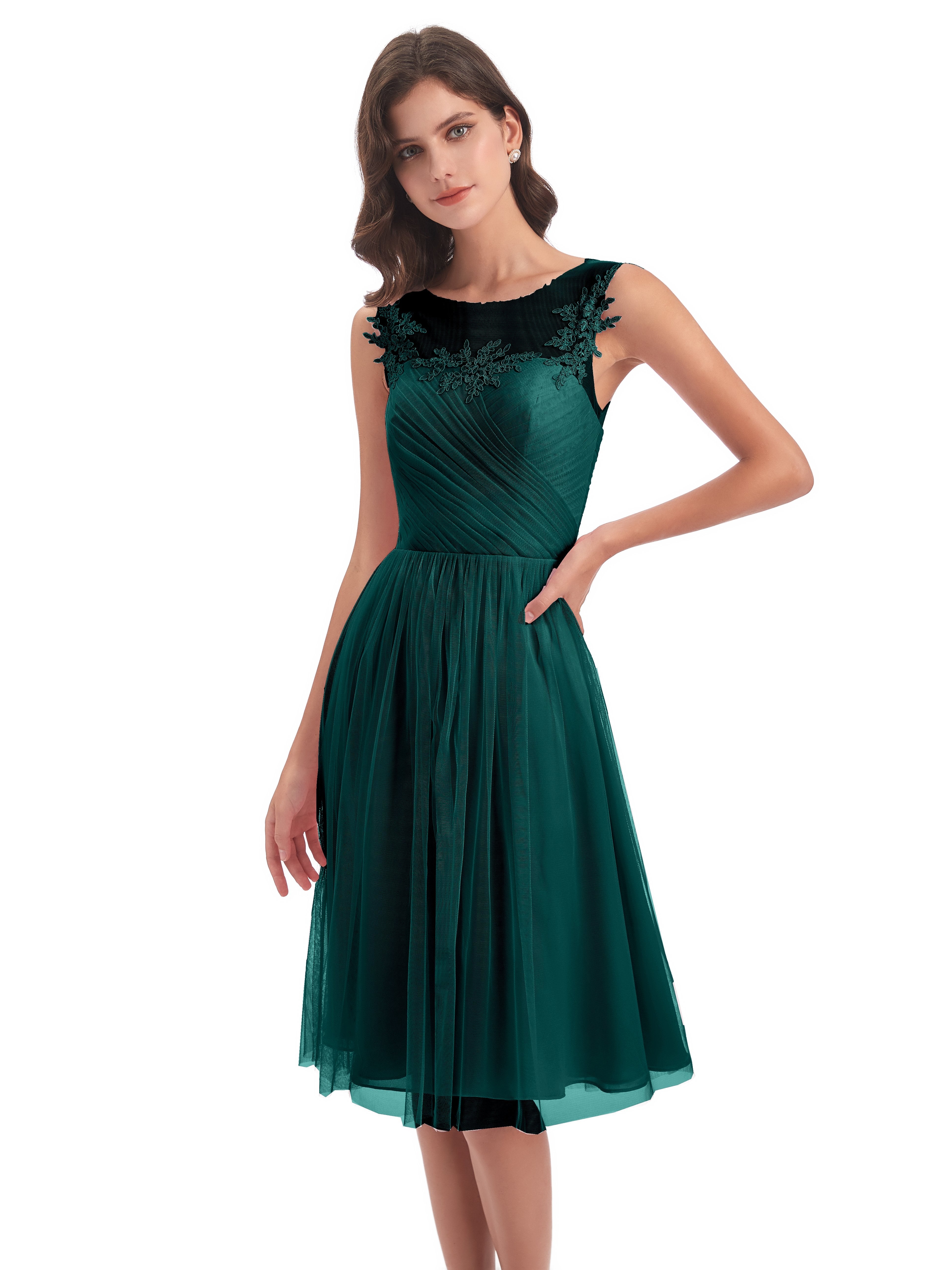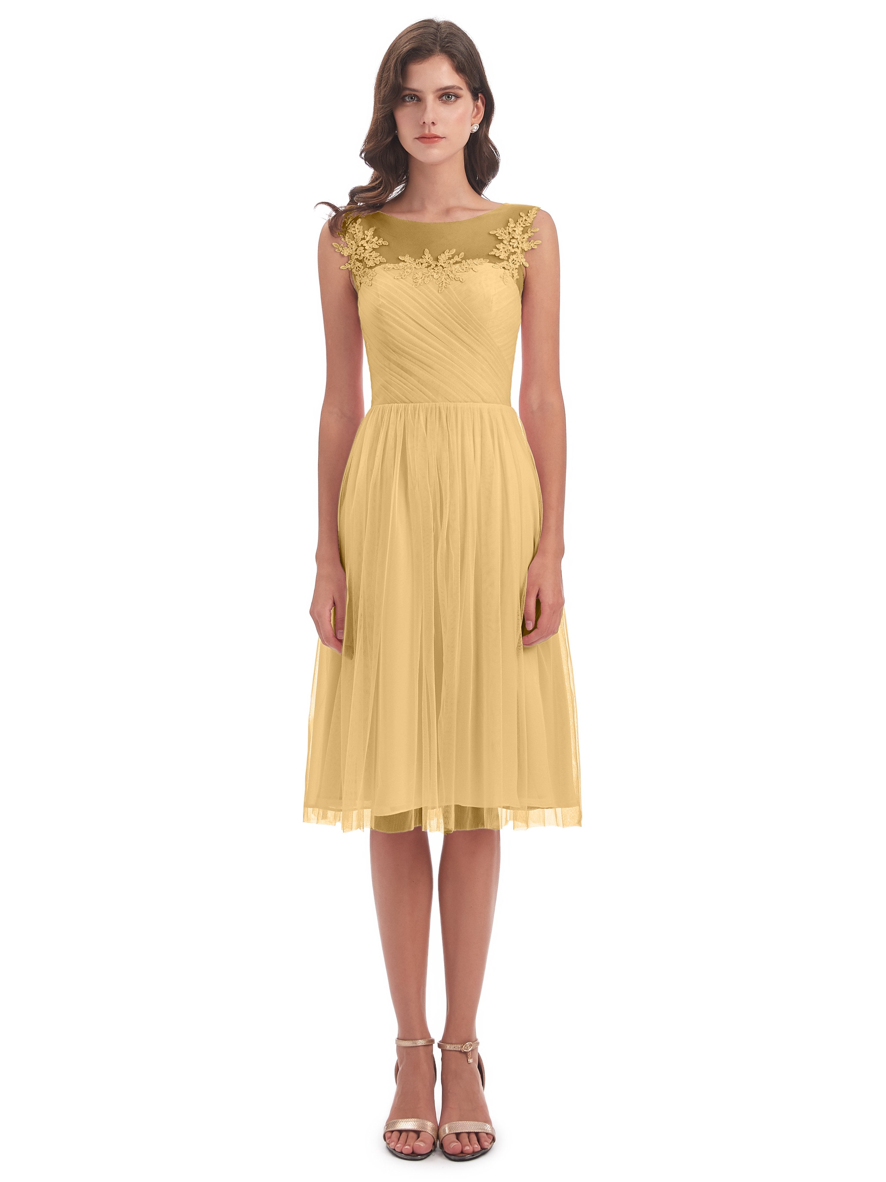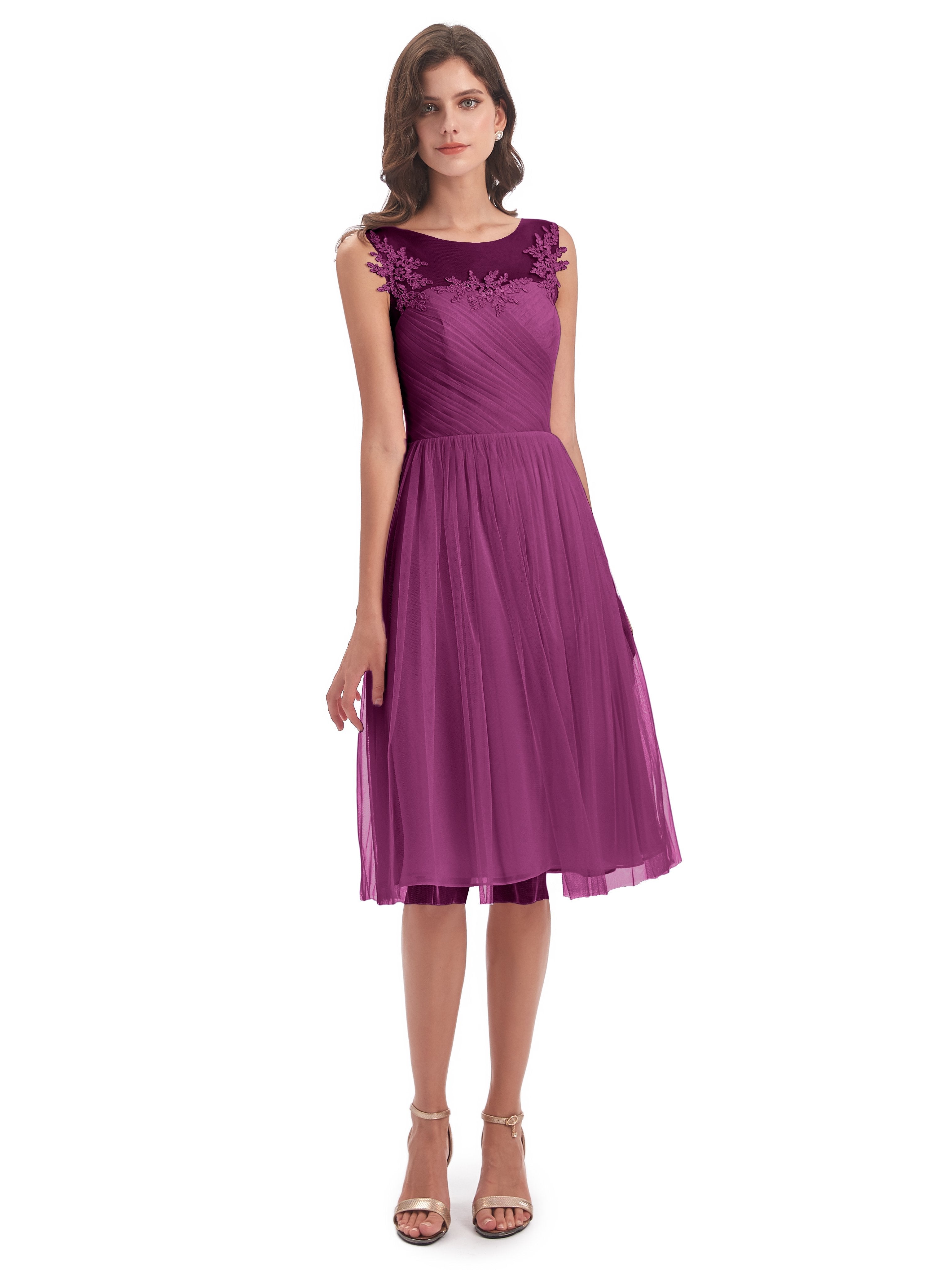 Brooklyn Knee Length Illusion Scoop Tulle Bridesmaid Dresses