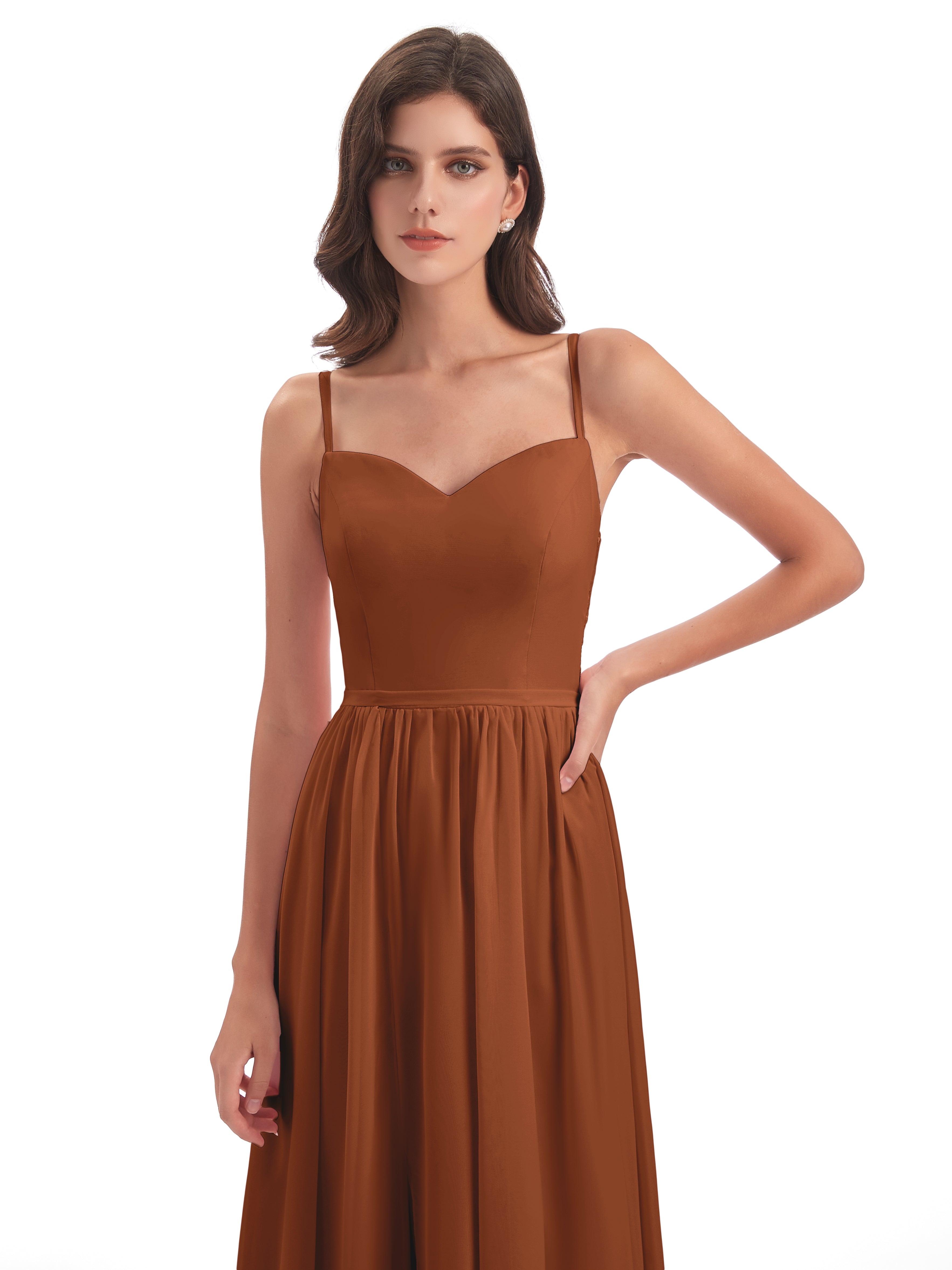 Madeline Spaghetti Straps Split Chiffon Bridesmaid Dresses