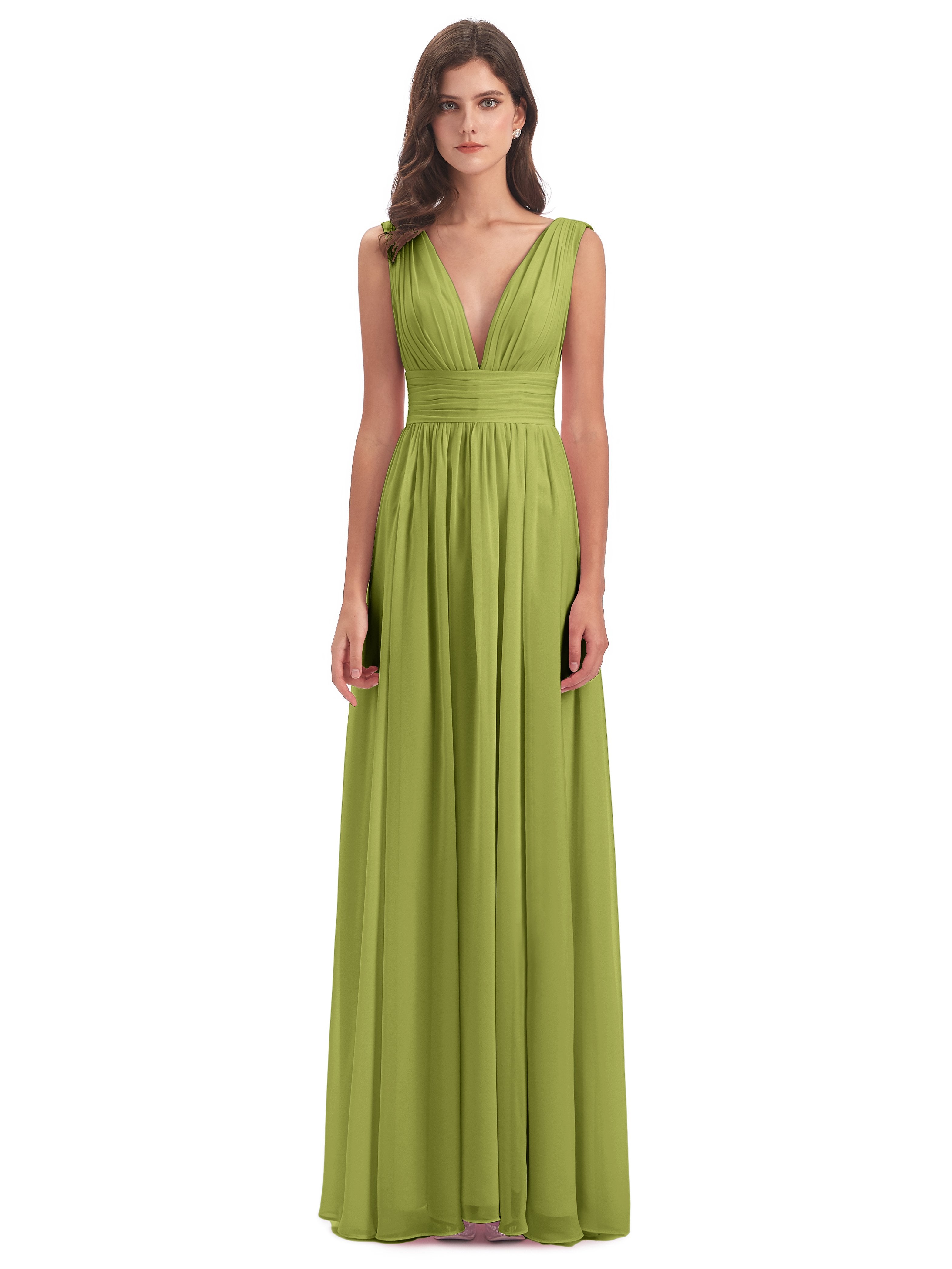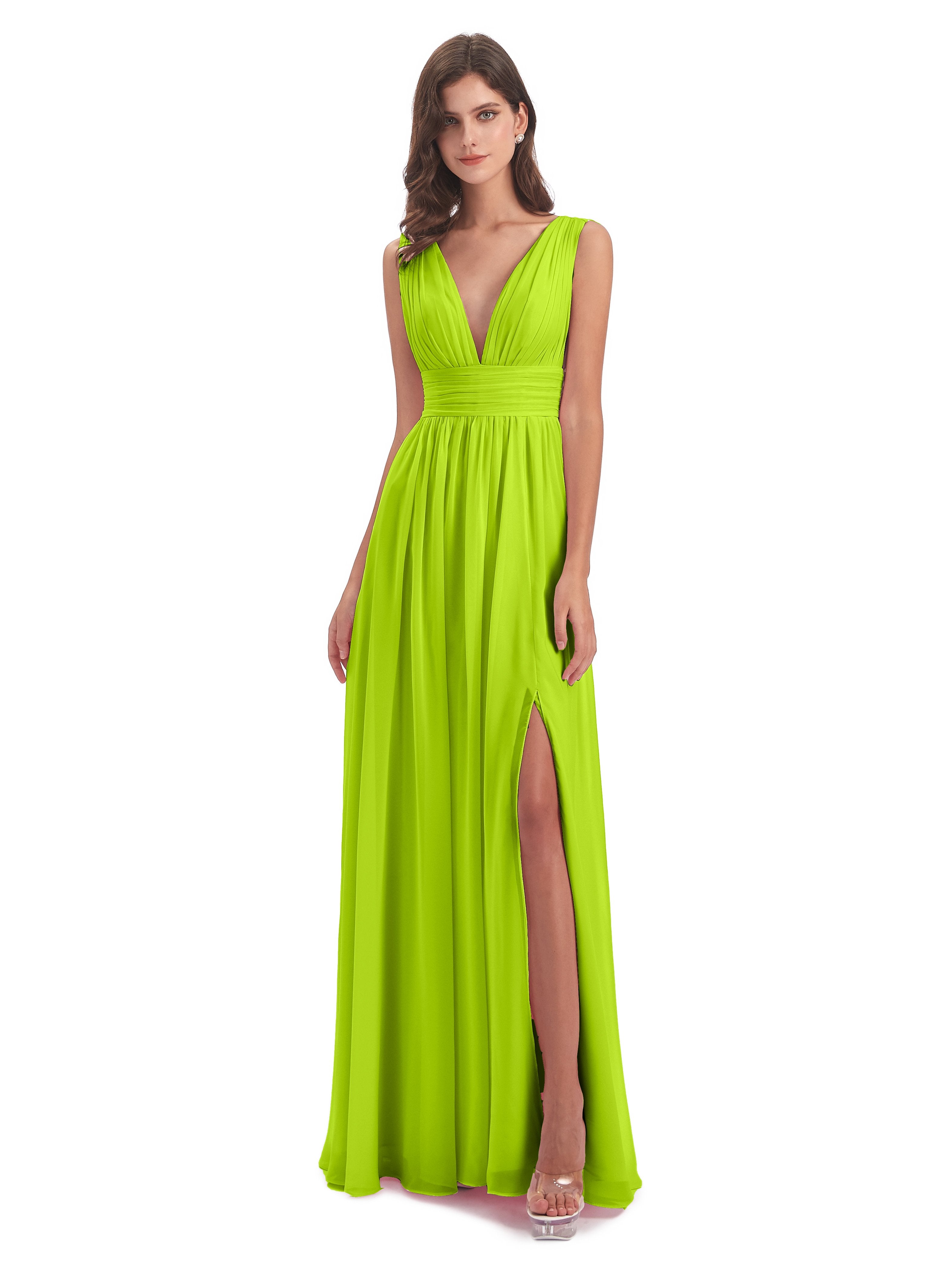 Emma Floor Length V Neck Split Chiffon Bridesmaid Dresses