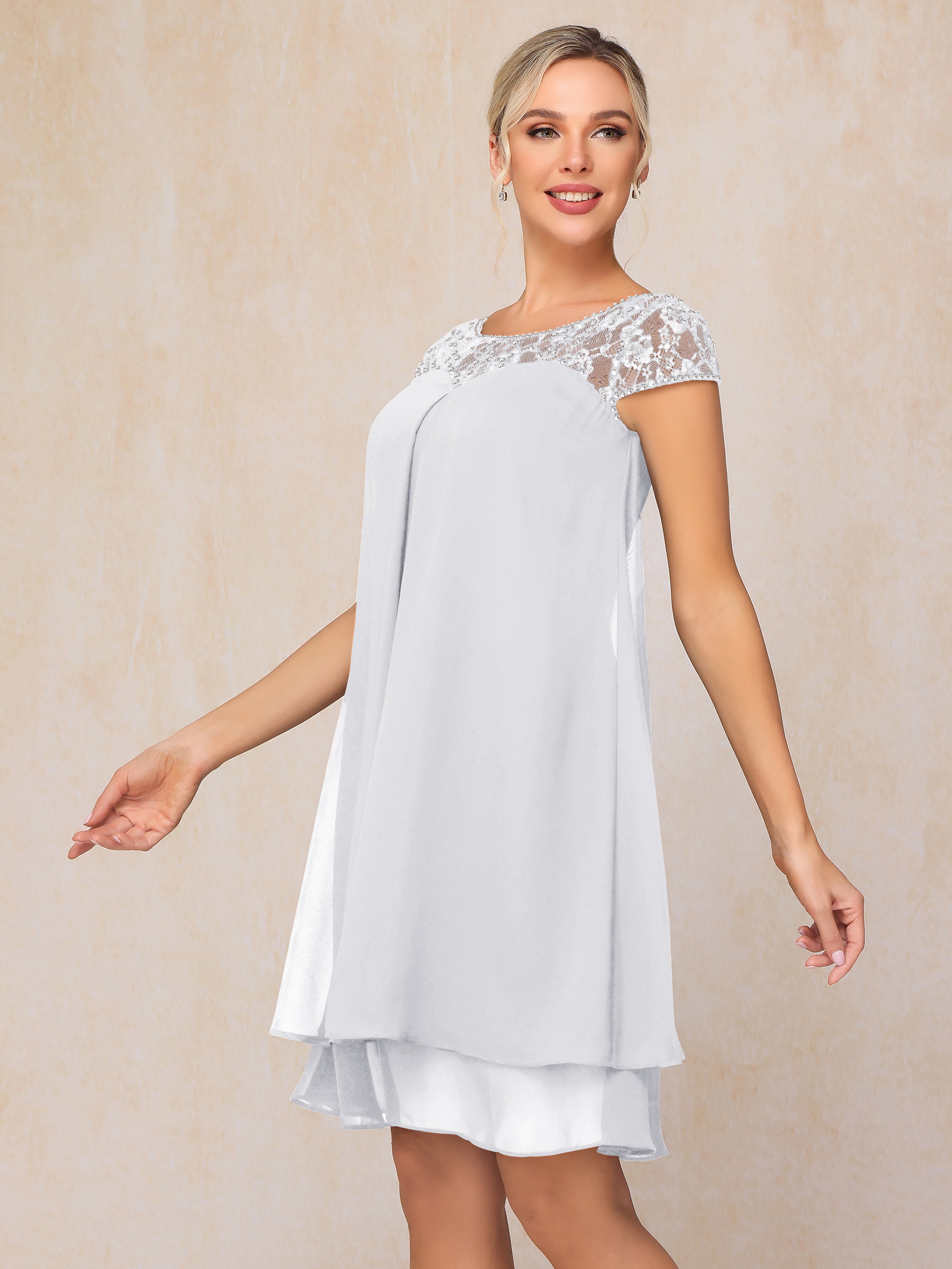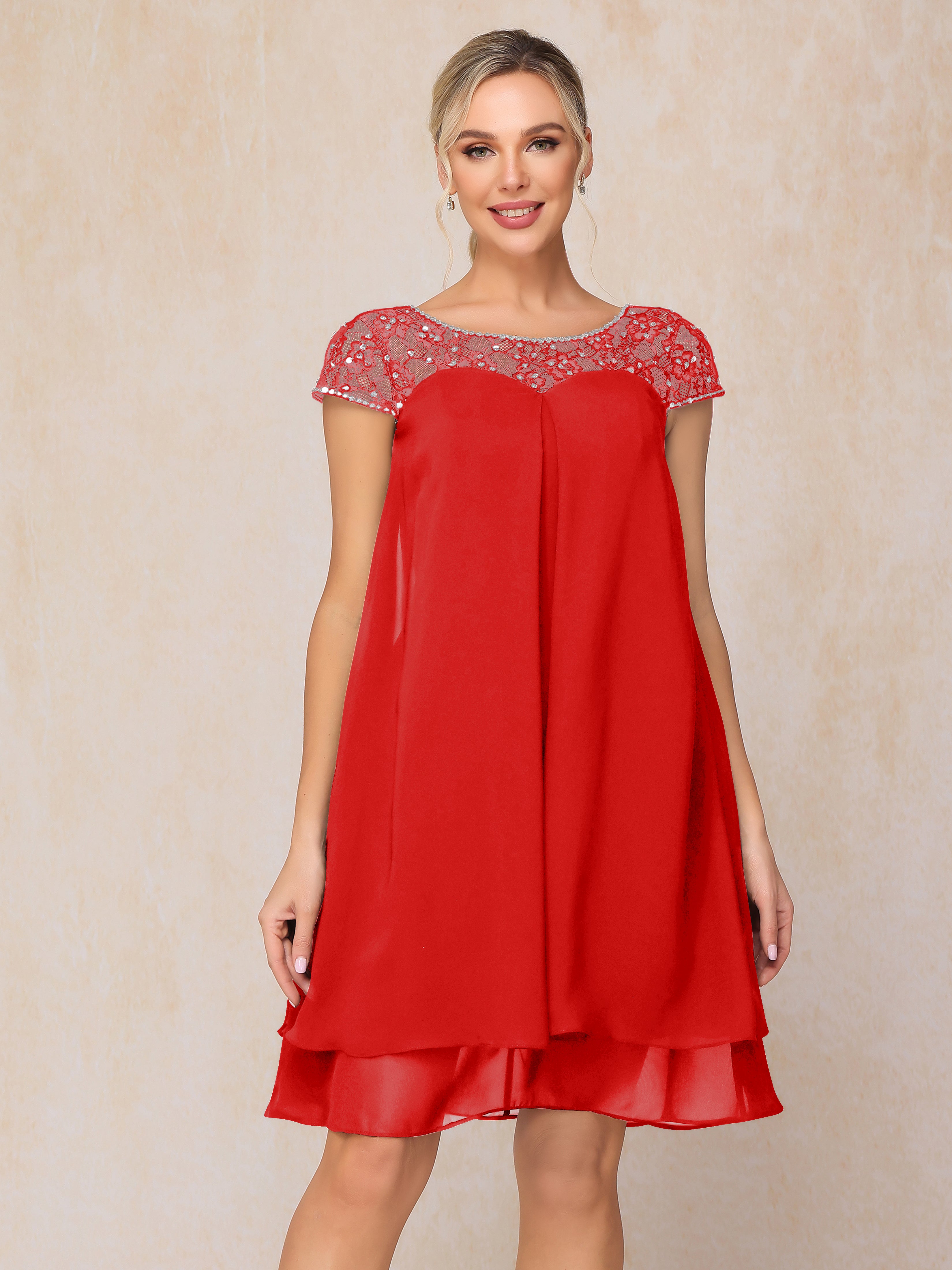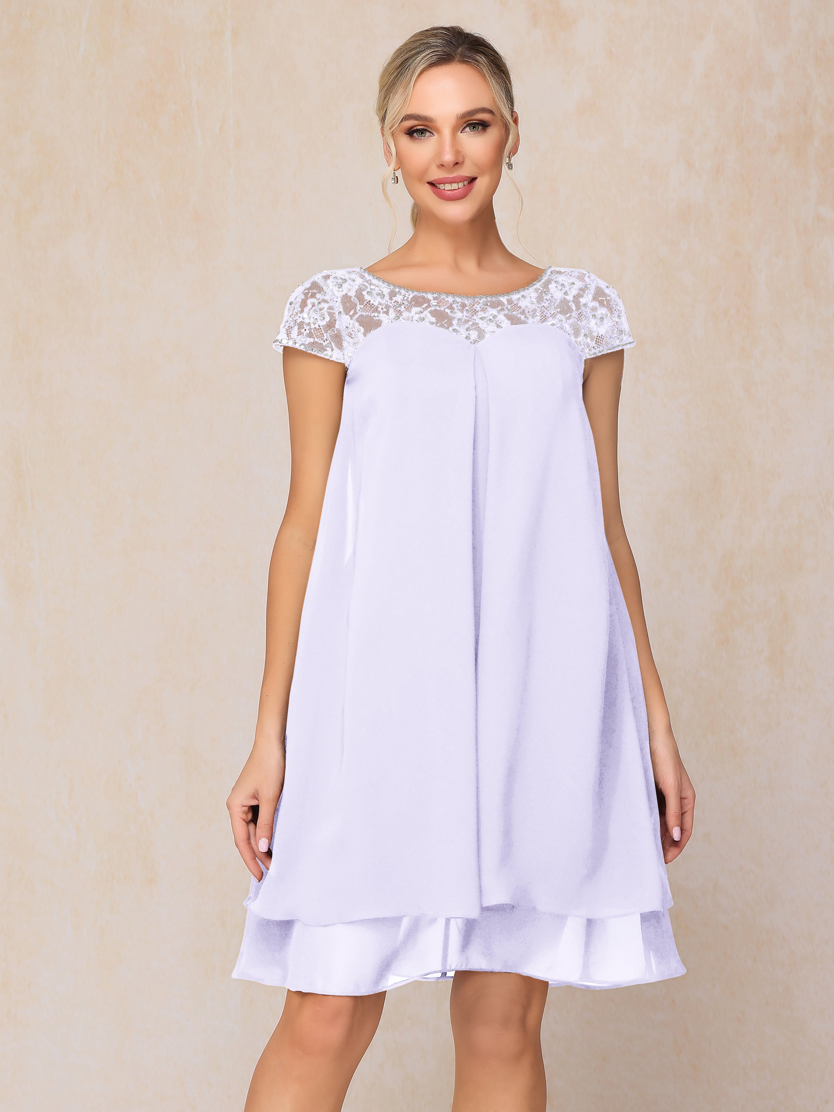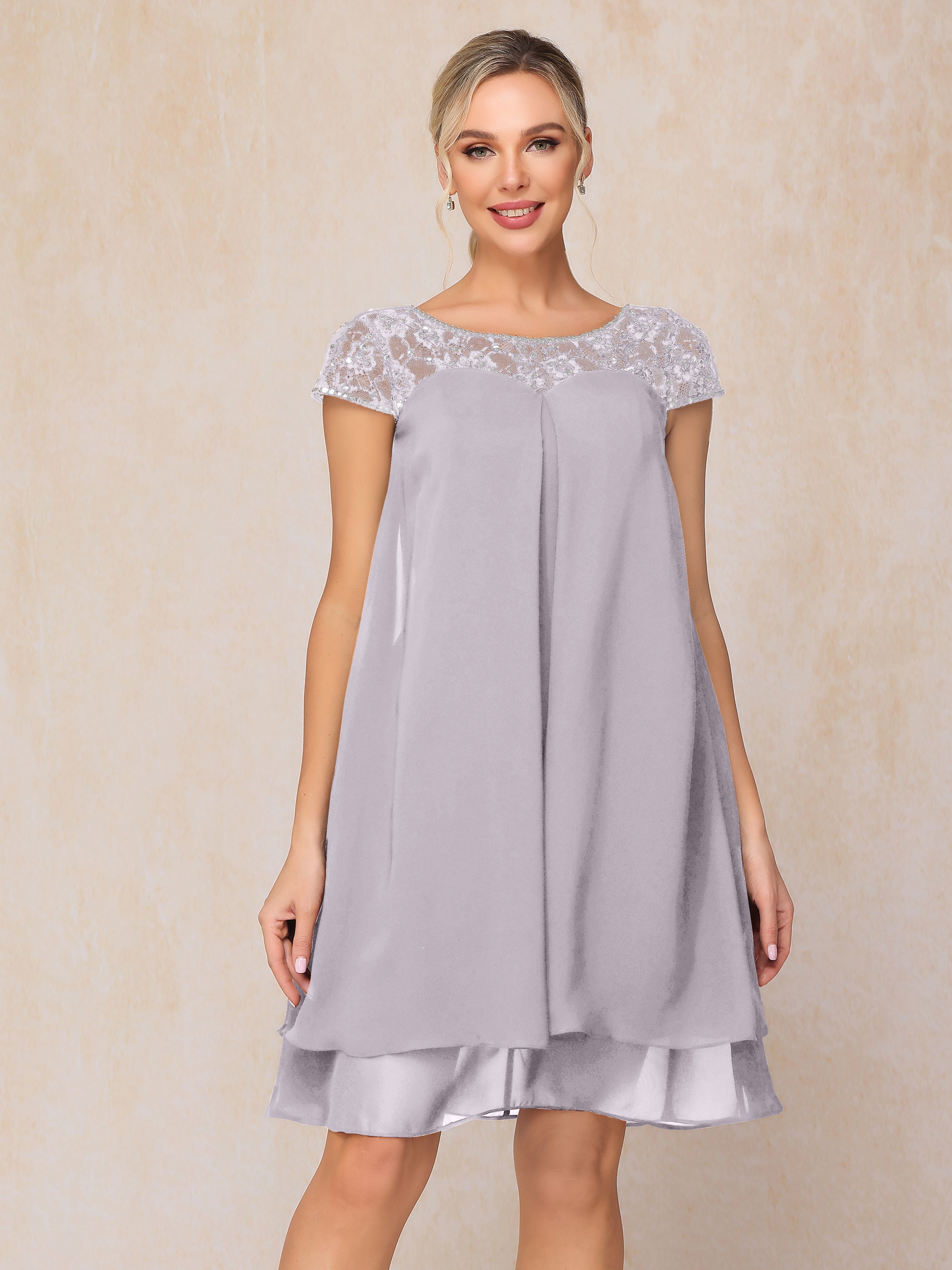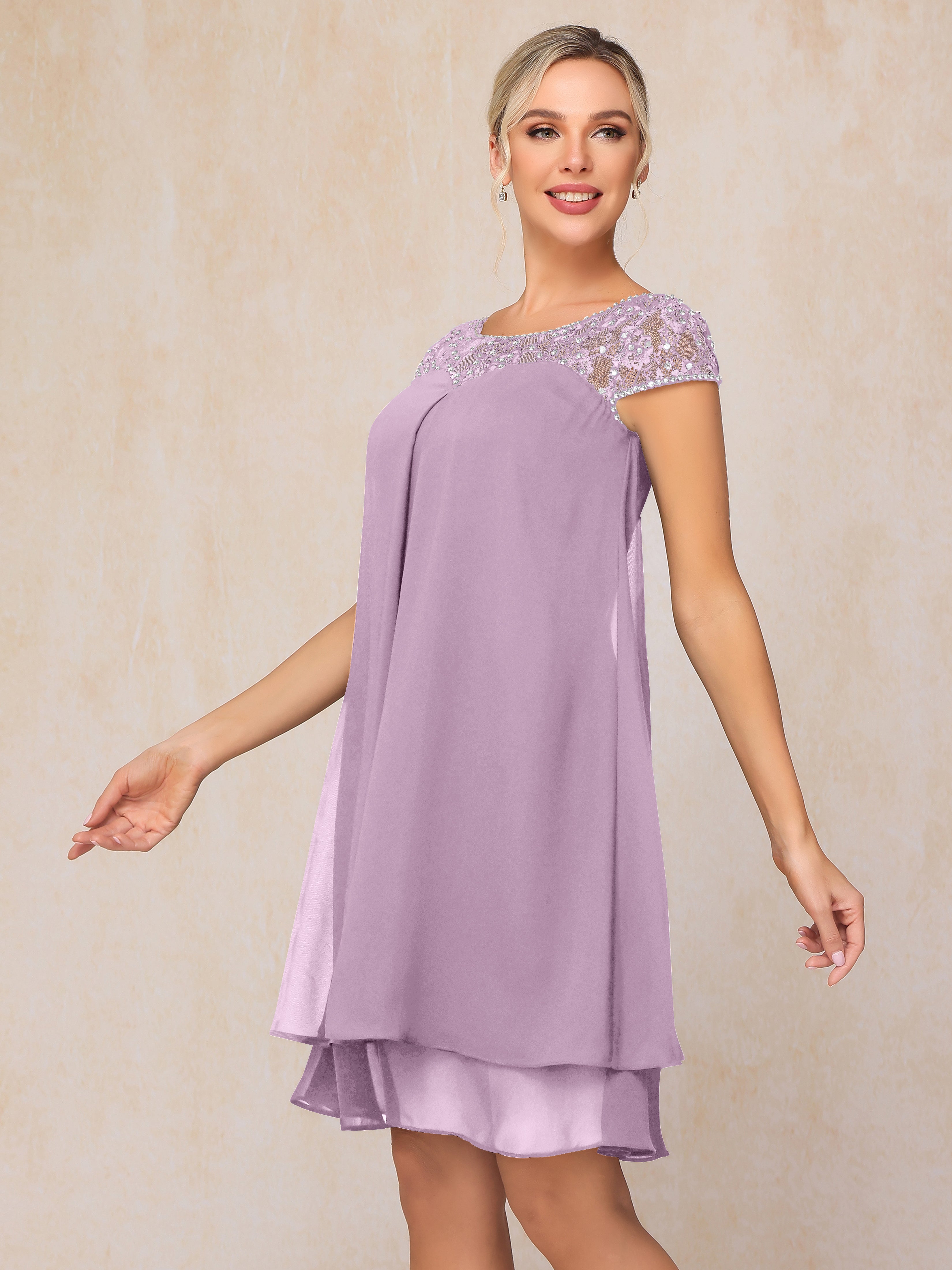 Cap Sleeves Beading Knee Length Chiffon Lace Mother Of The Bride Dress