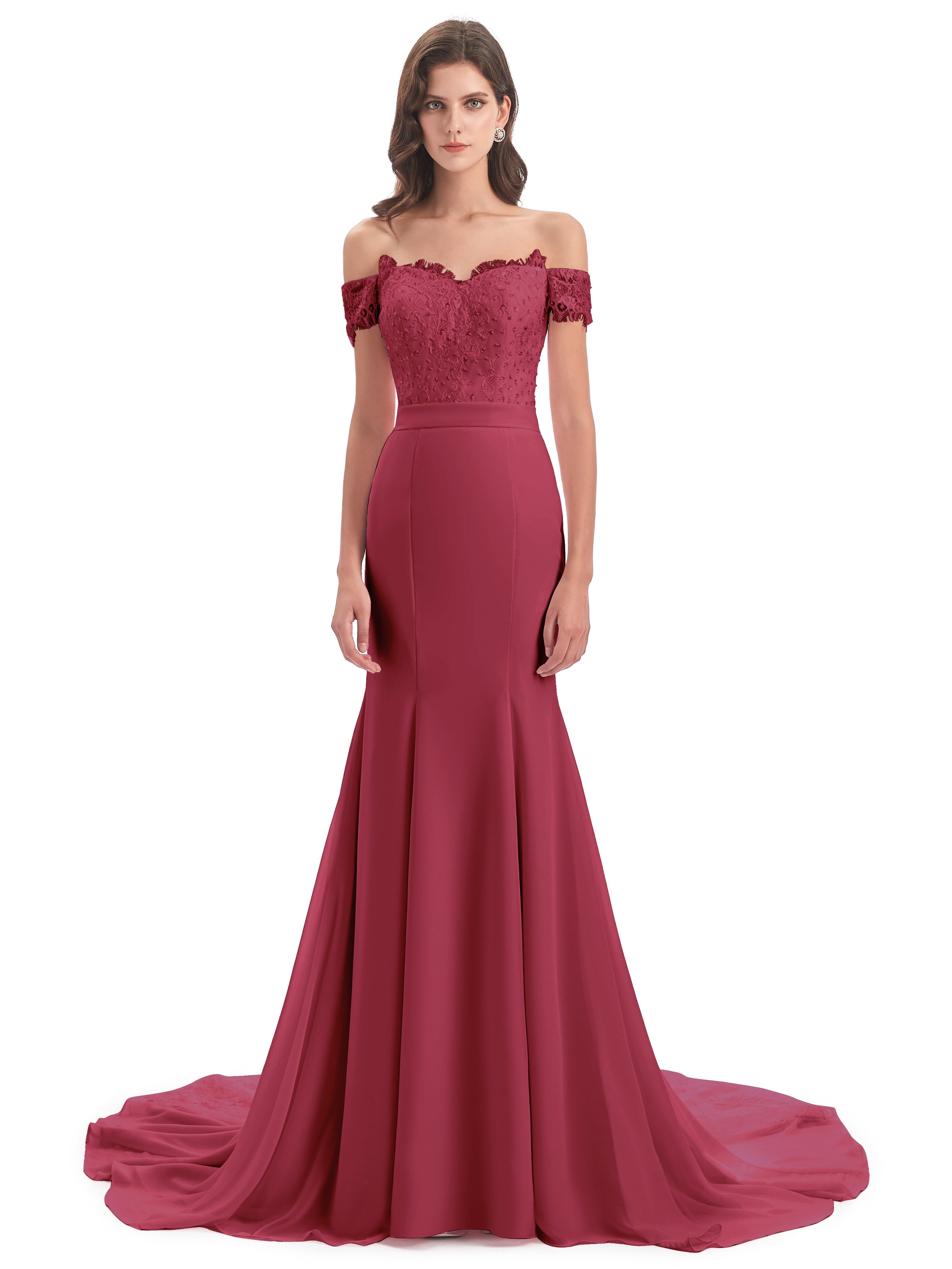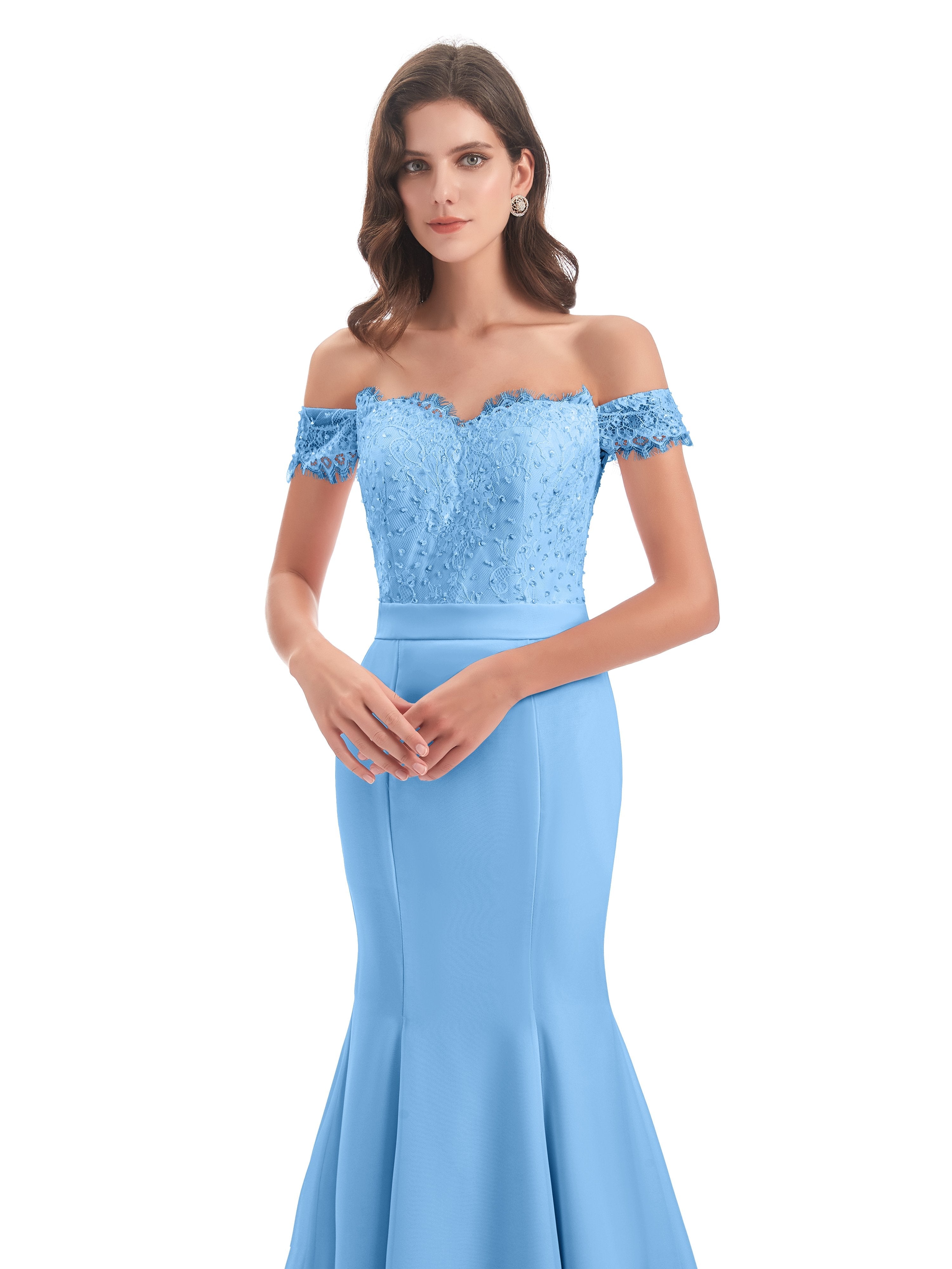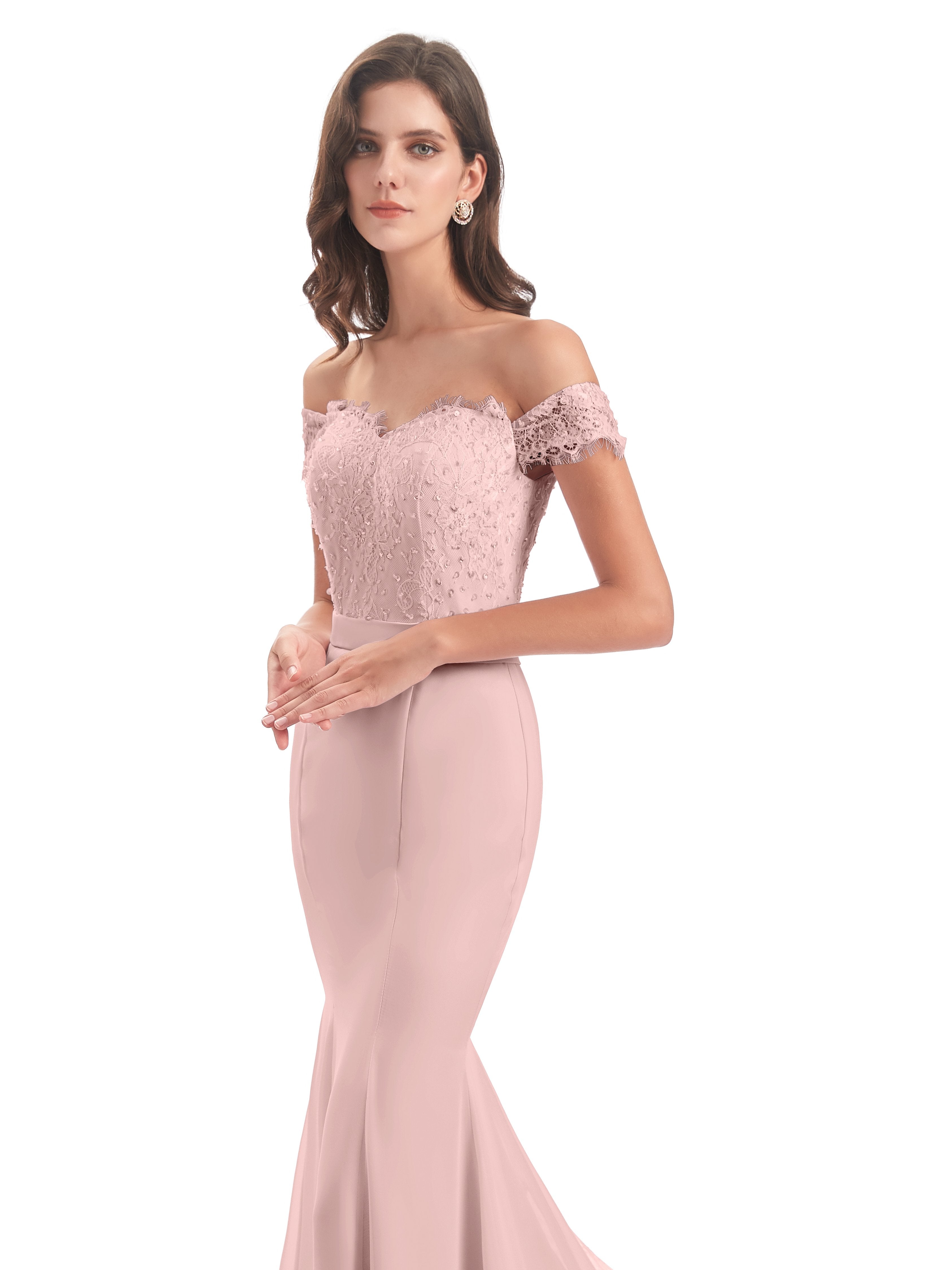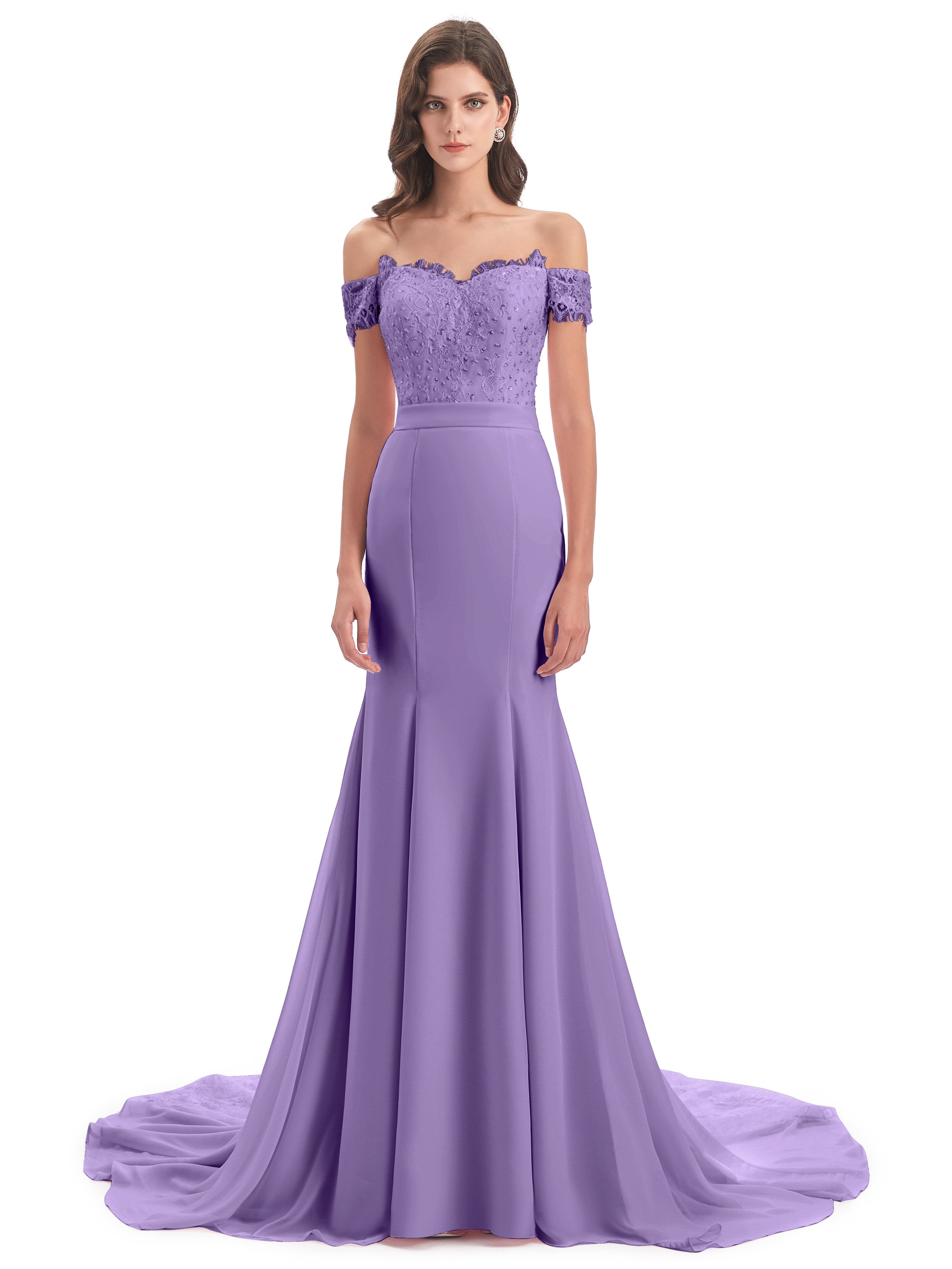 Carlee Hourglass Court Train Off The Shoulder Lace Bridesmaid Dresses