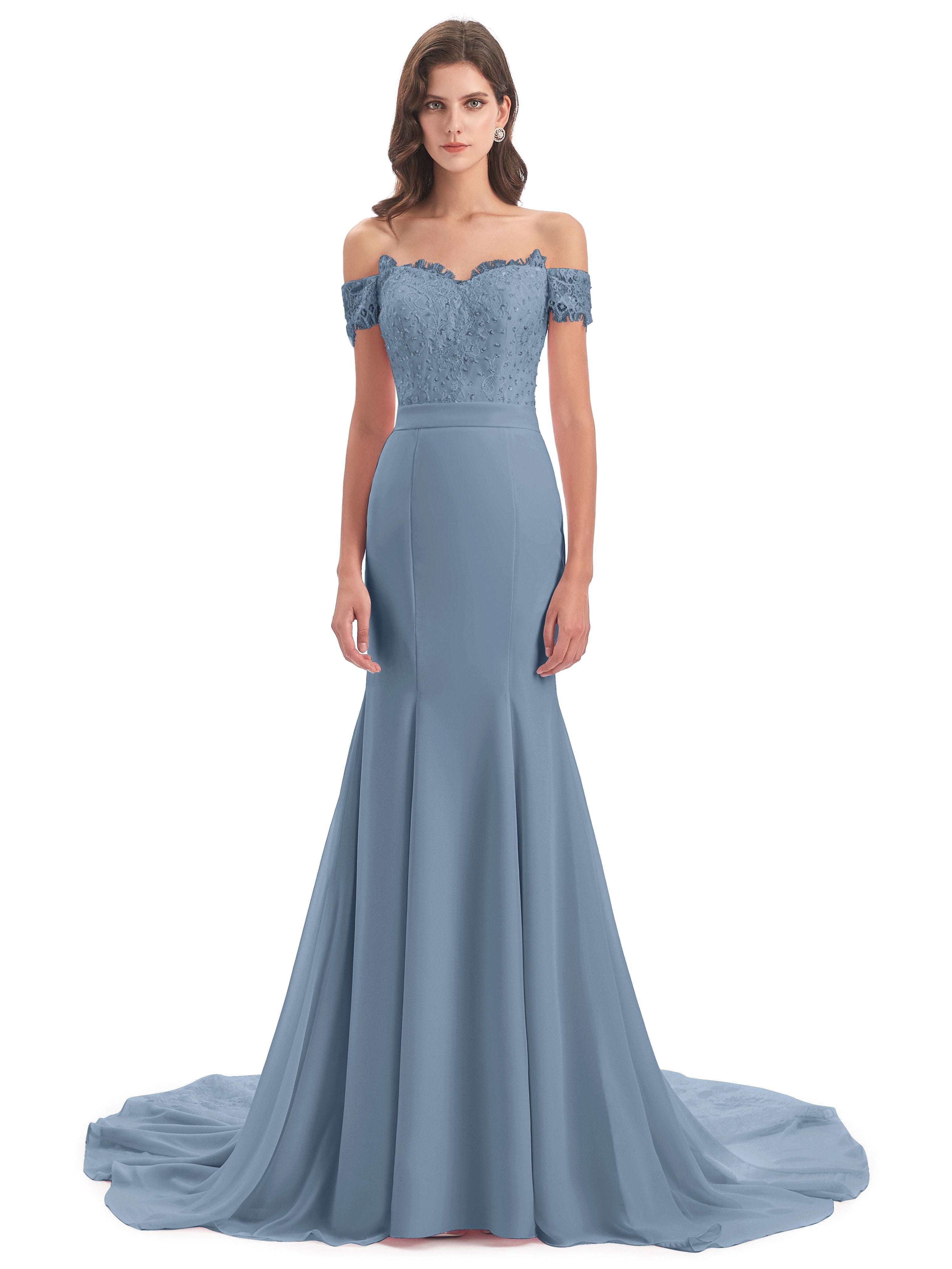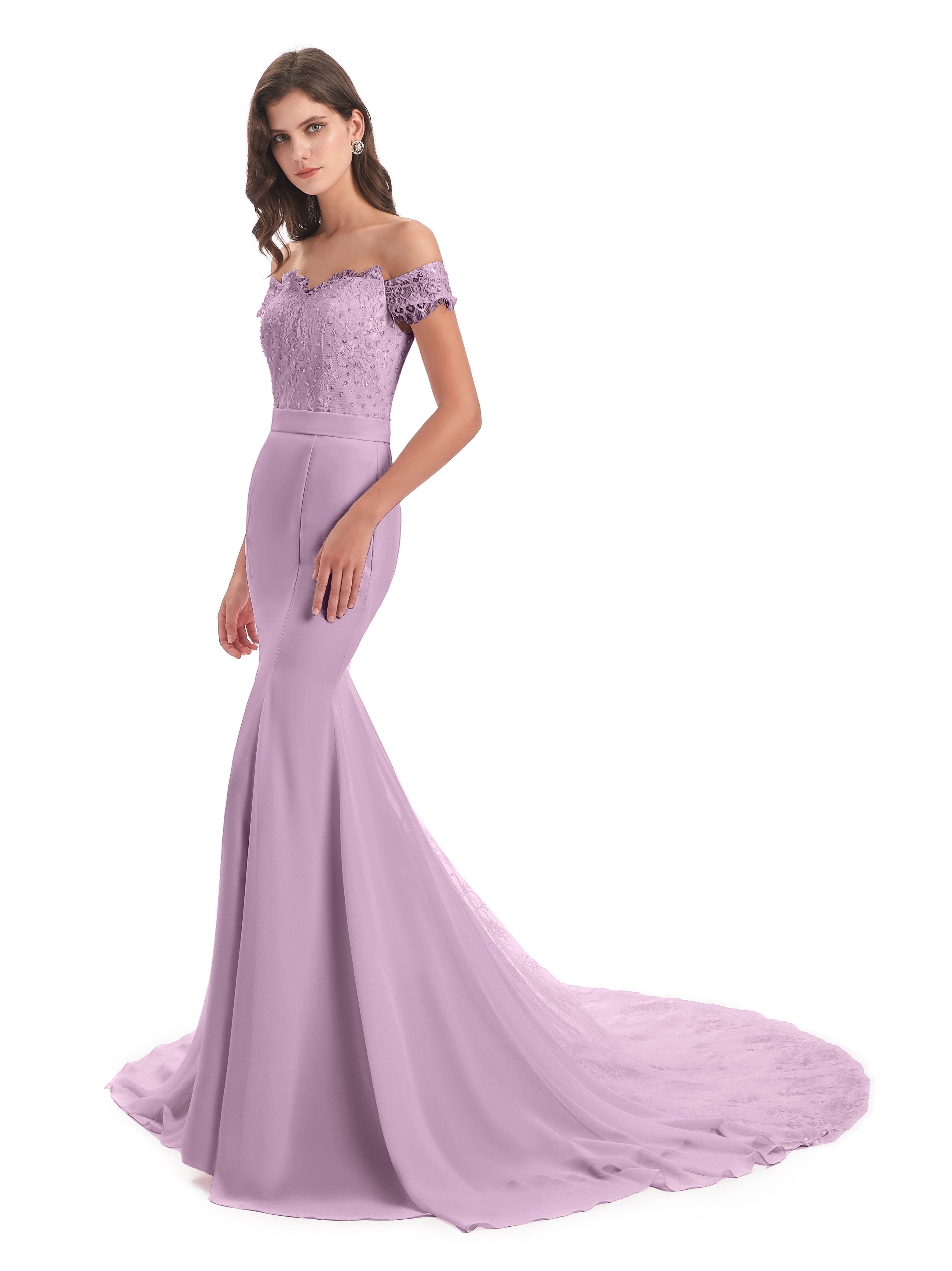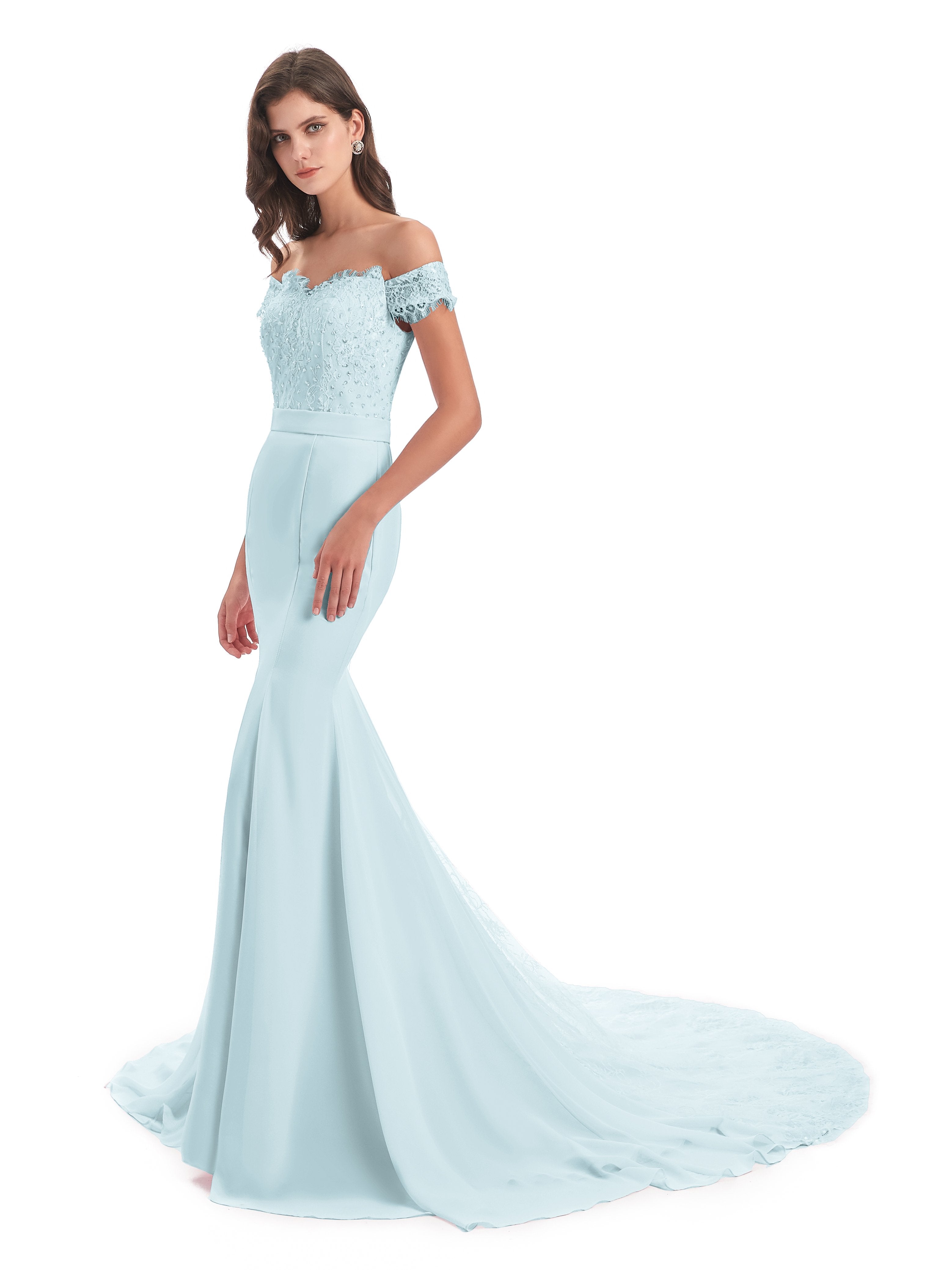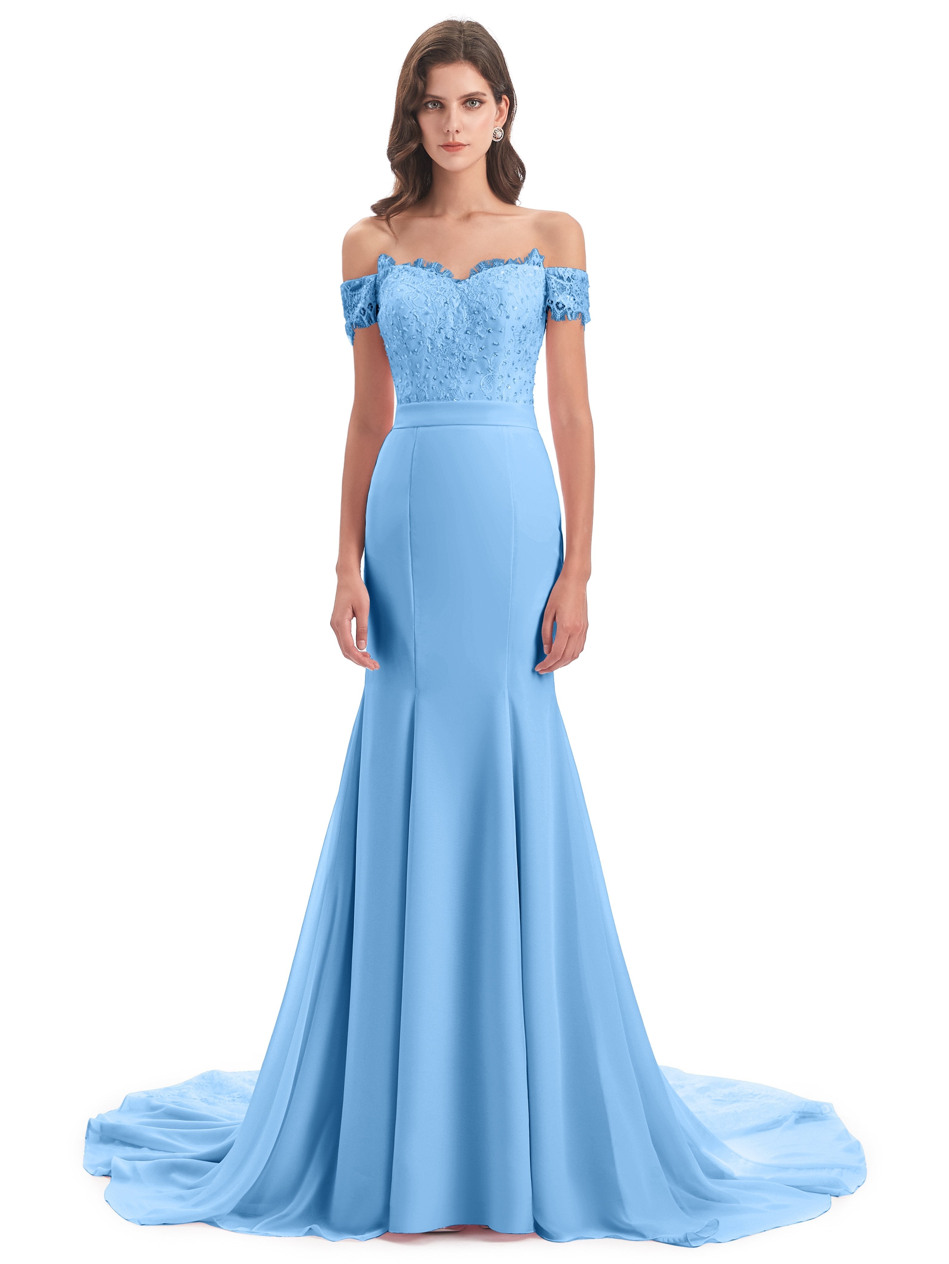 Carlee Hourglass Court Train Off The Shoulder Lace Bridesmaid Dresses