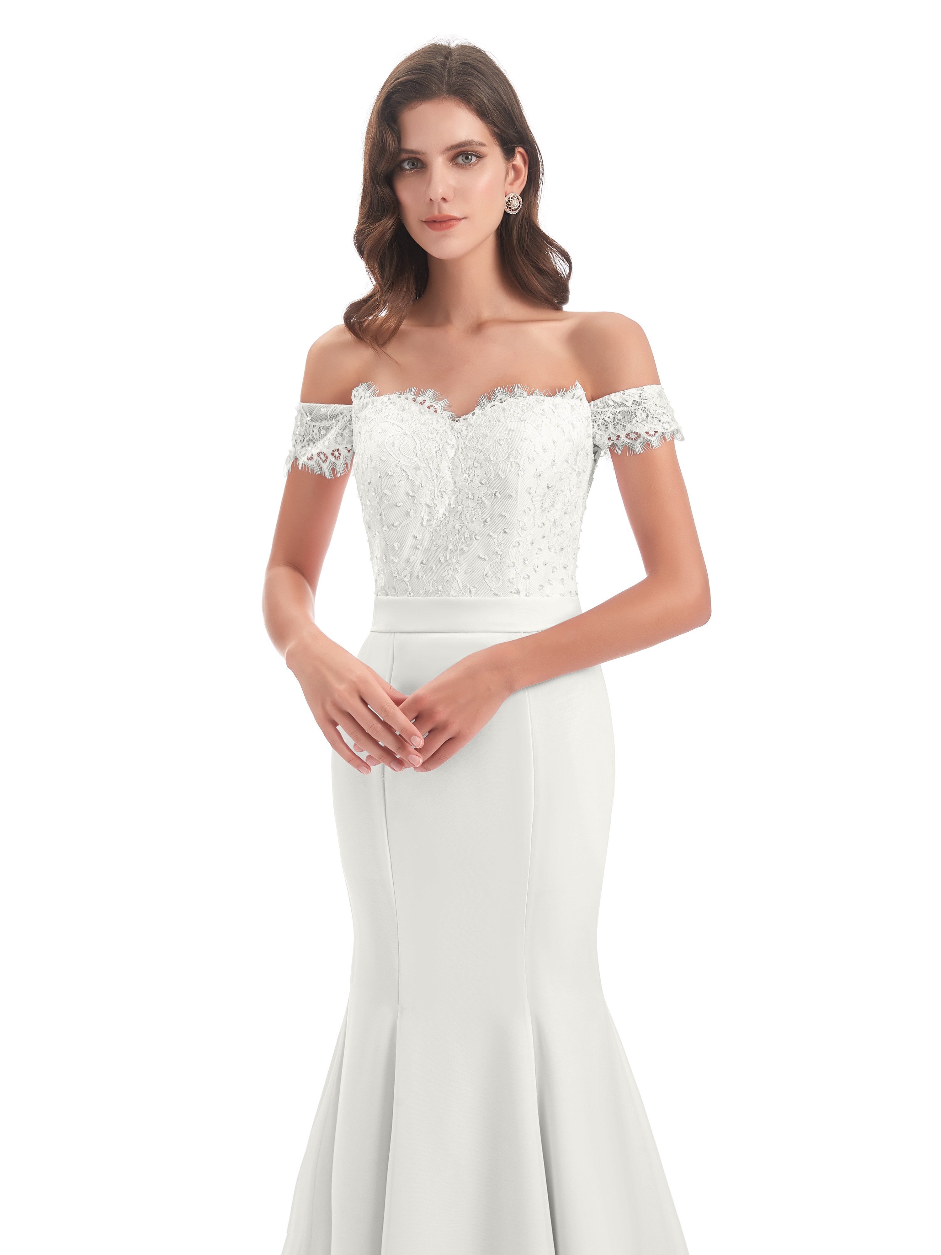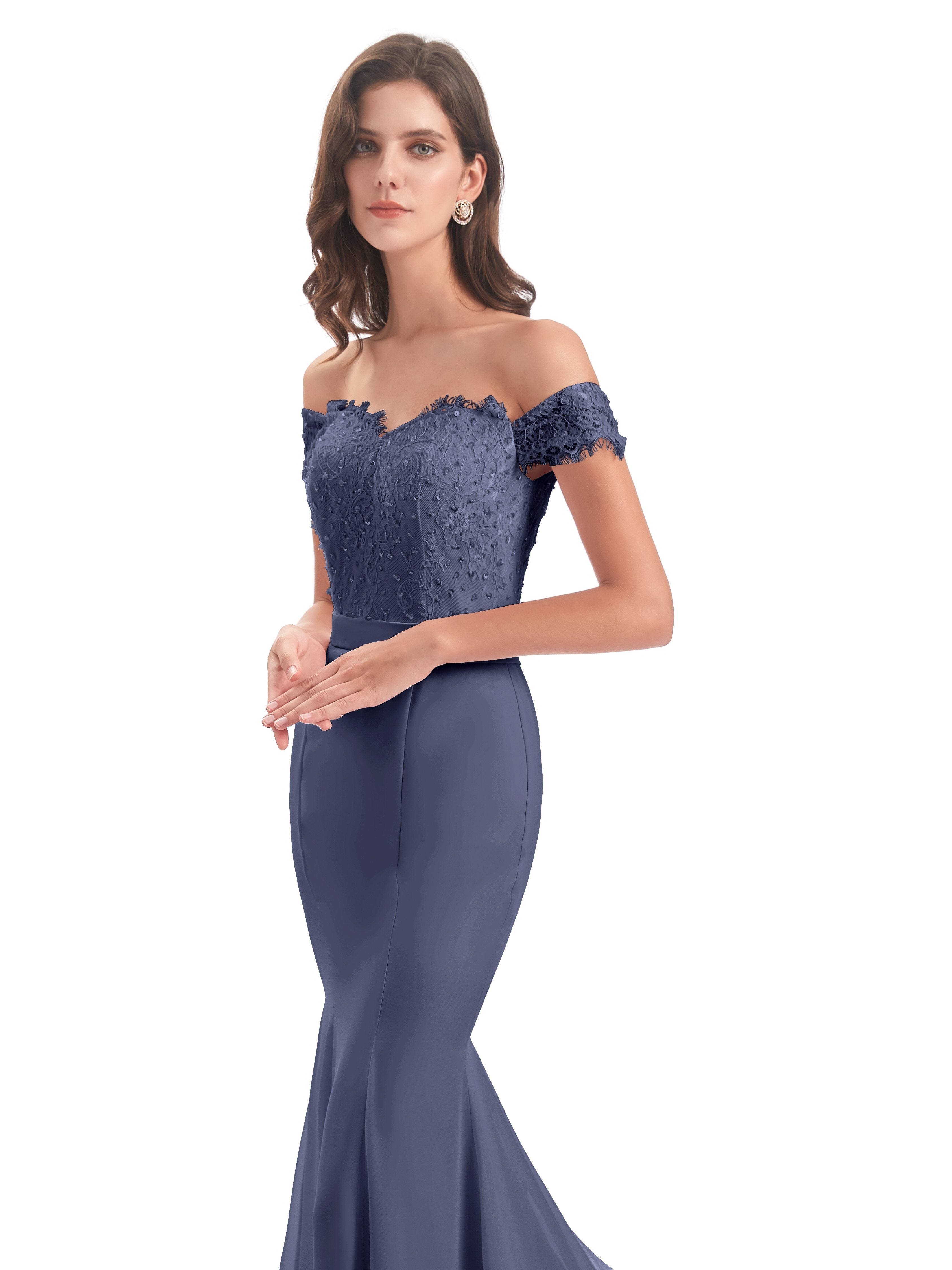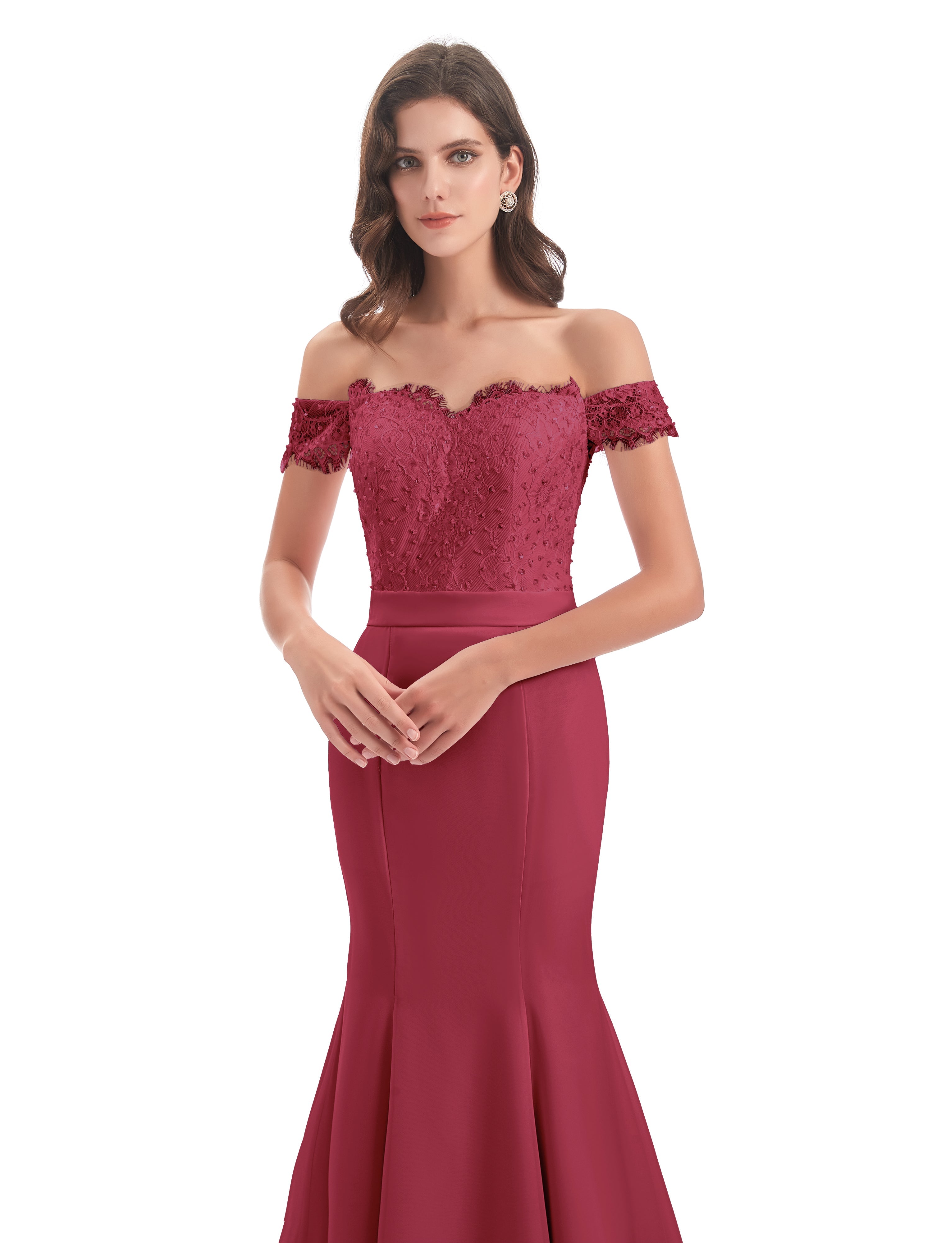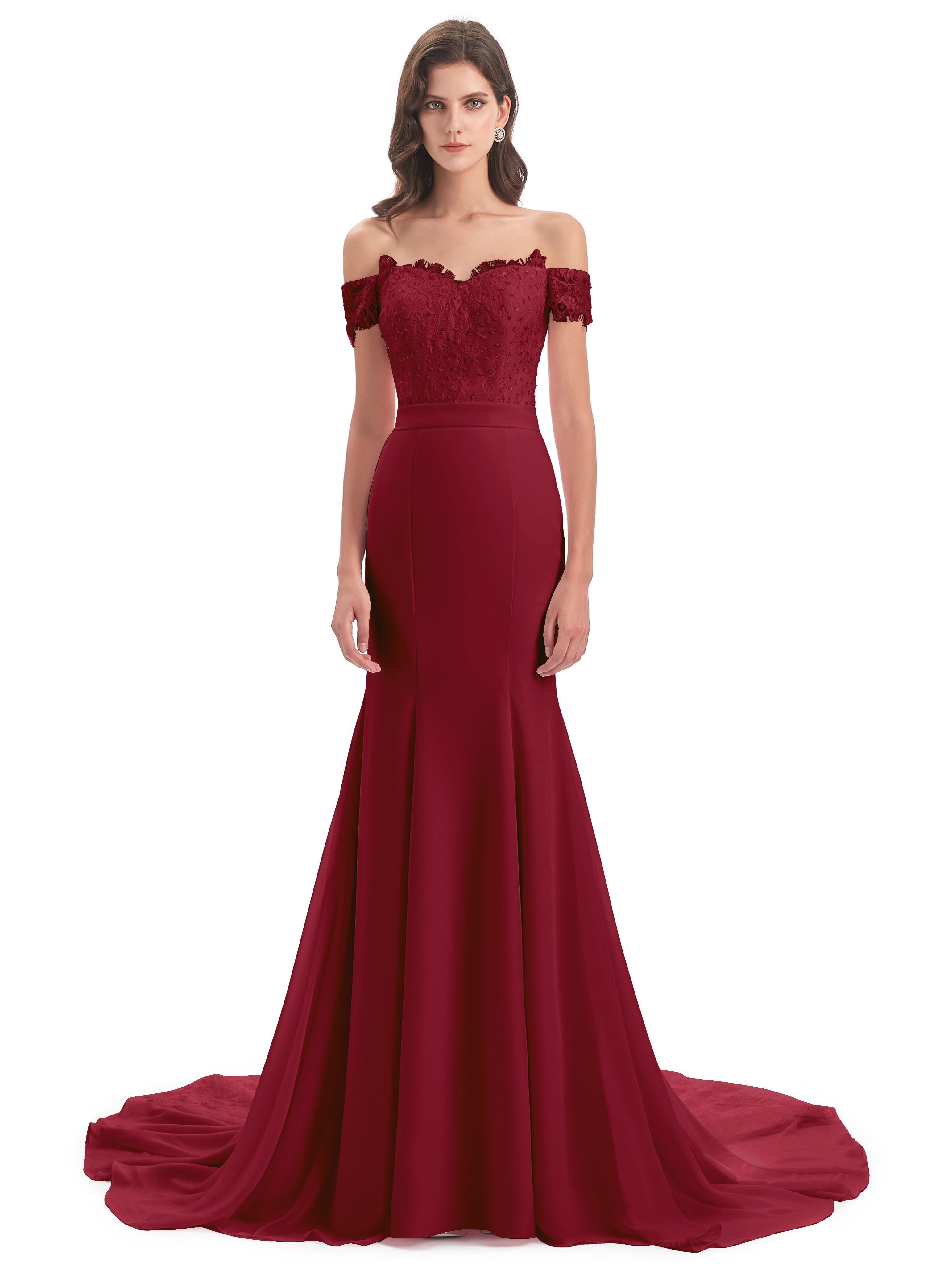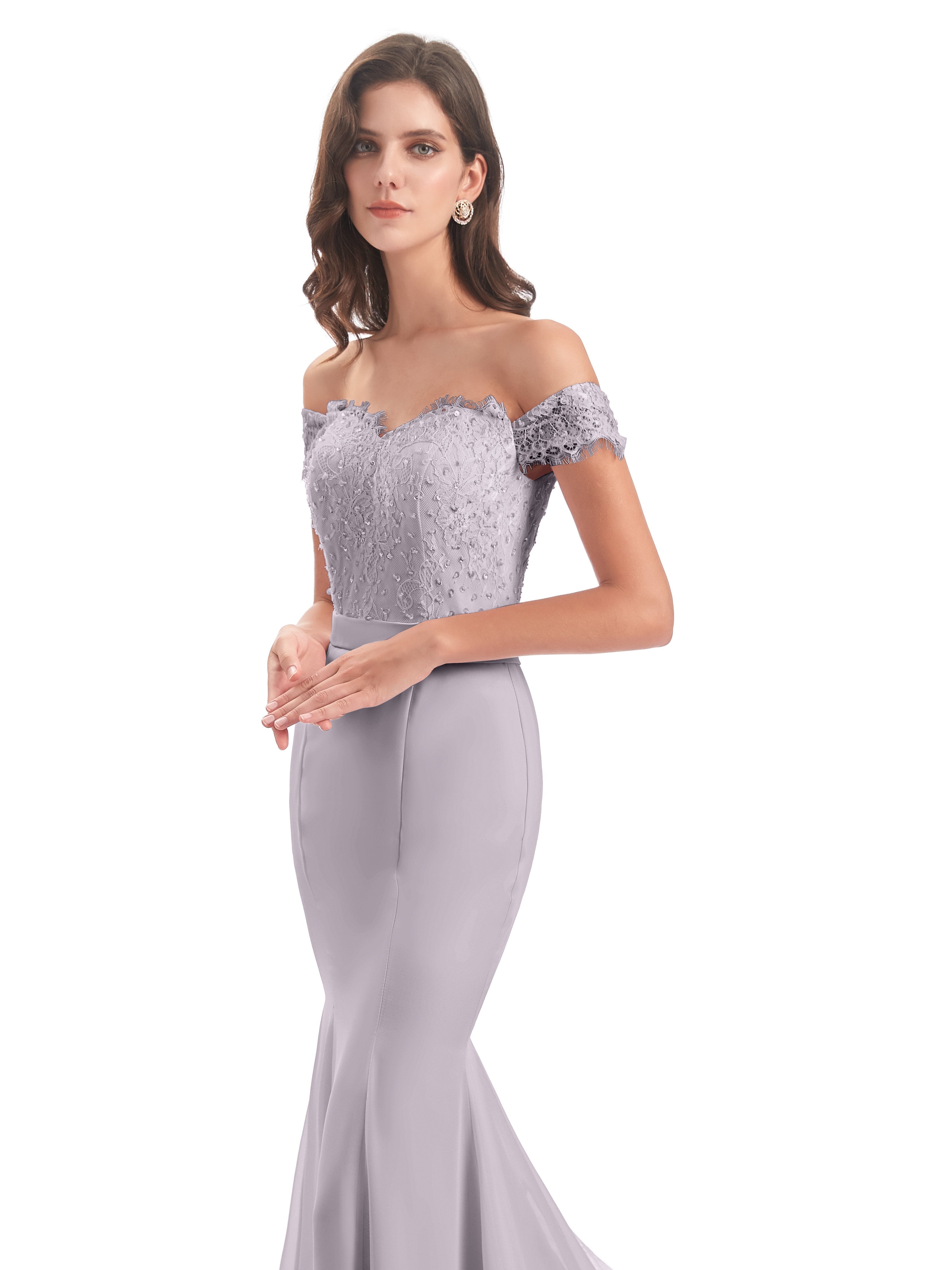 Carlee Hourglass Court Train Off The Shoulder Lace Bridesmaid Dresses