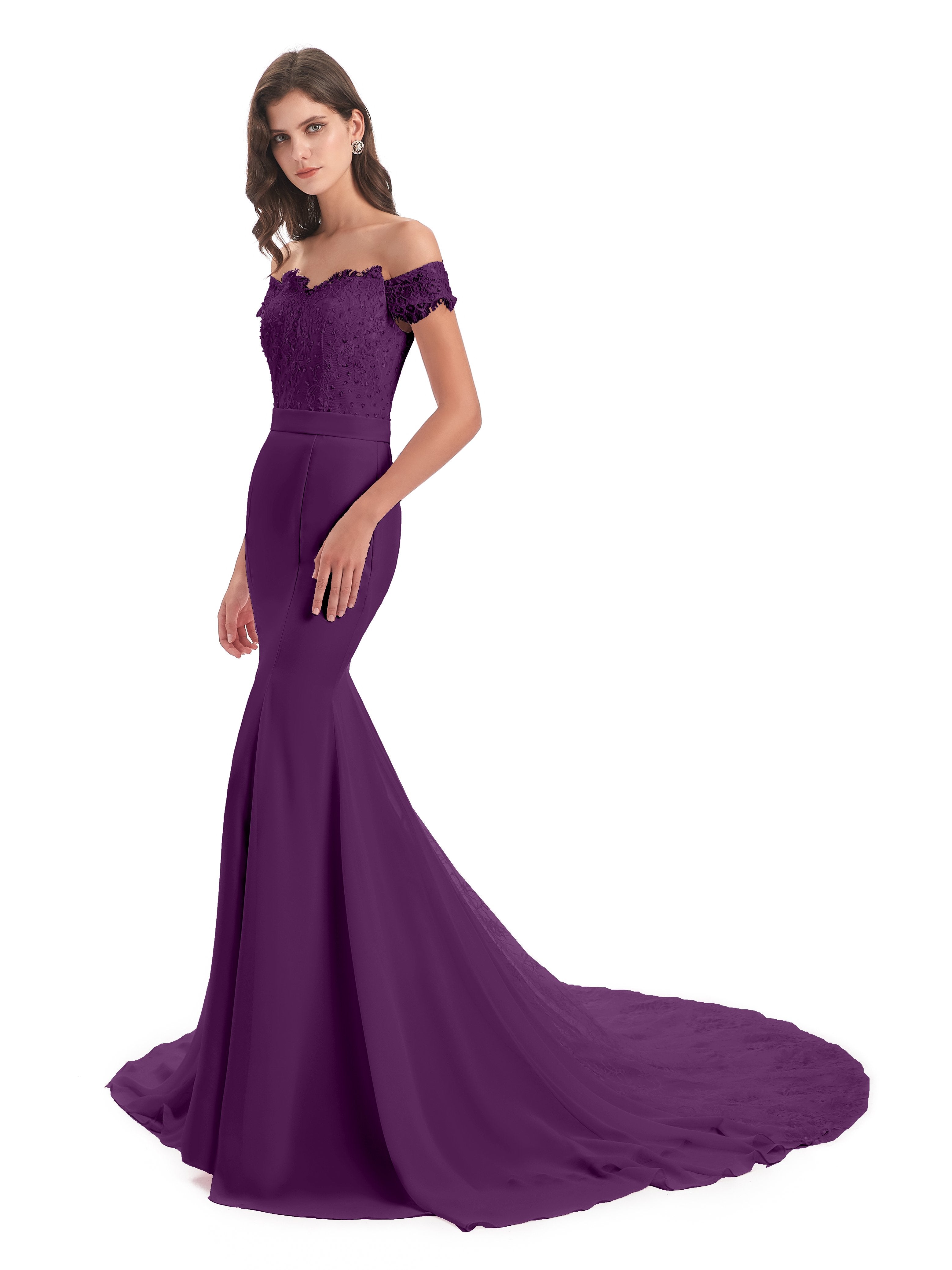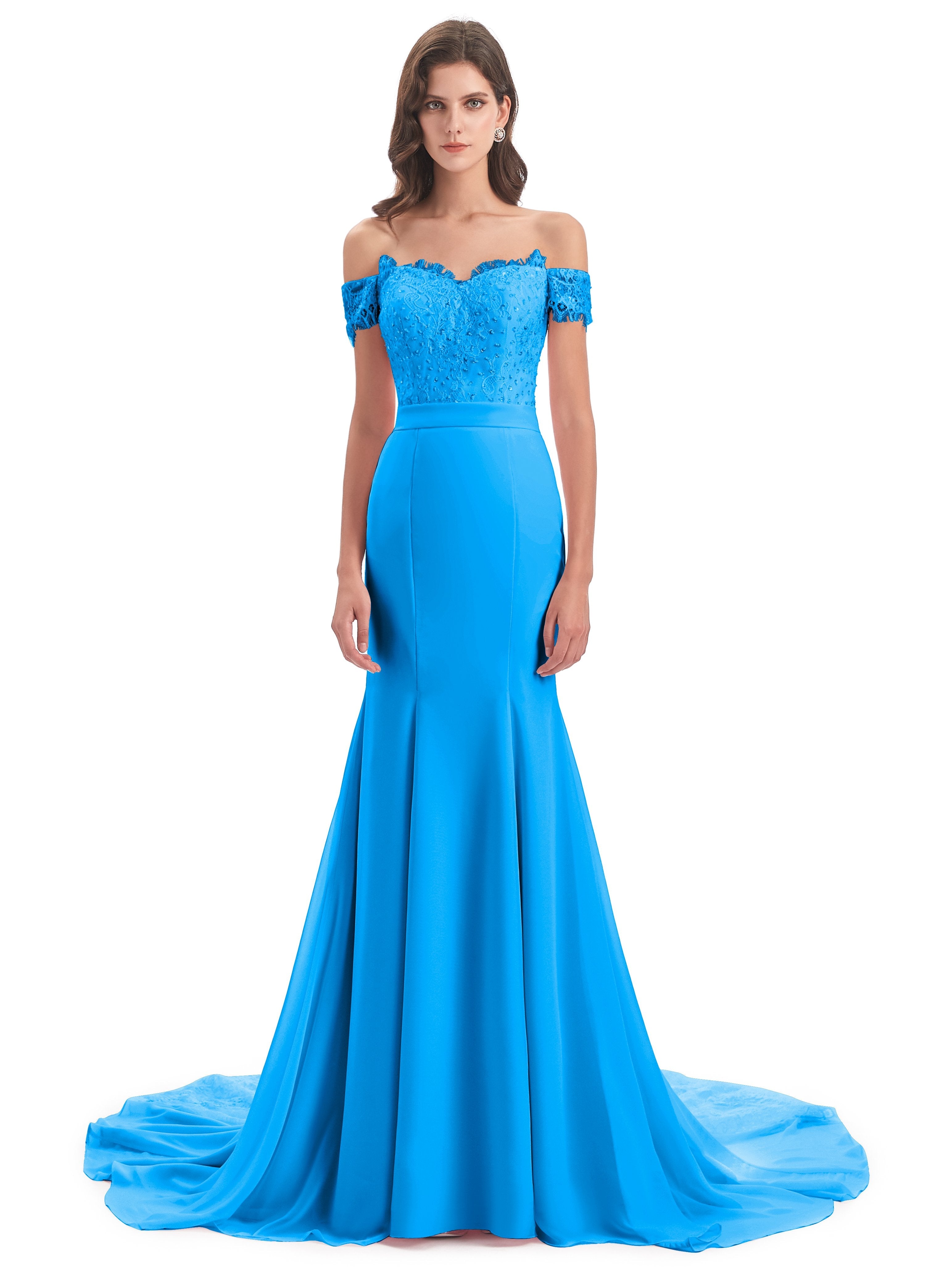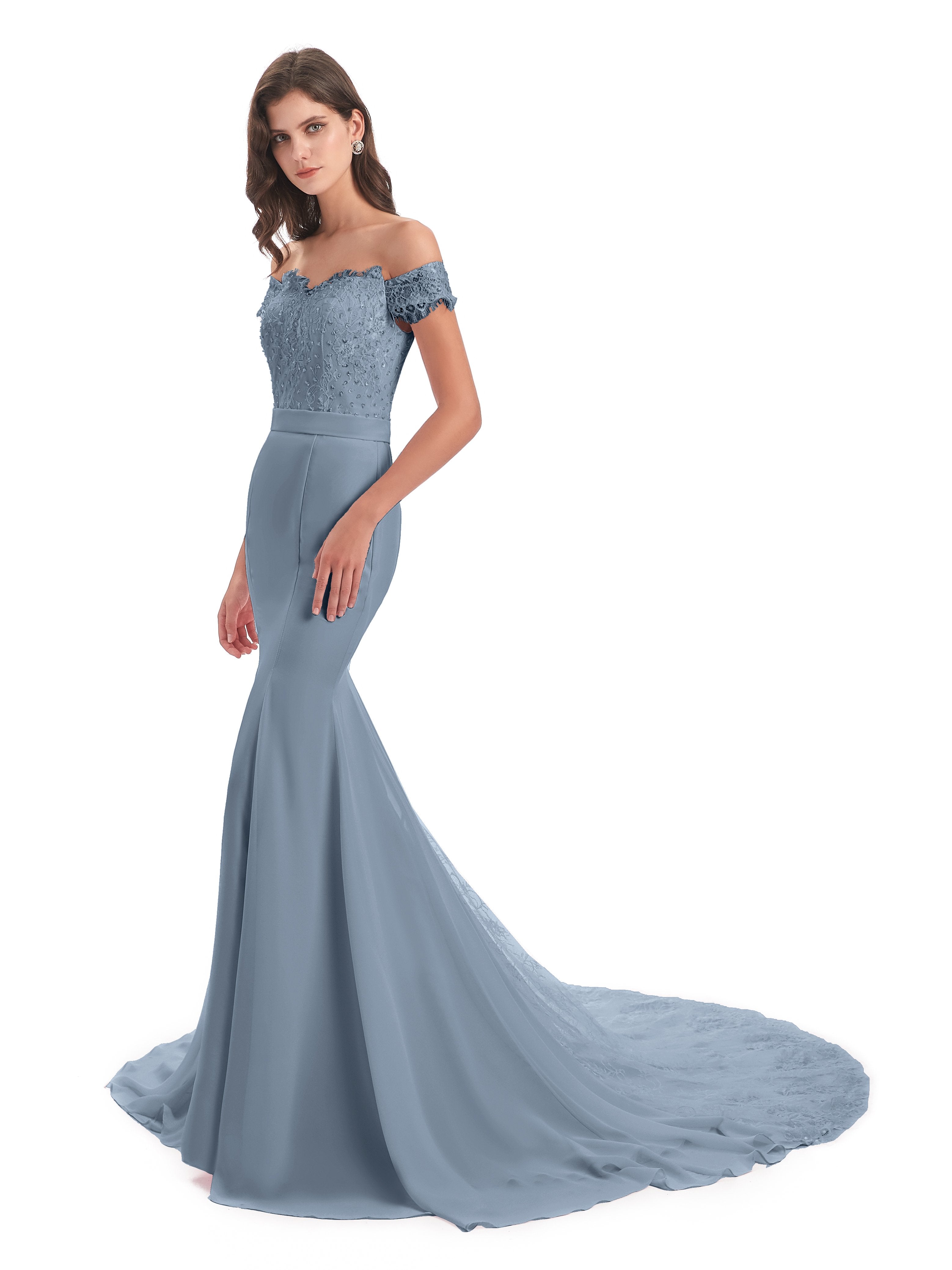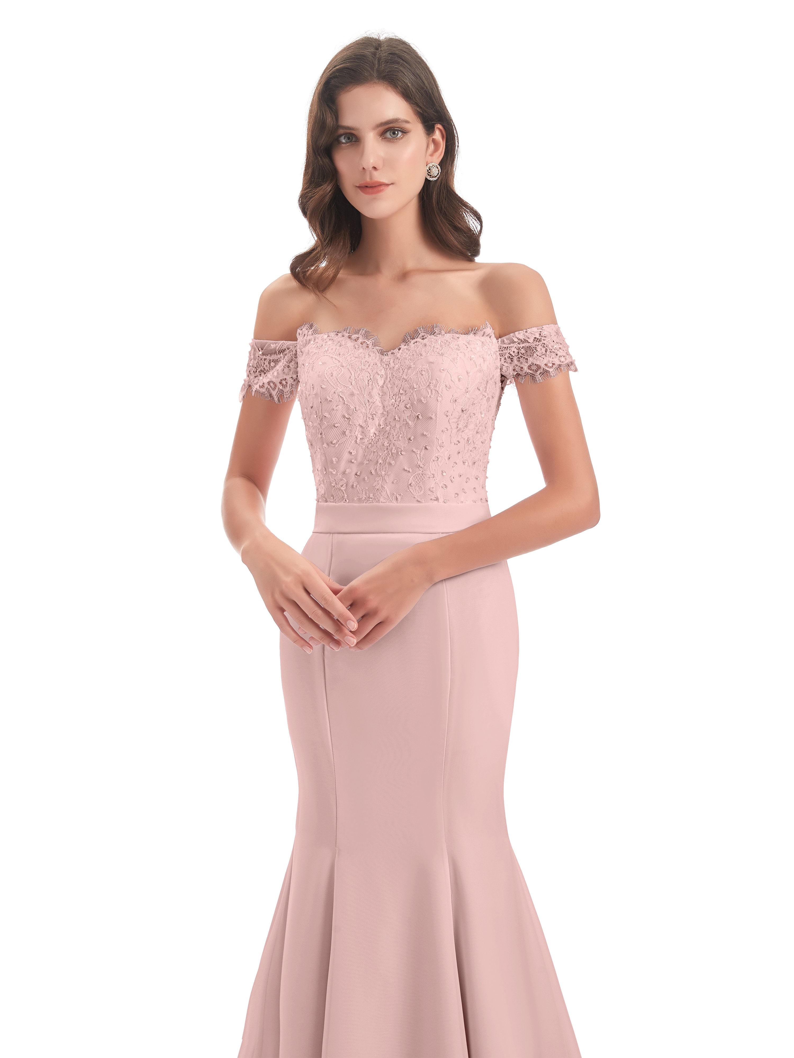 Carlee Hourglass Court Train Off The Shoulder Lace Bridesmaid Dresses