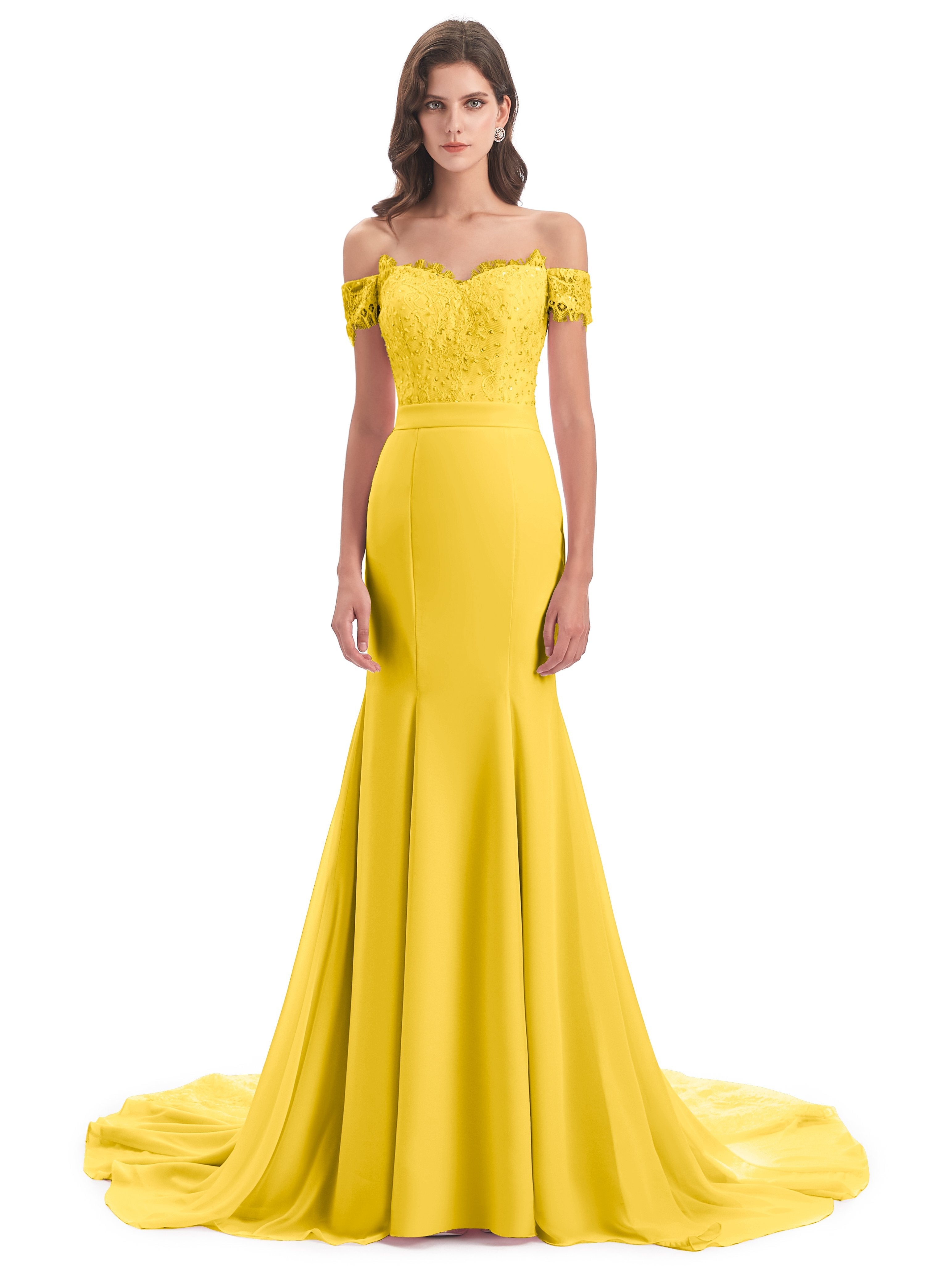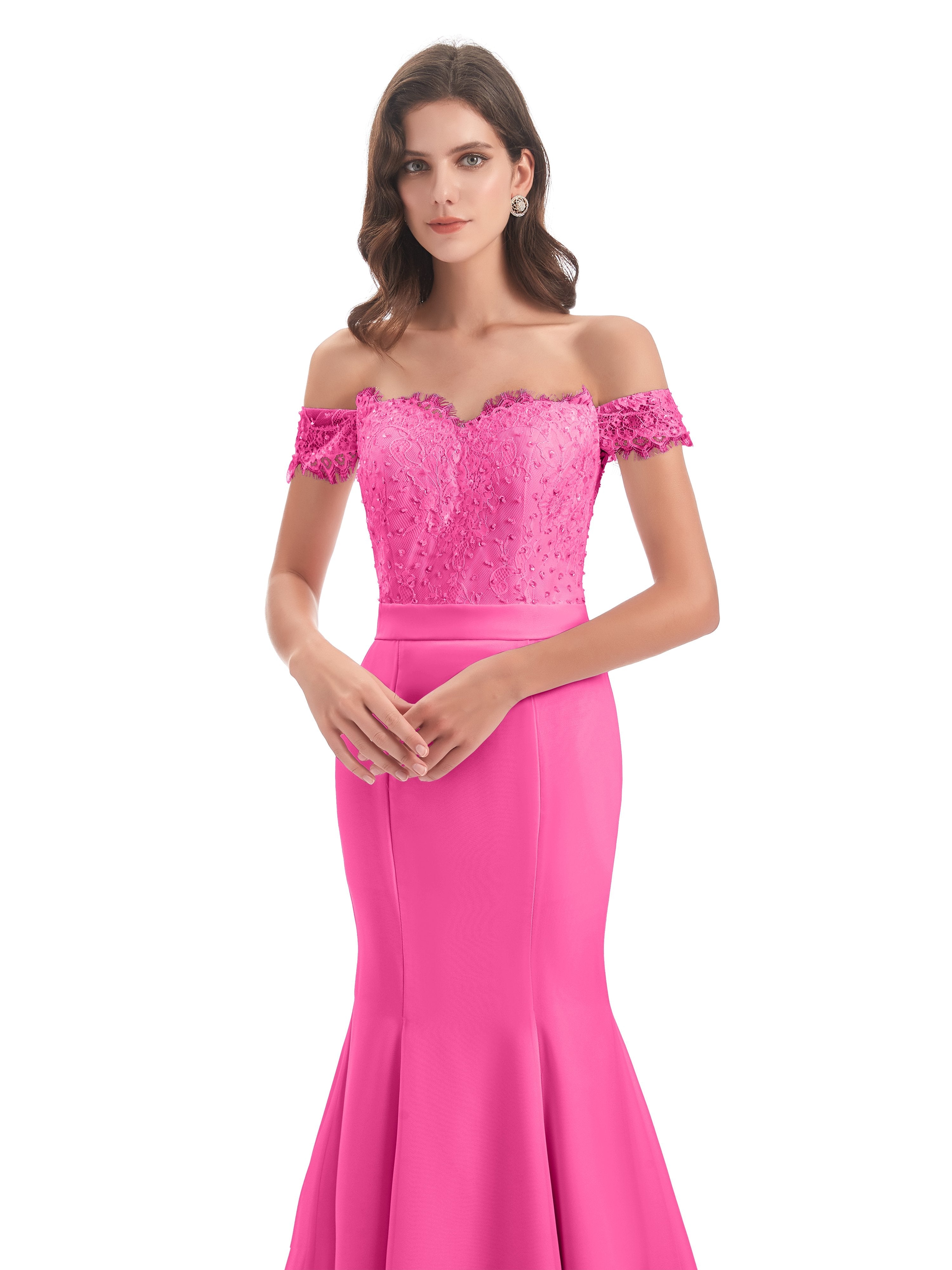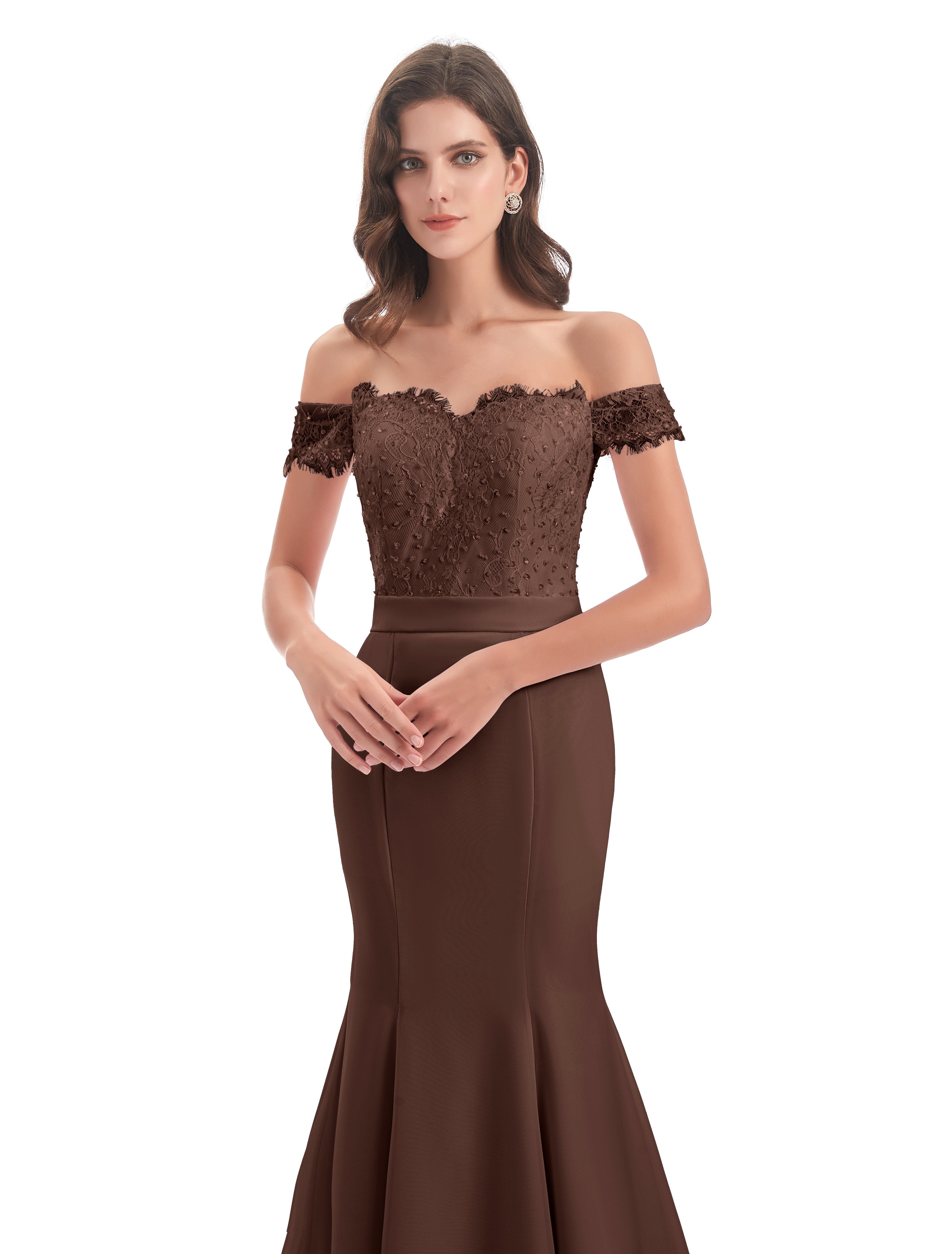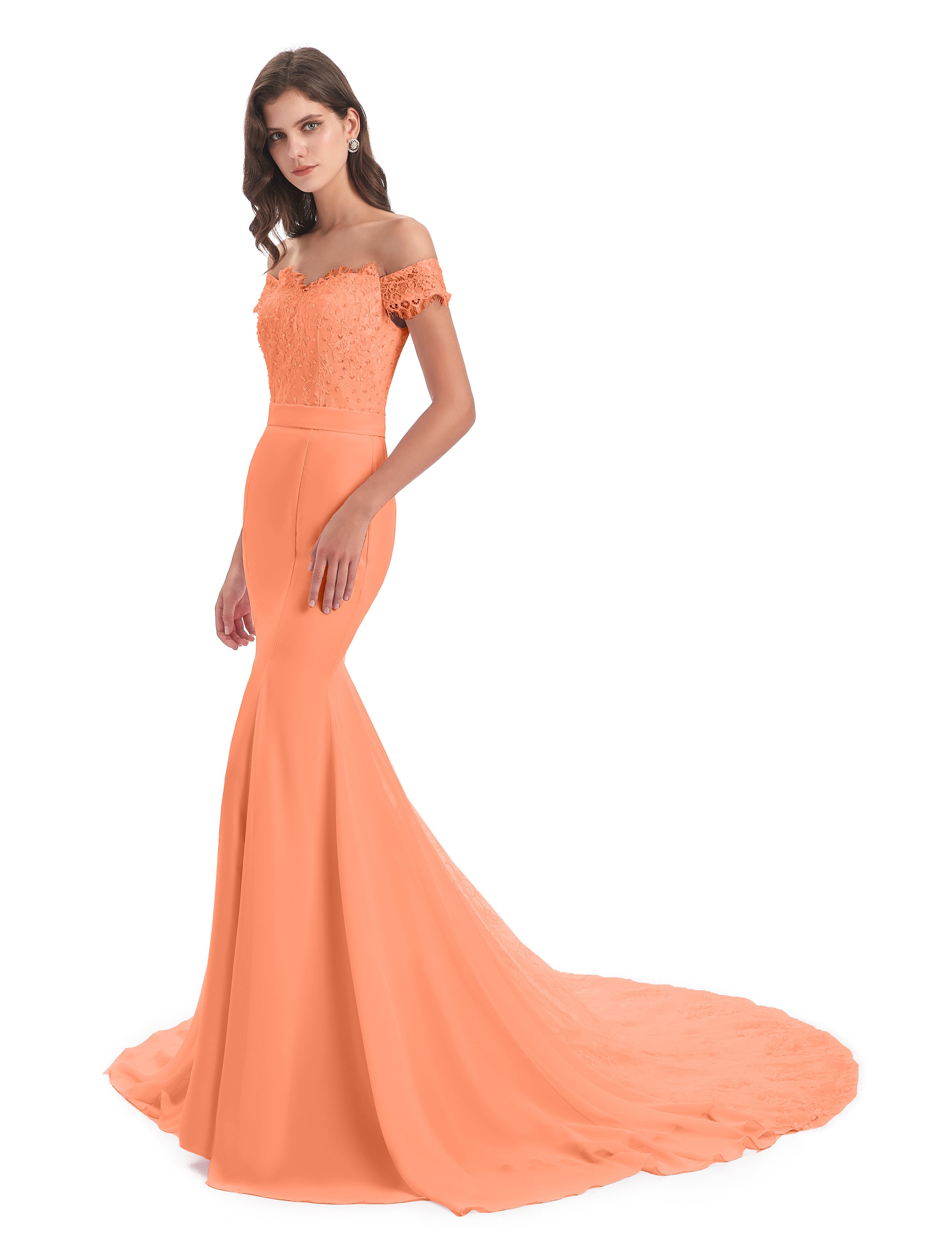 Carlee Hourglass Court Train Off The Shoulder Lace Bridesmaid Dresses