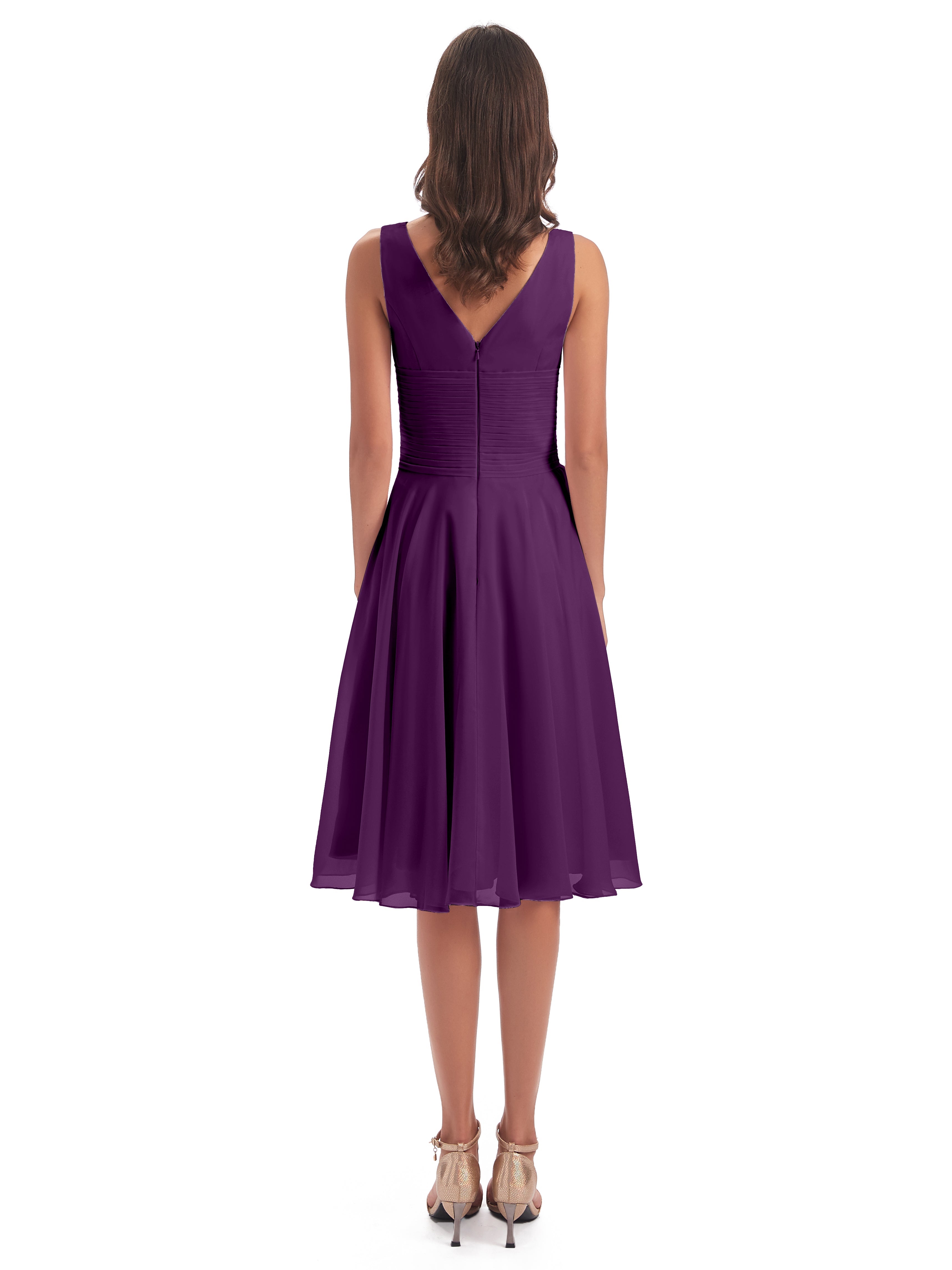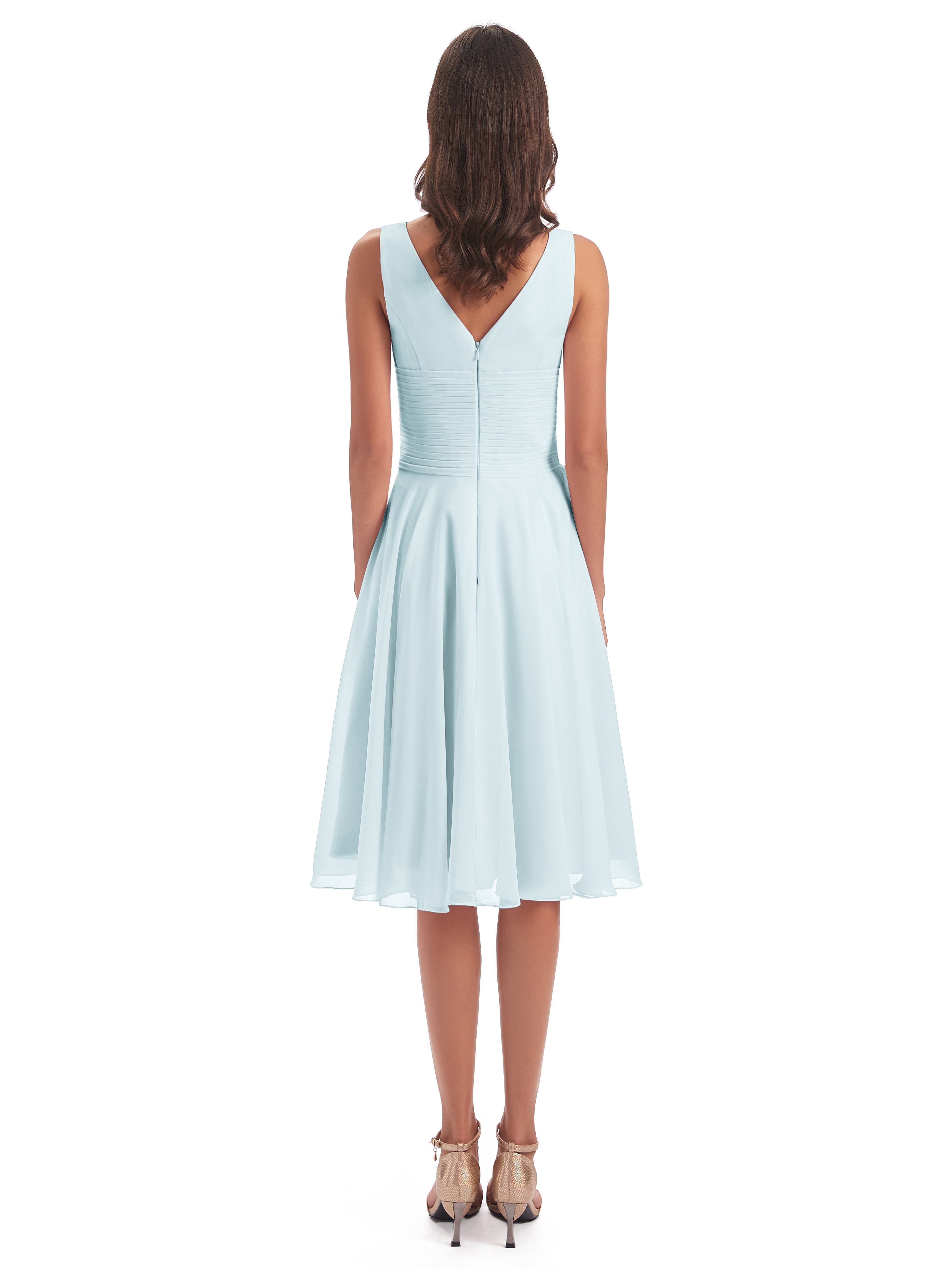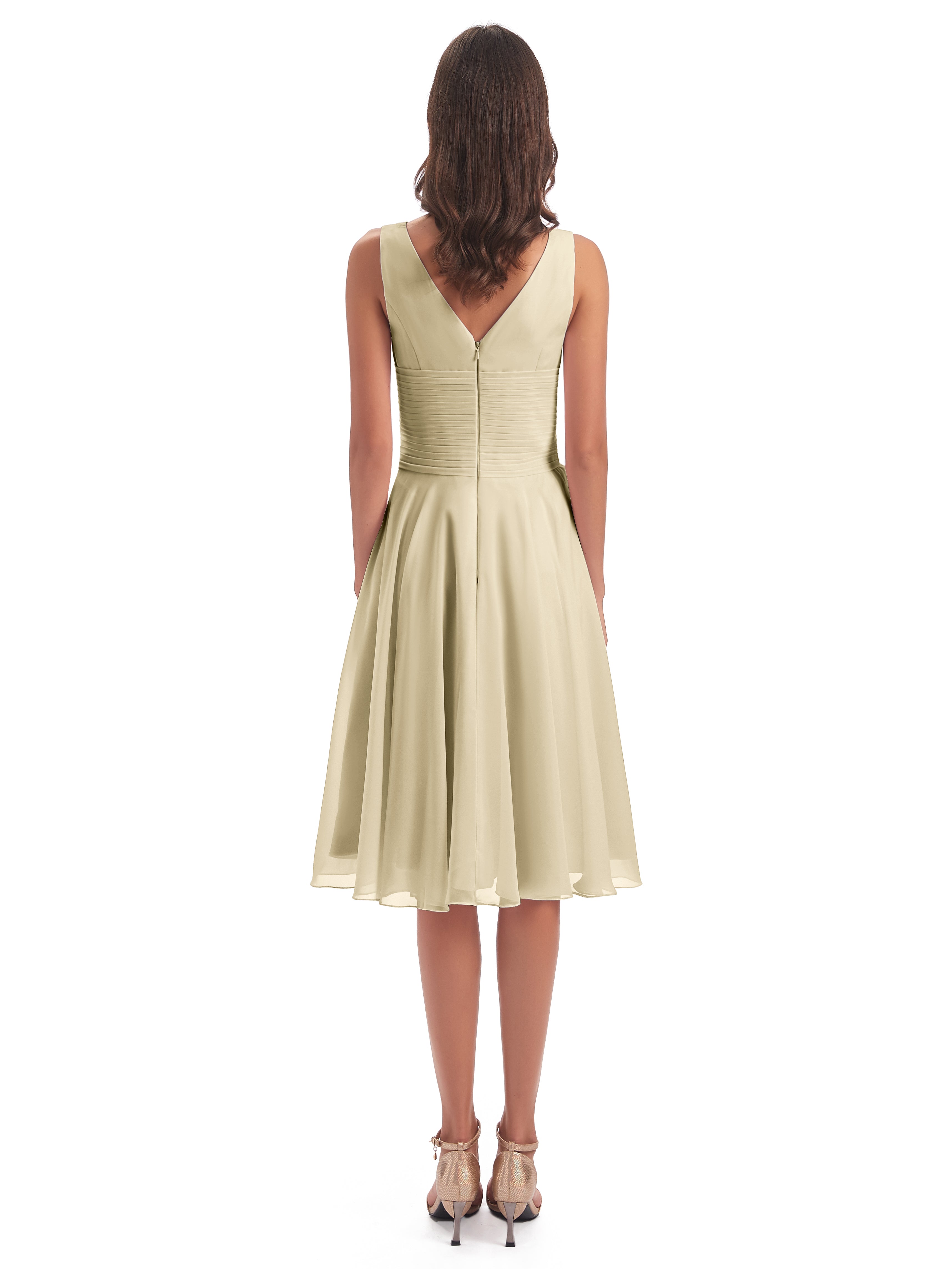 Caylee Knee Length V-neck Asymmetrical Chiffon Bridesmaid Dresses