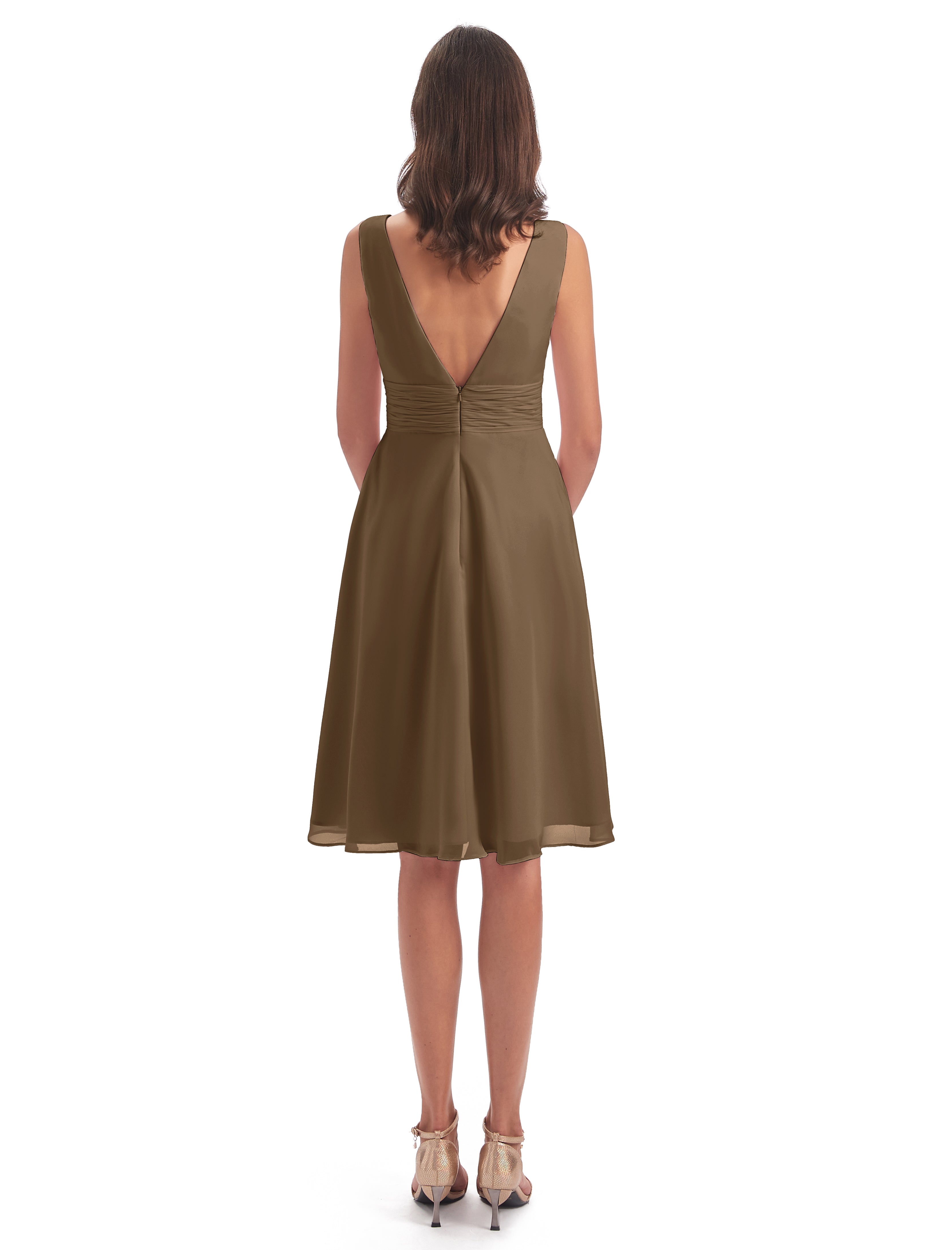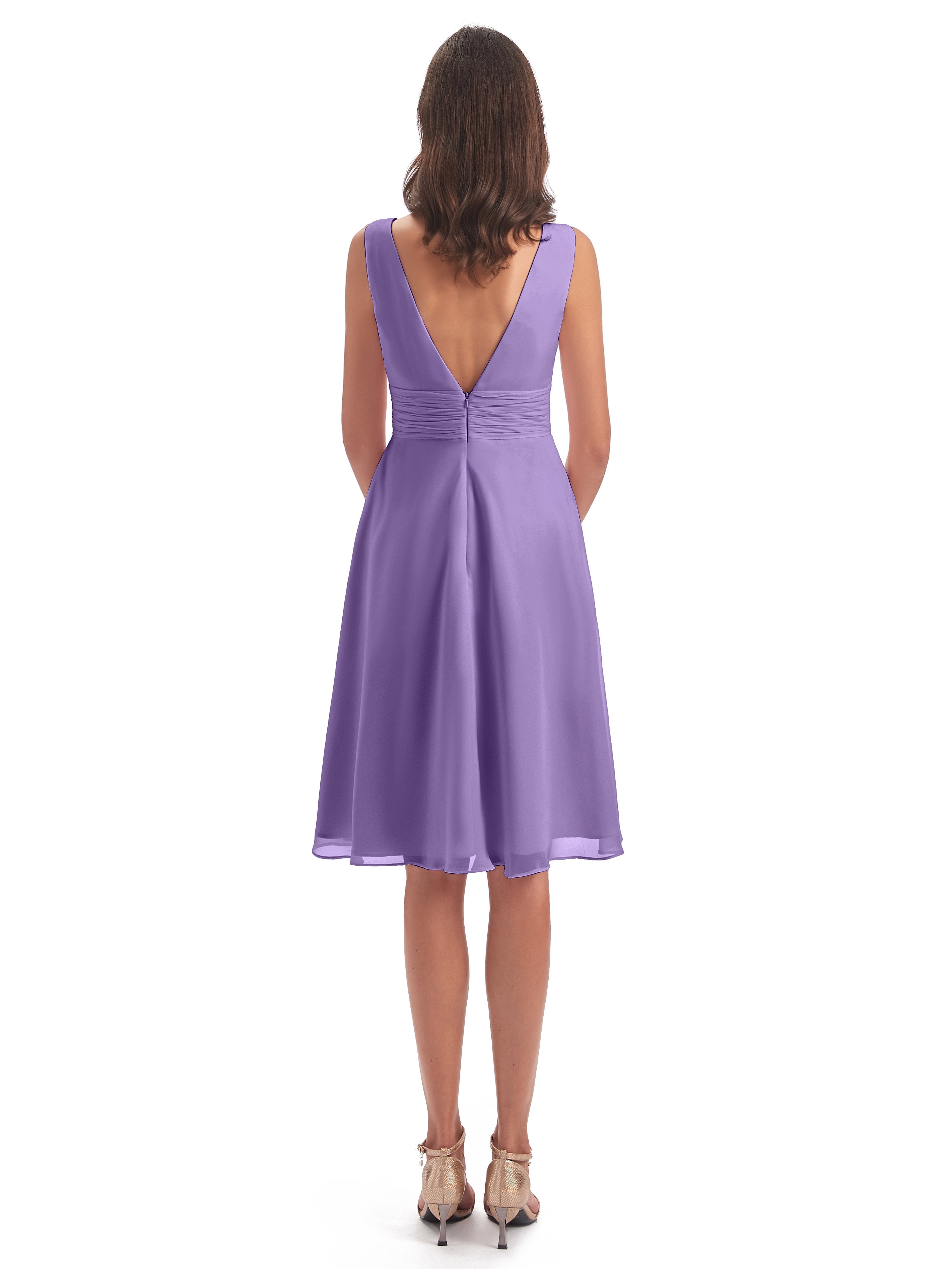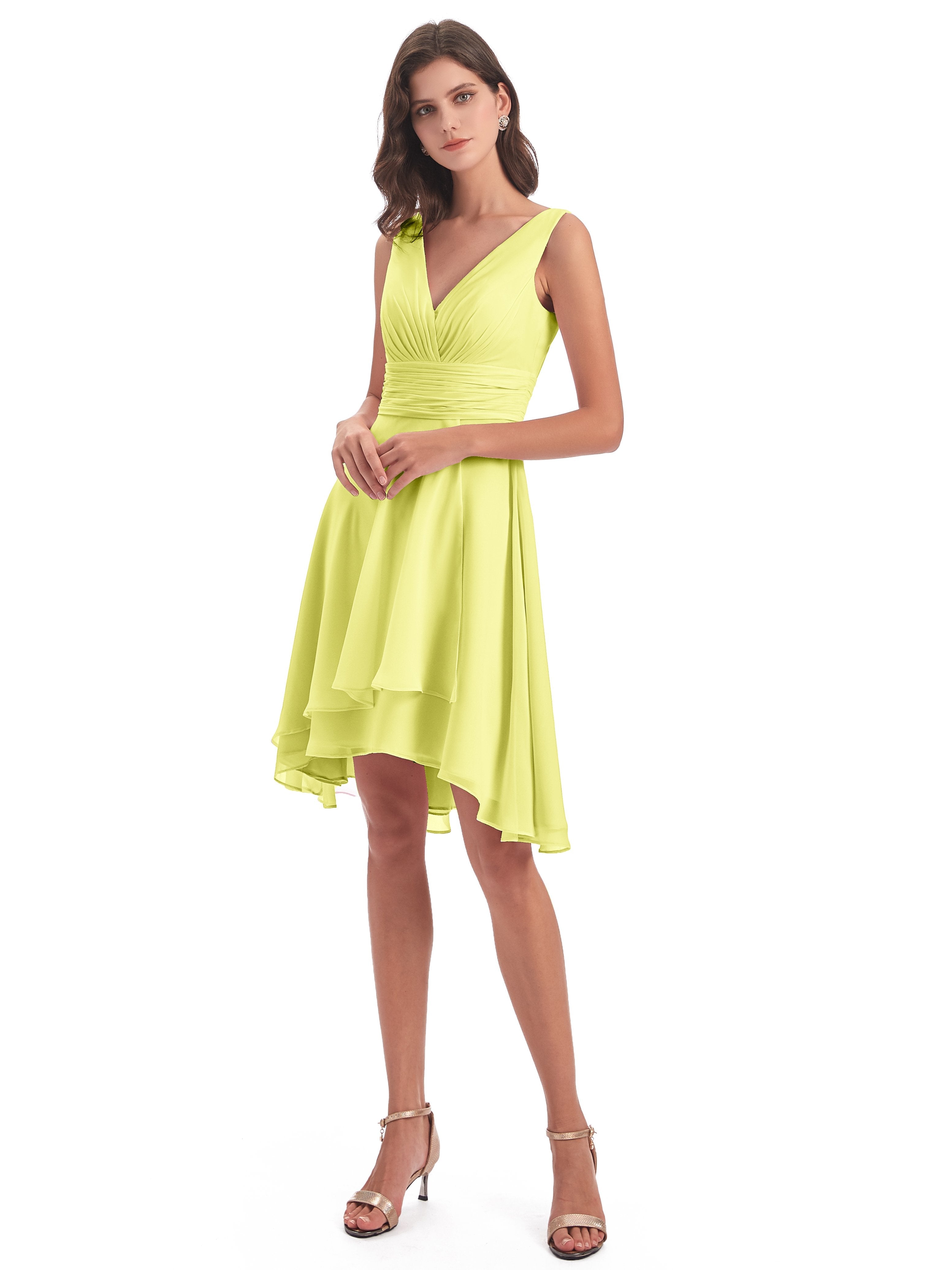 Esperanza Knee Length High Low V-neck Chiffon Bridesmaid Dresses