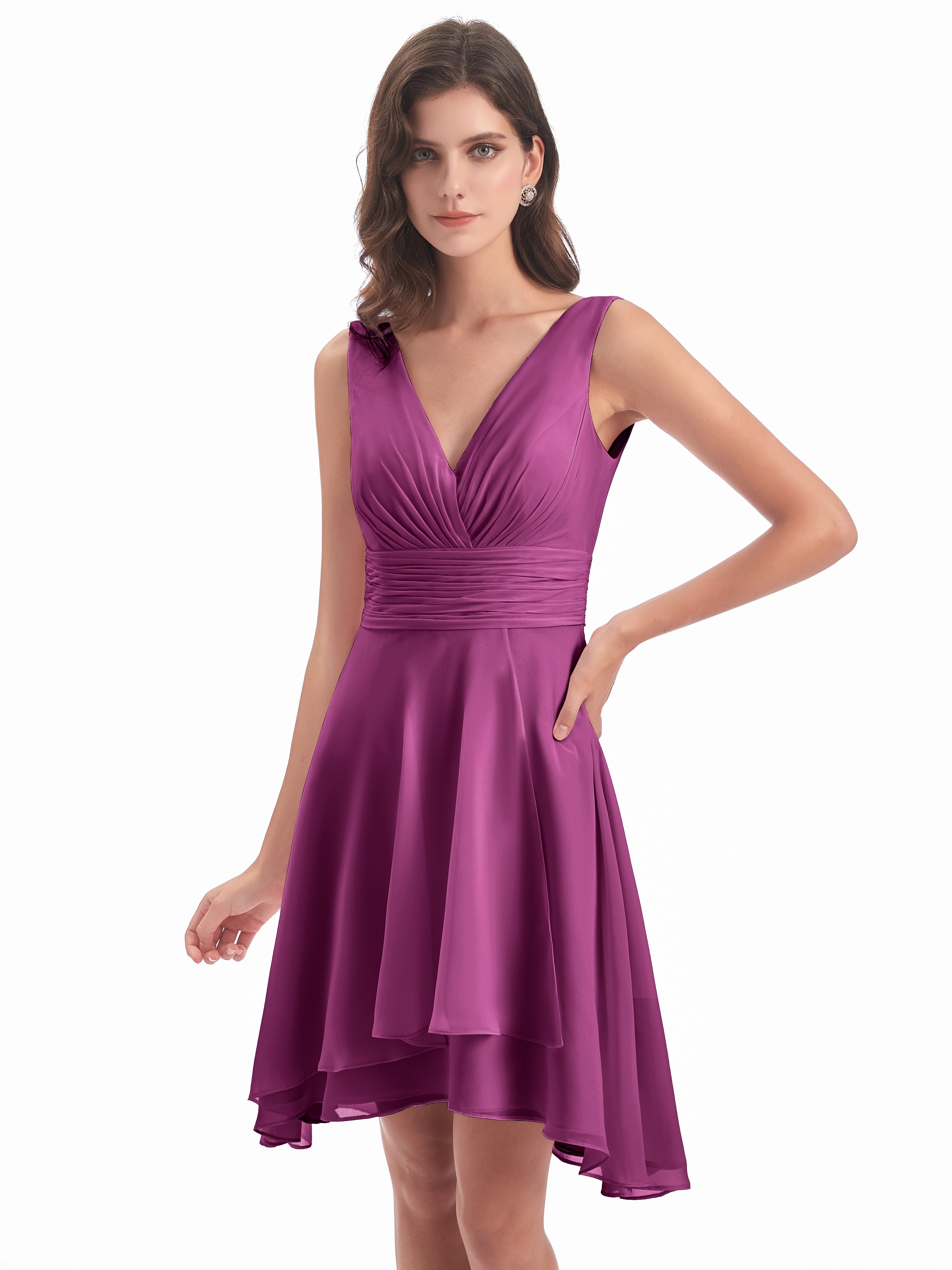 Cicinia Esperanza A-line High Low V-neck Chiffon Short Bridesmaid Dresses