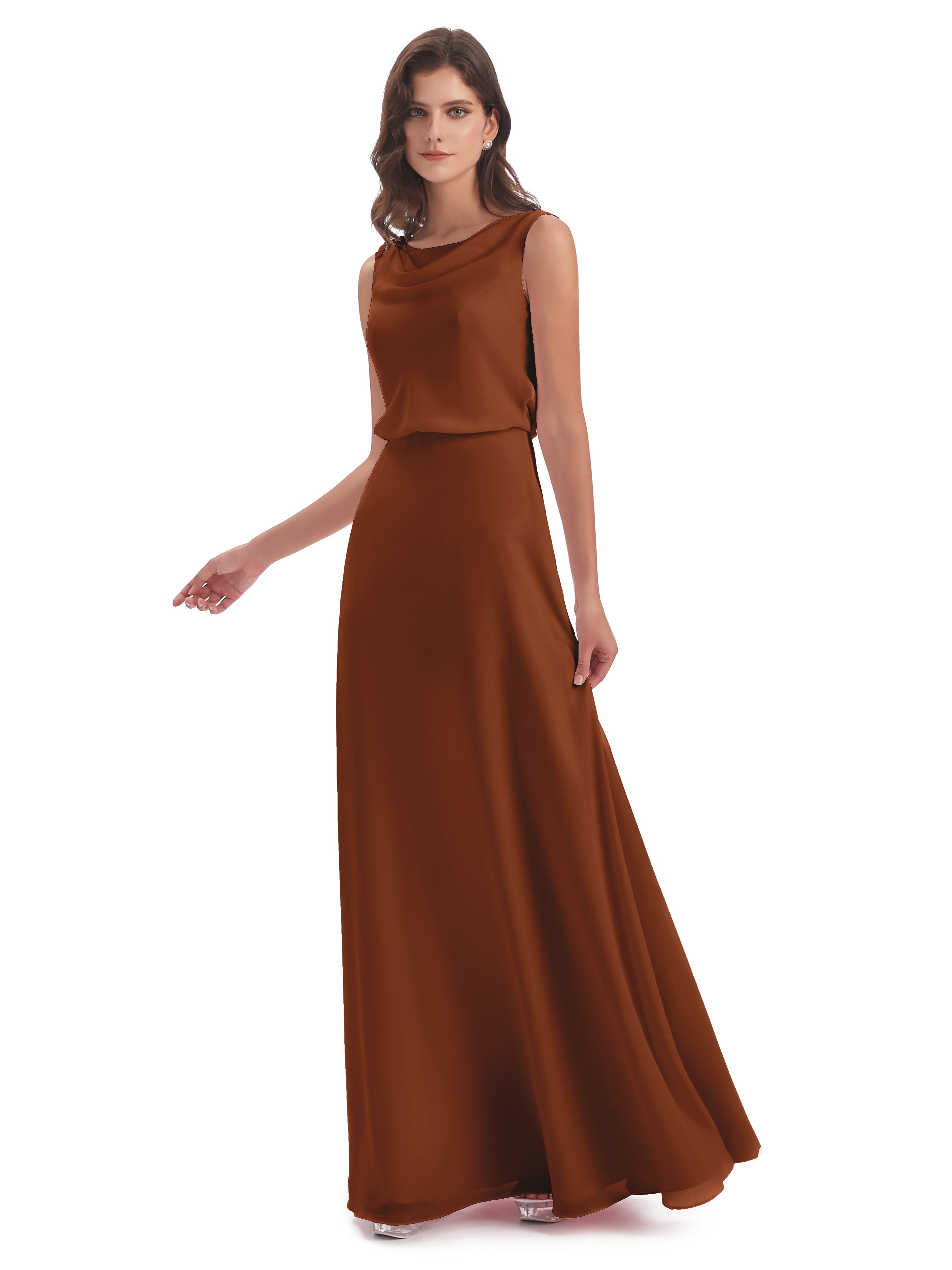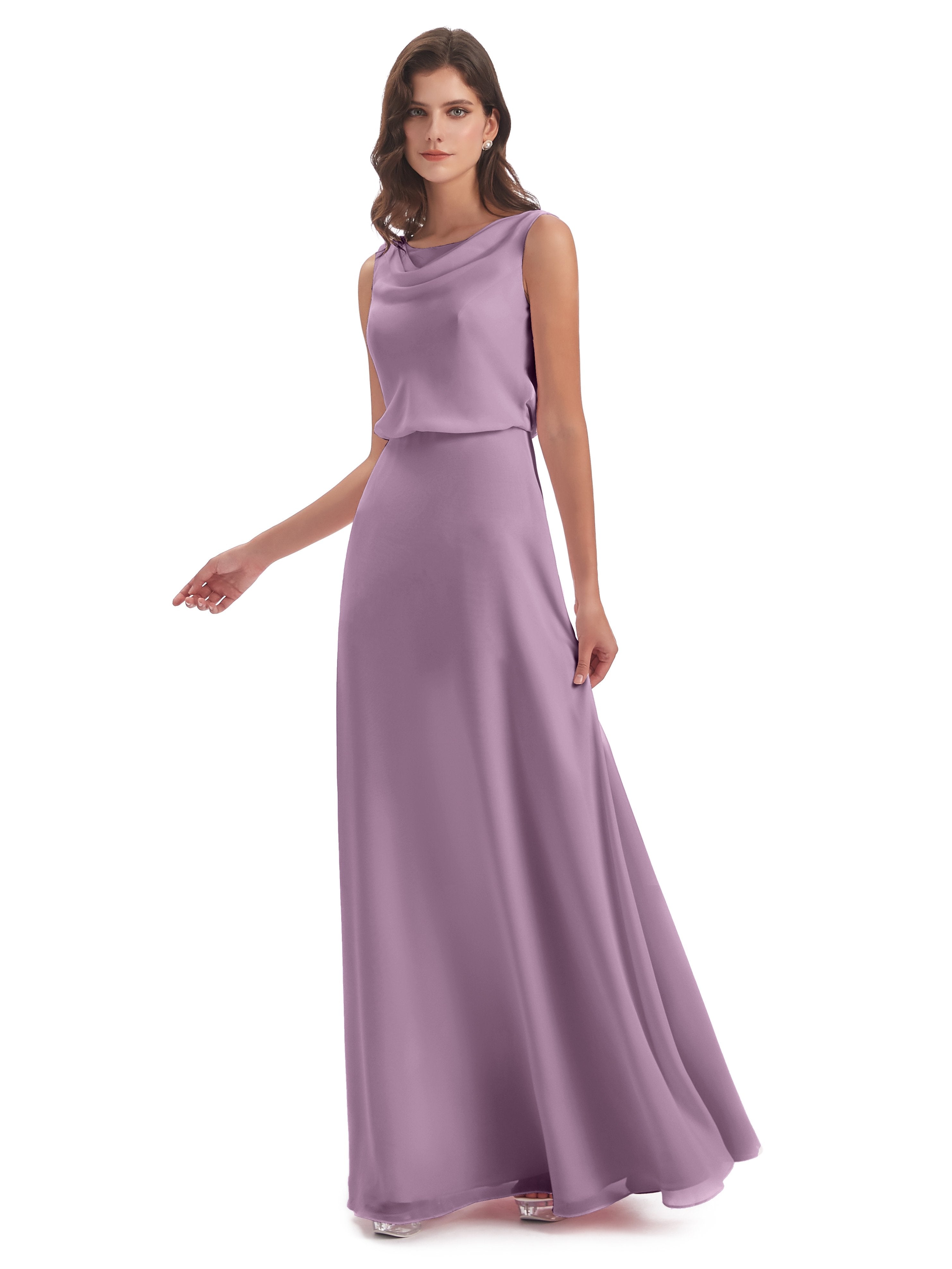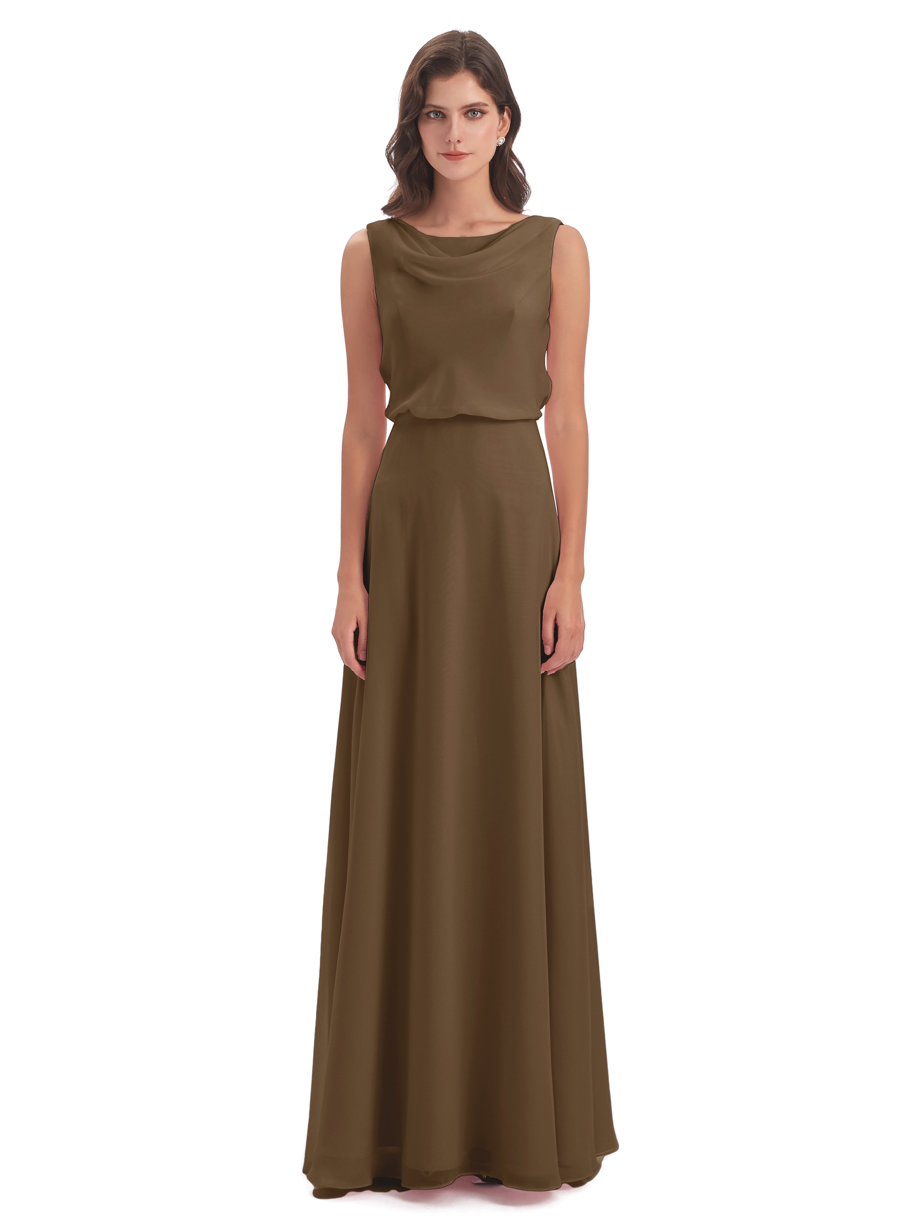 Layla Sheath Scoop V Back Chiffon Long Bridesmaid Dresses