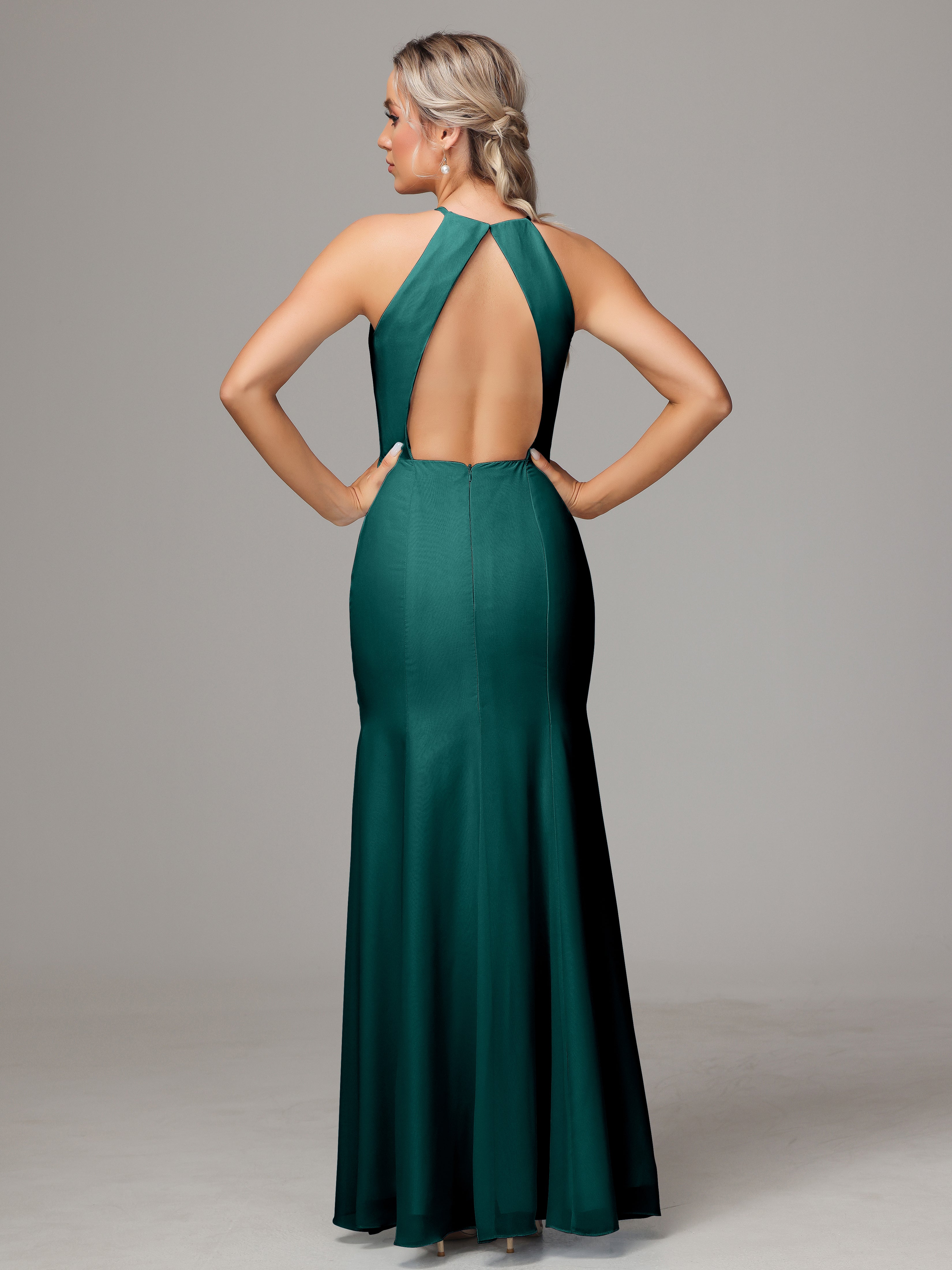 Halter Open Back Chiffon Wedding Guest Dress With Slit