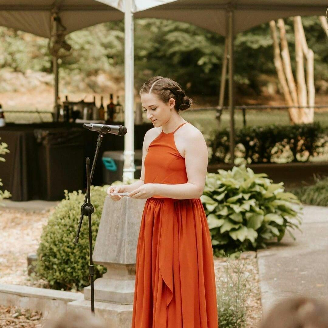 • Began at the hollow space between the collarbones and pull tape straight down to where your dress hem should hit(including train if there is one)