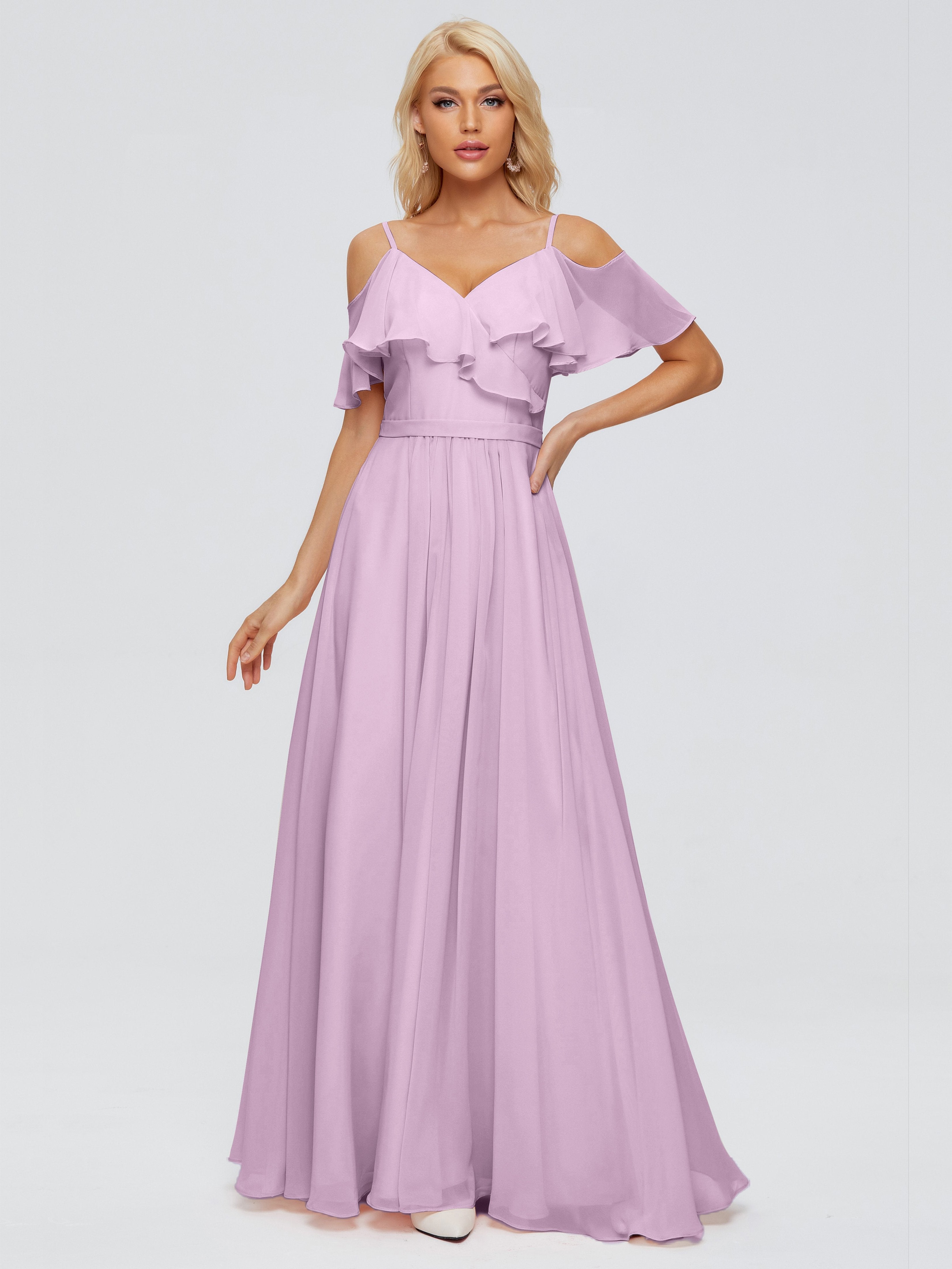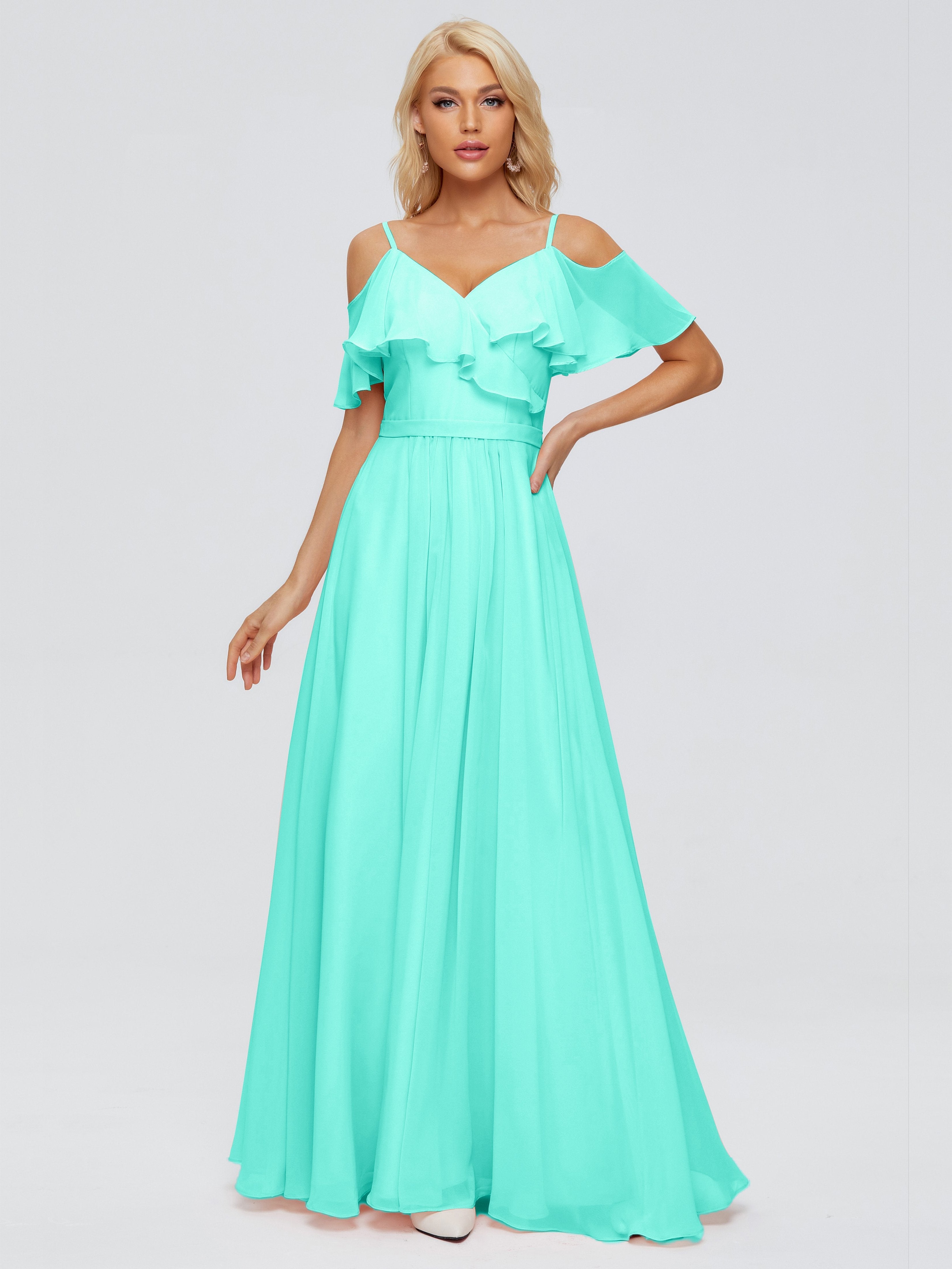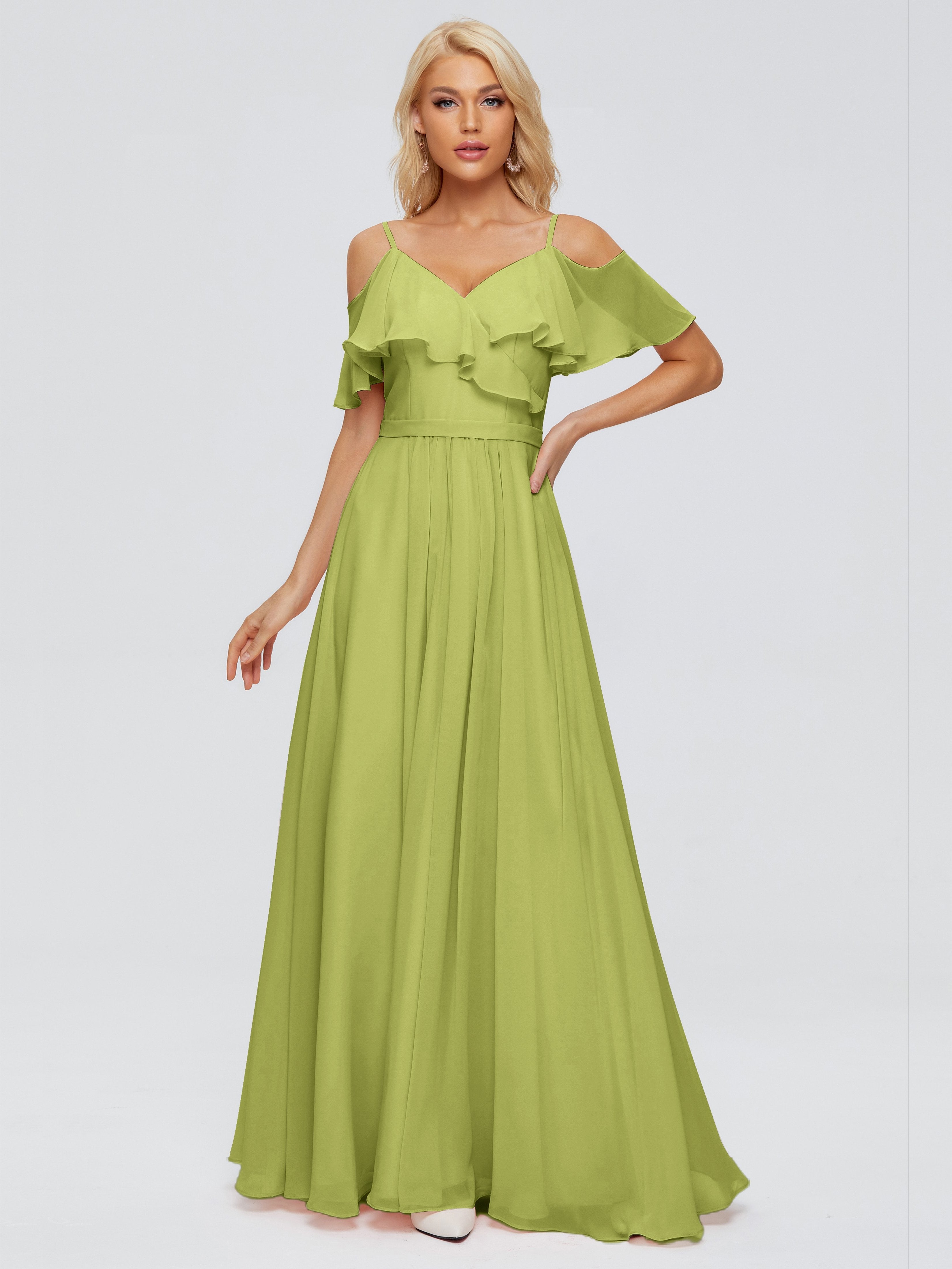 Katherine Spaghetti Straps Ruffles Chiffon Bridesmaid Dresses