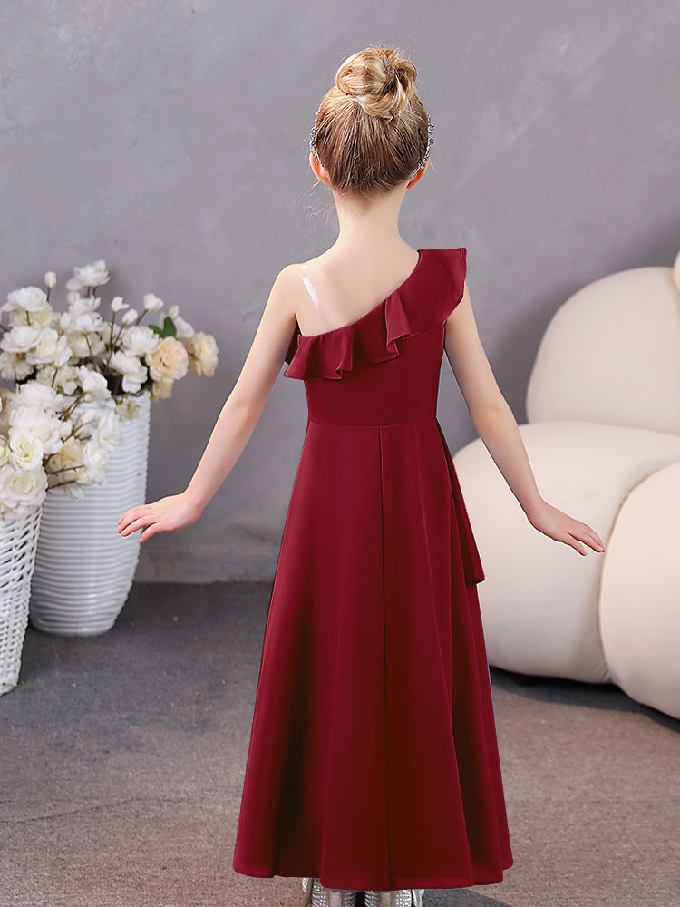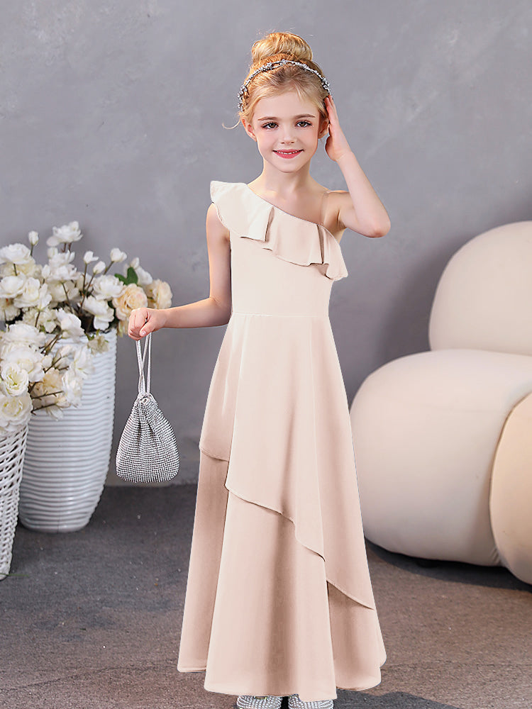 Elevate the elegance of your bridal party with our One Shoulder Ruffles Chiffon Junior Bridesmaid Dresses. Delicate chiffon and romantic ruffle details create a stylish and timeless look. Perfect for a junior bridesmaid, this one-shoulder dress is both modern and classic.
