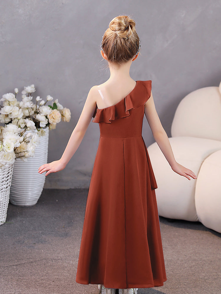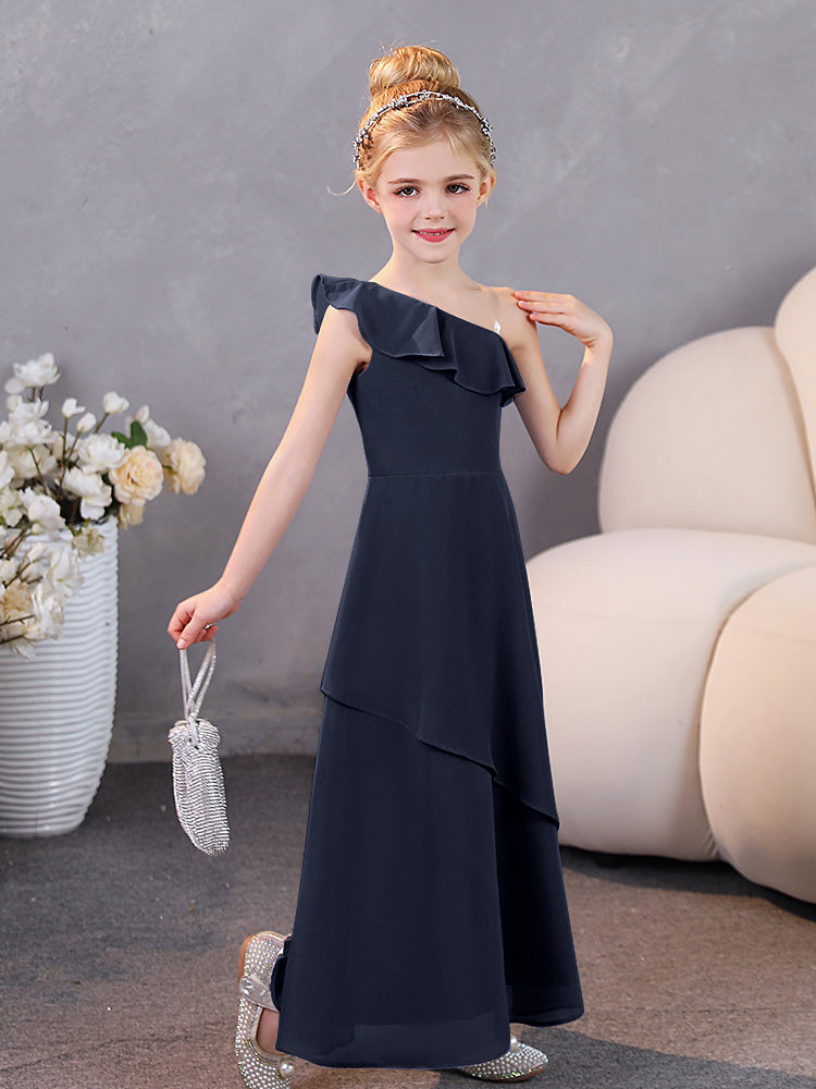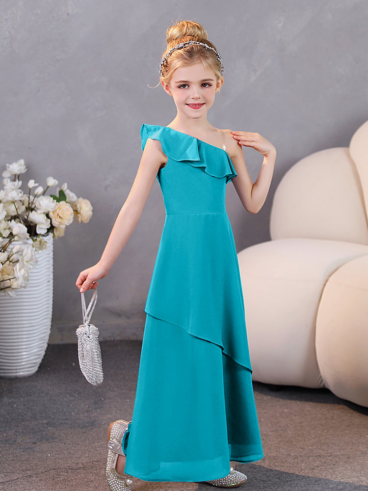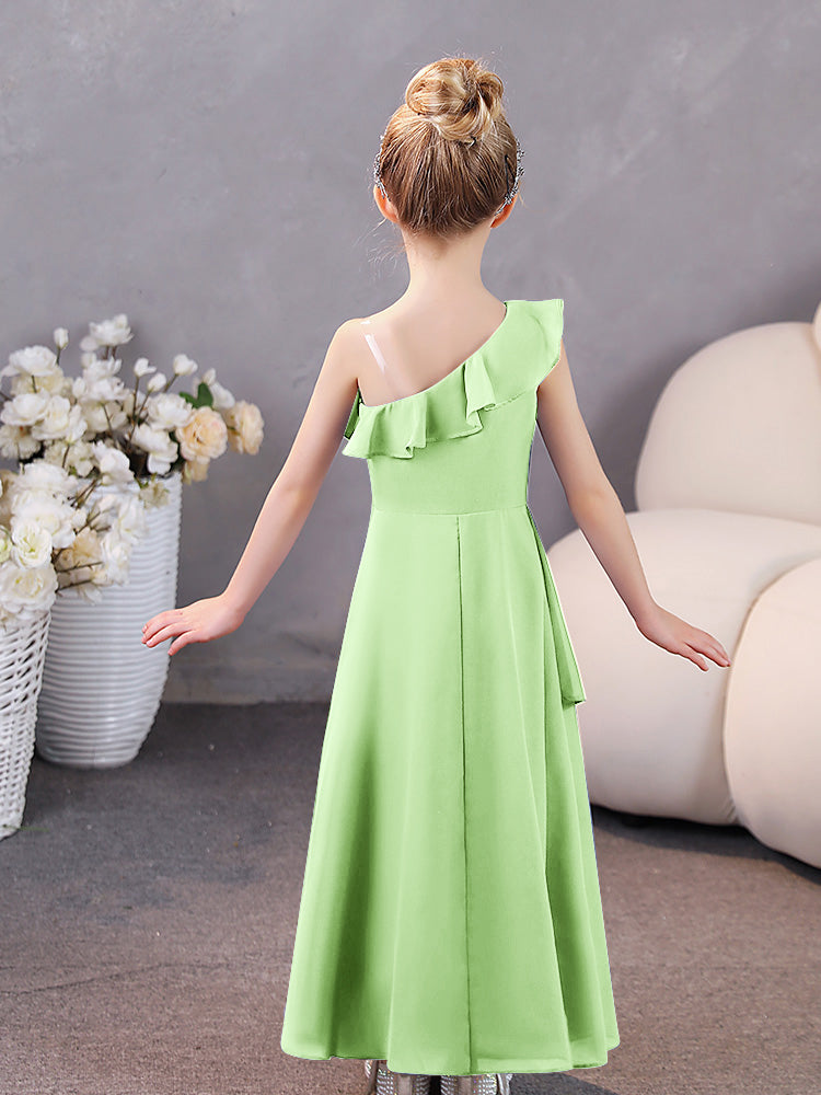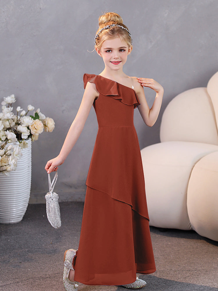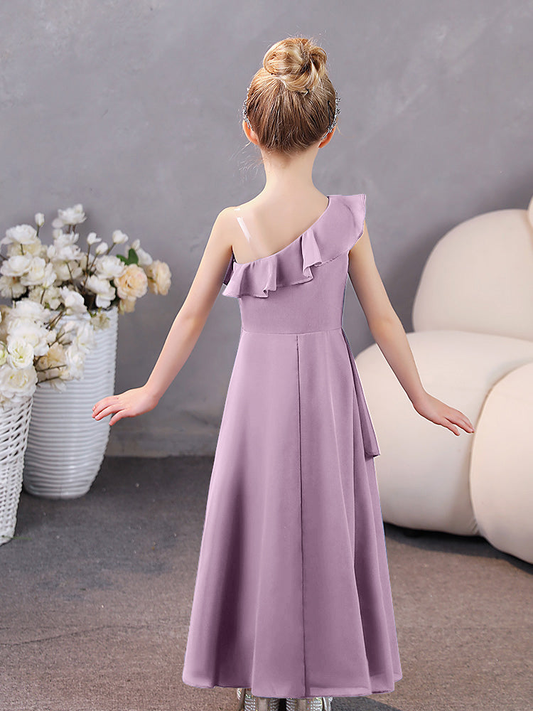 One Shoulder Ruffles Chiffon Junior Bridesmaid Dresses