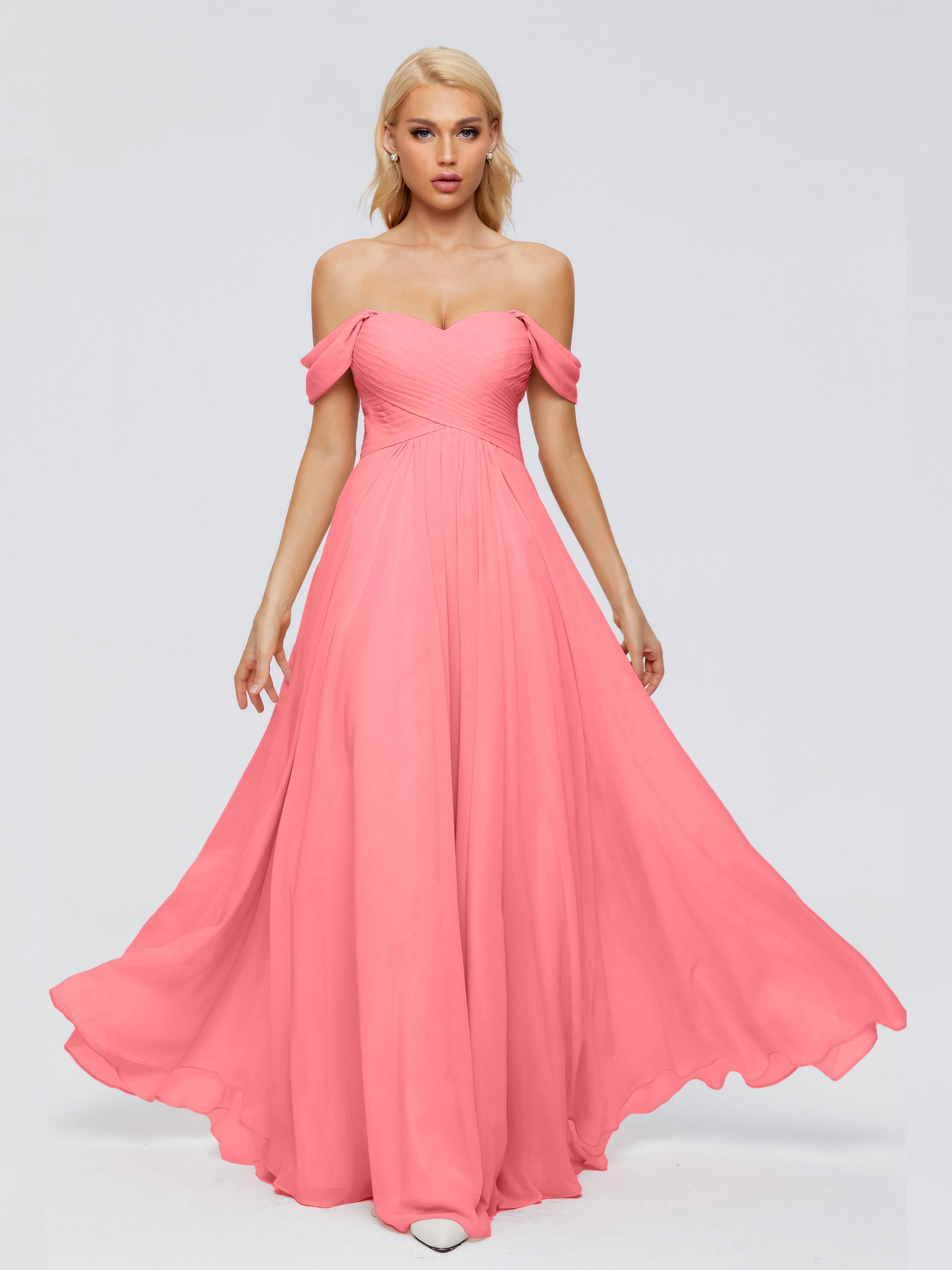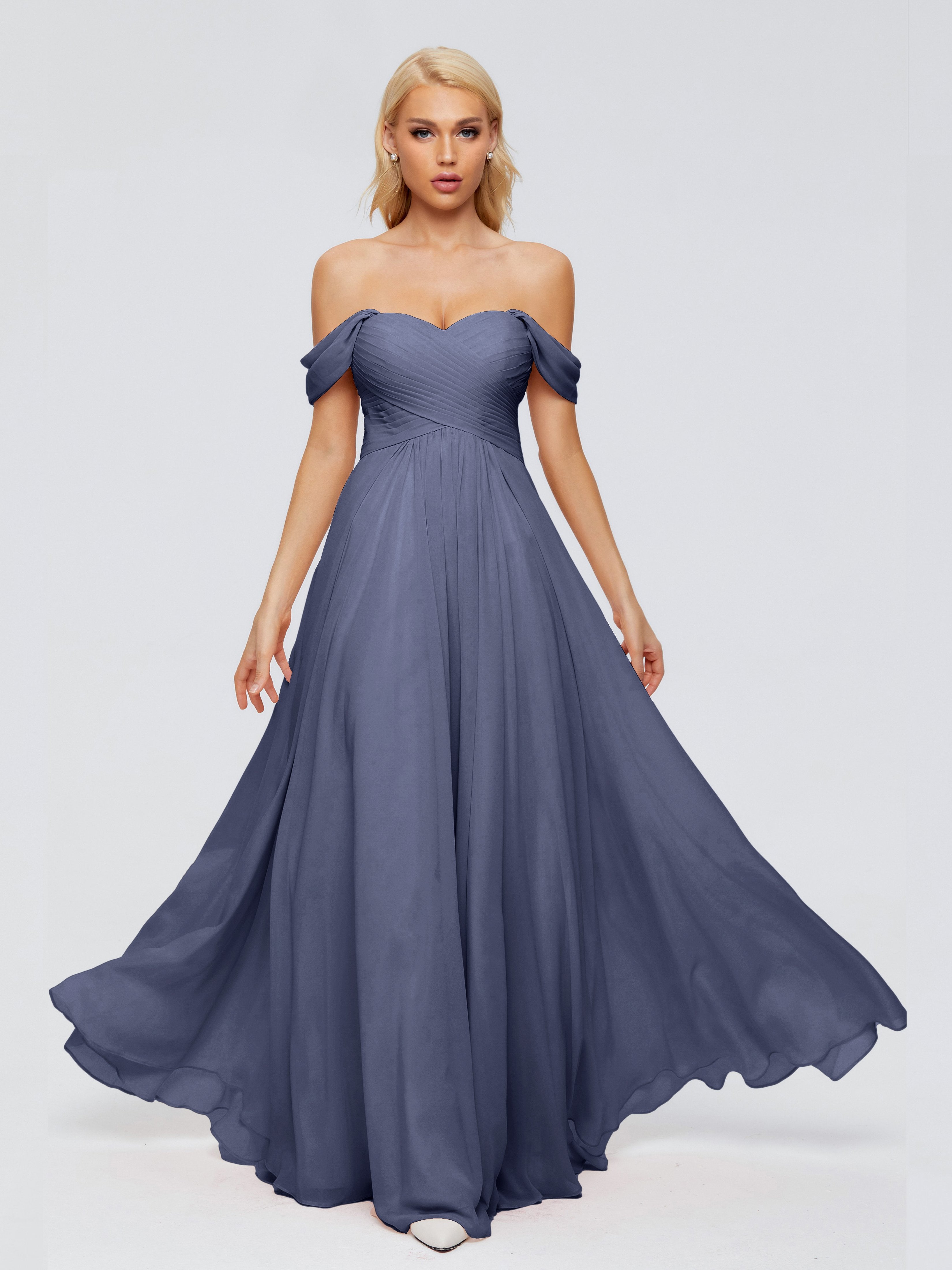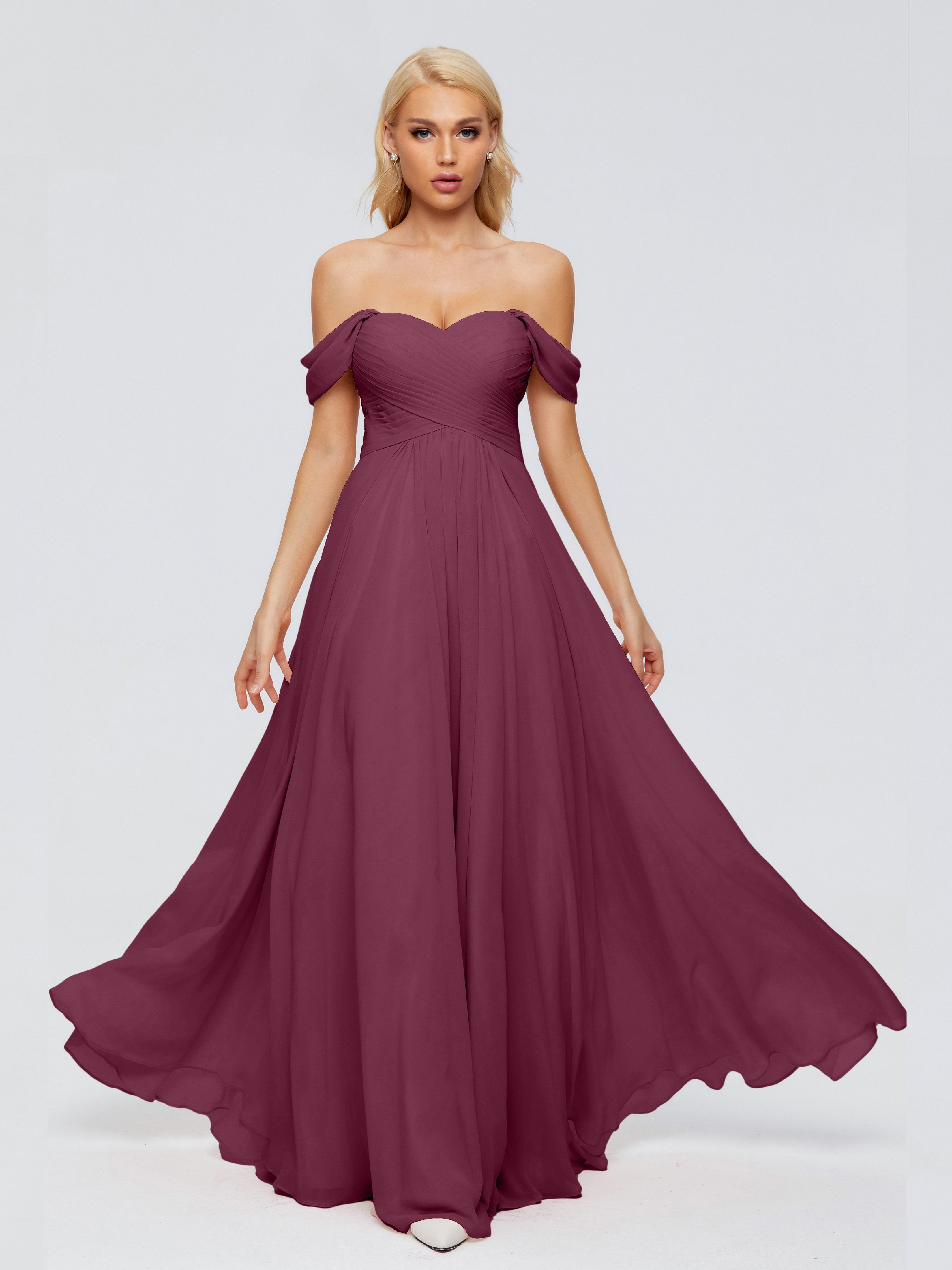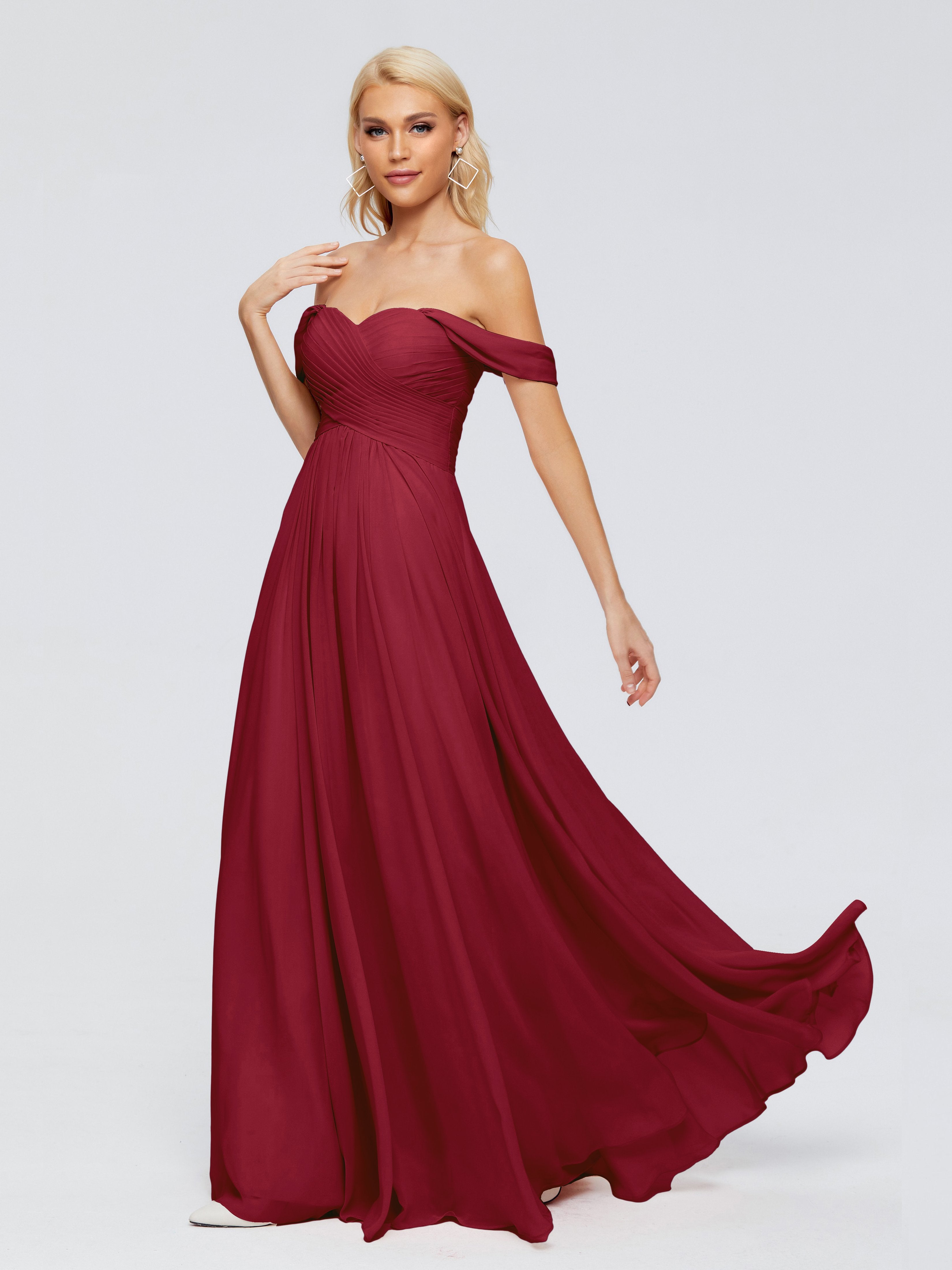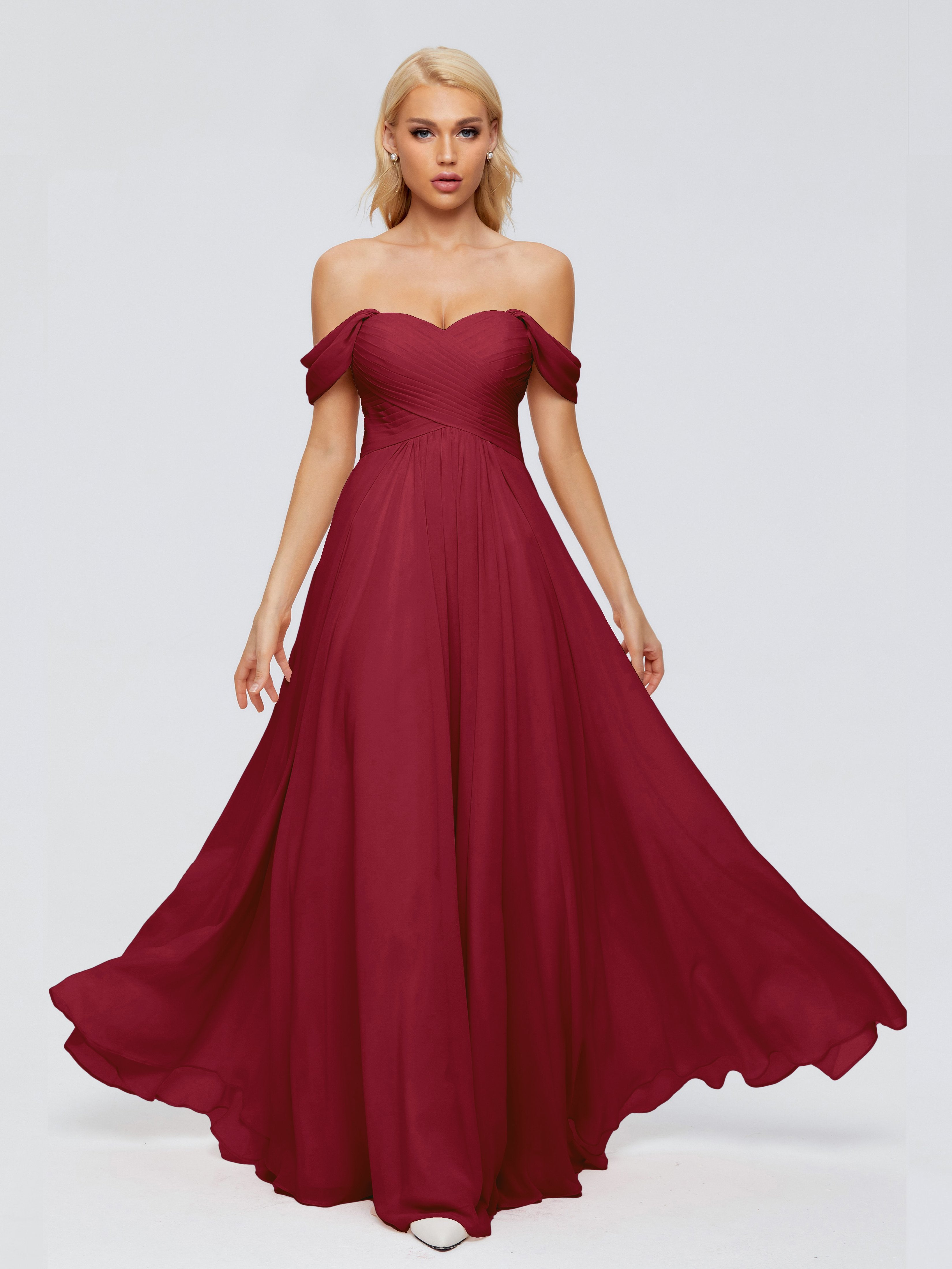 Trinity Off-The-Shoulder Chiffon Bridesmaid Dresses