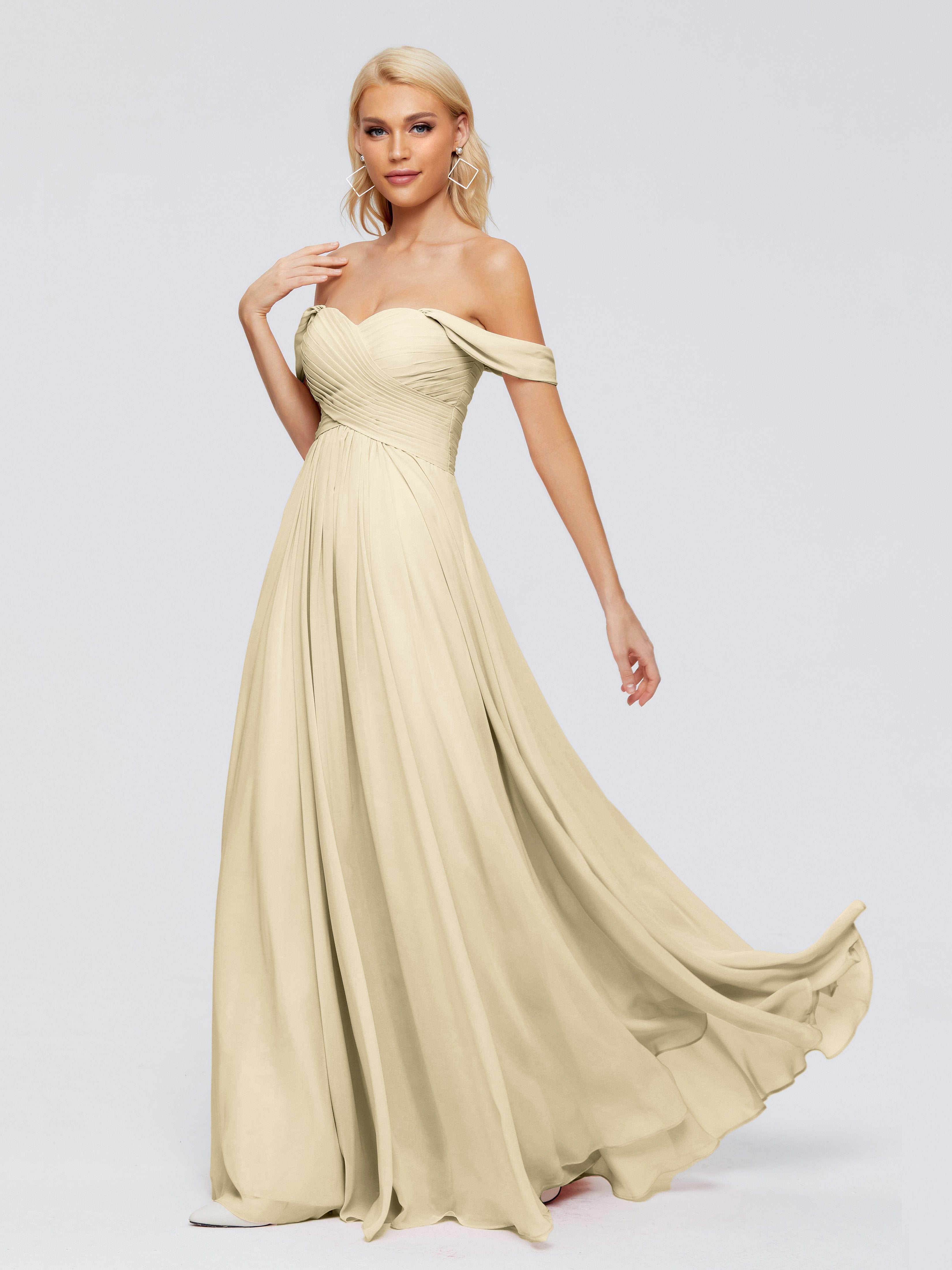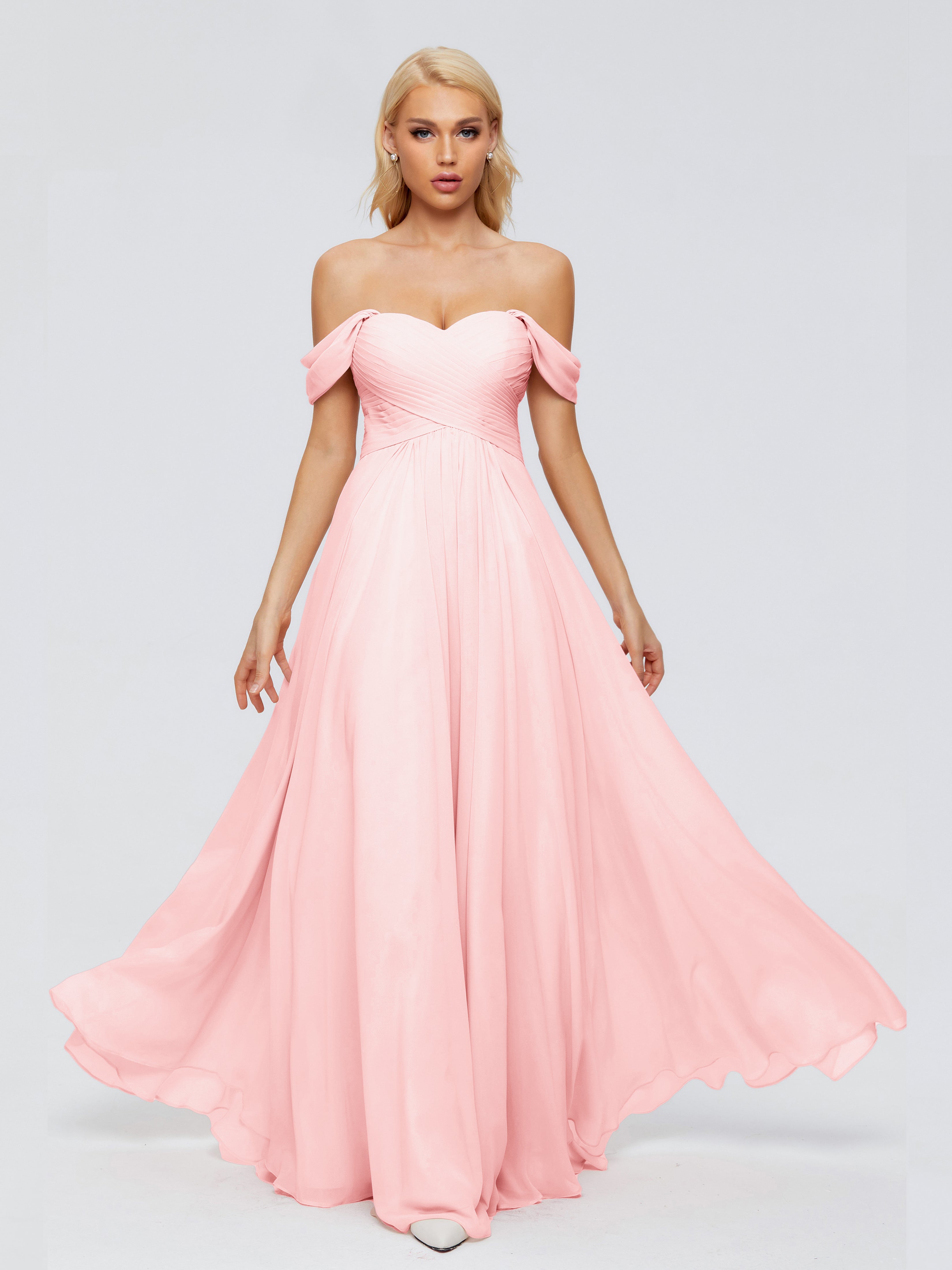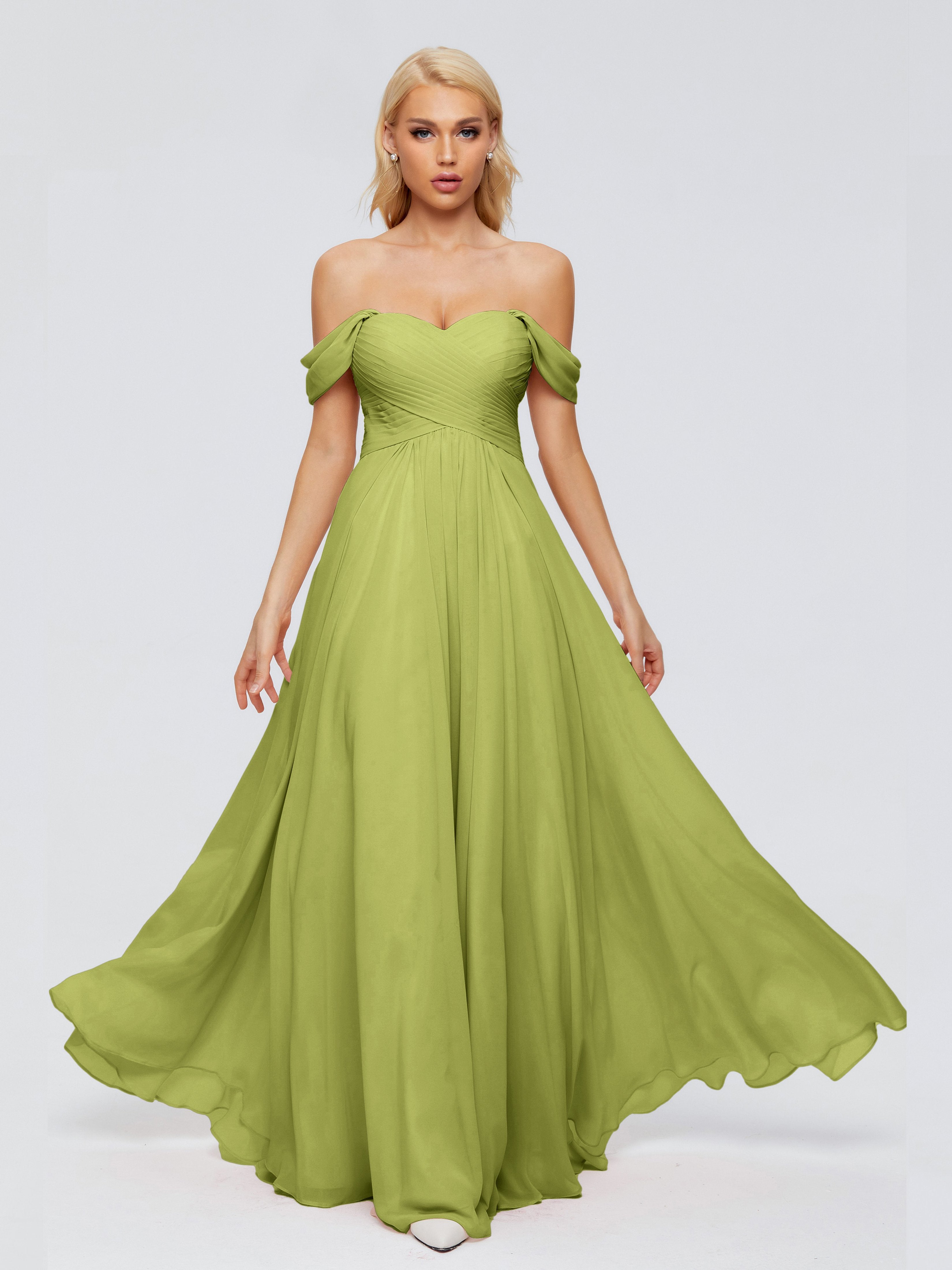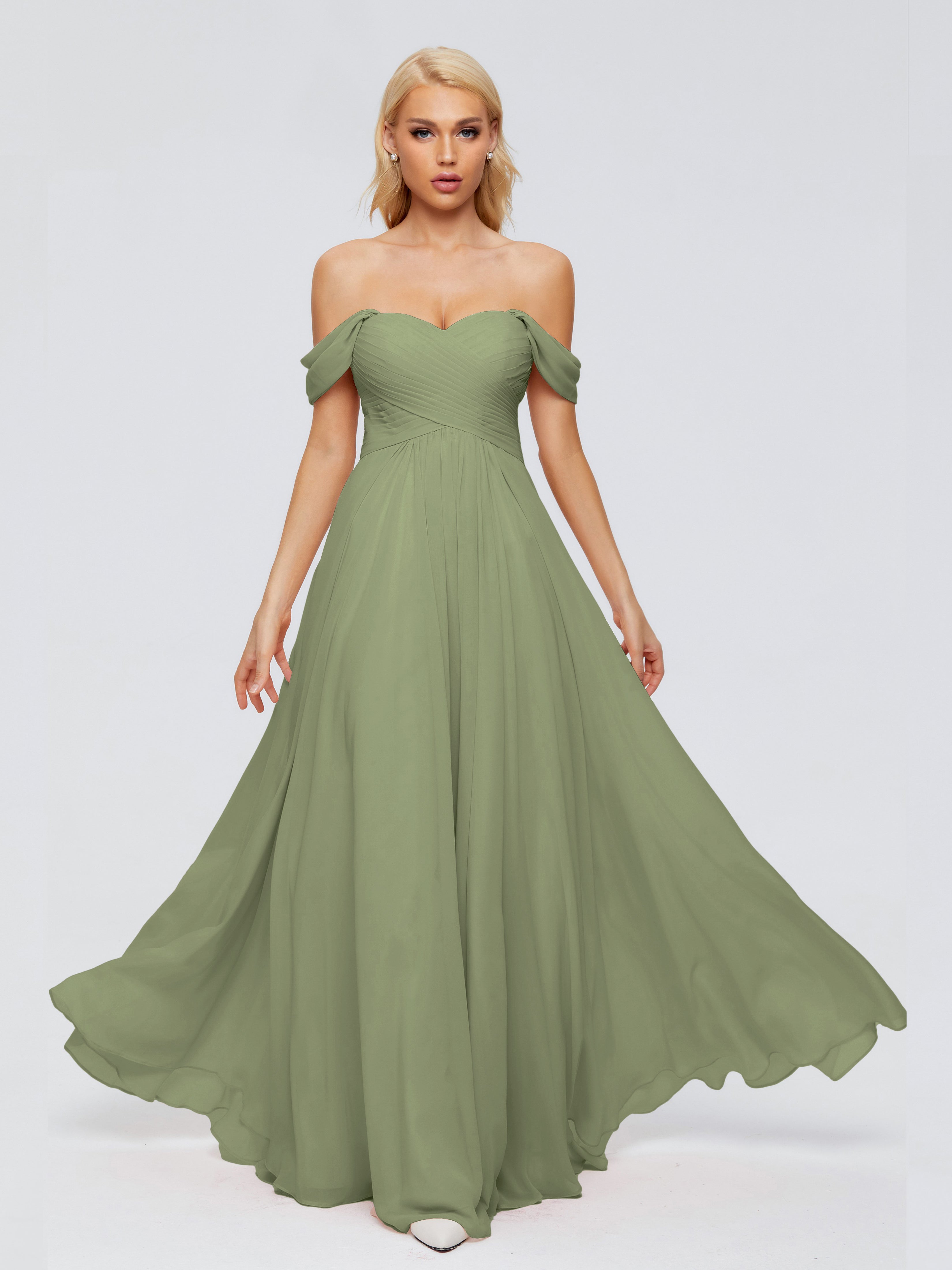 Trinity Off-The-Shoulder Chiffon Bridesmaid Dresses