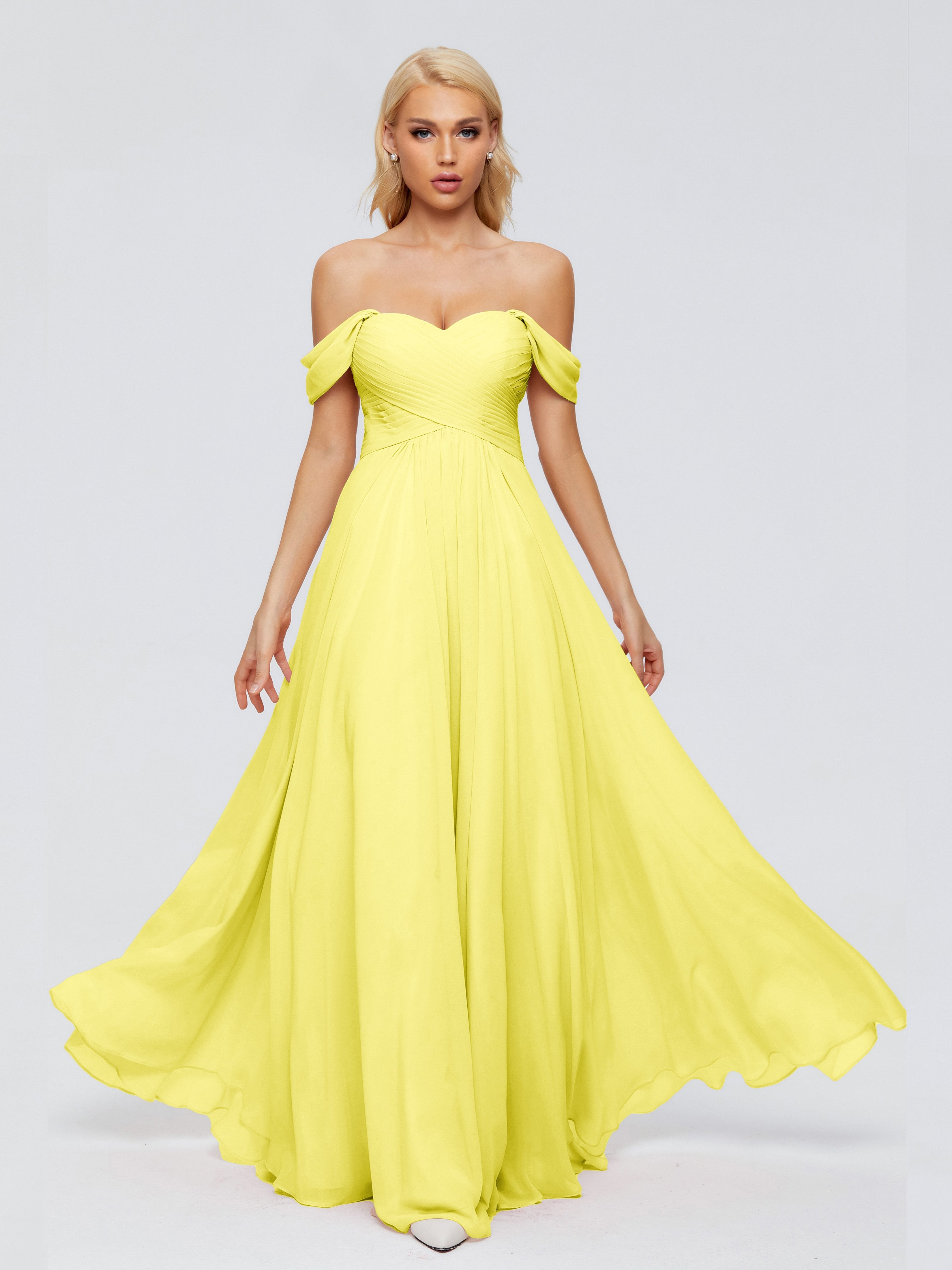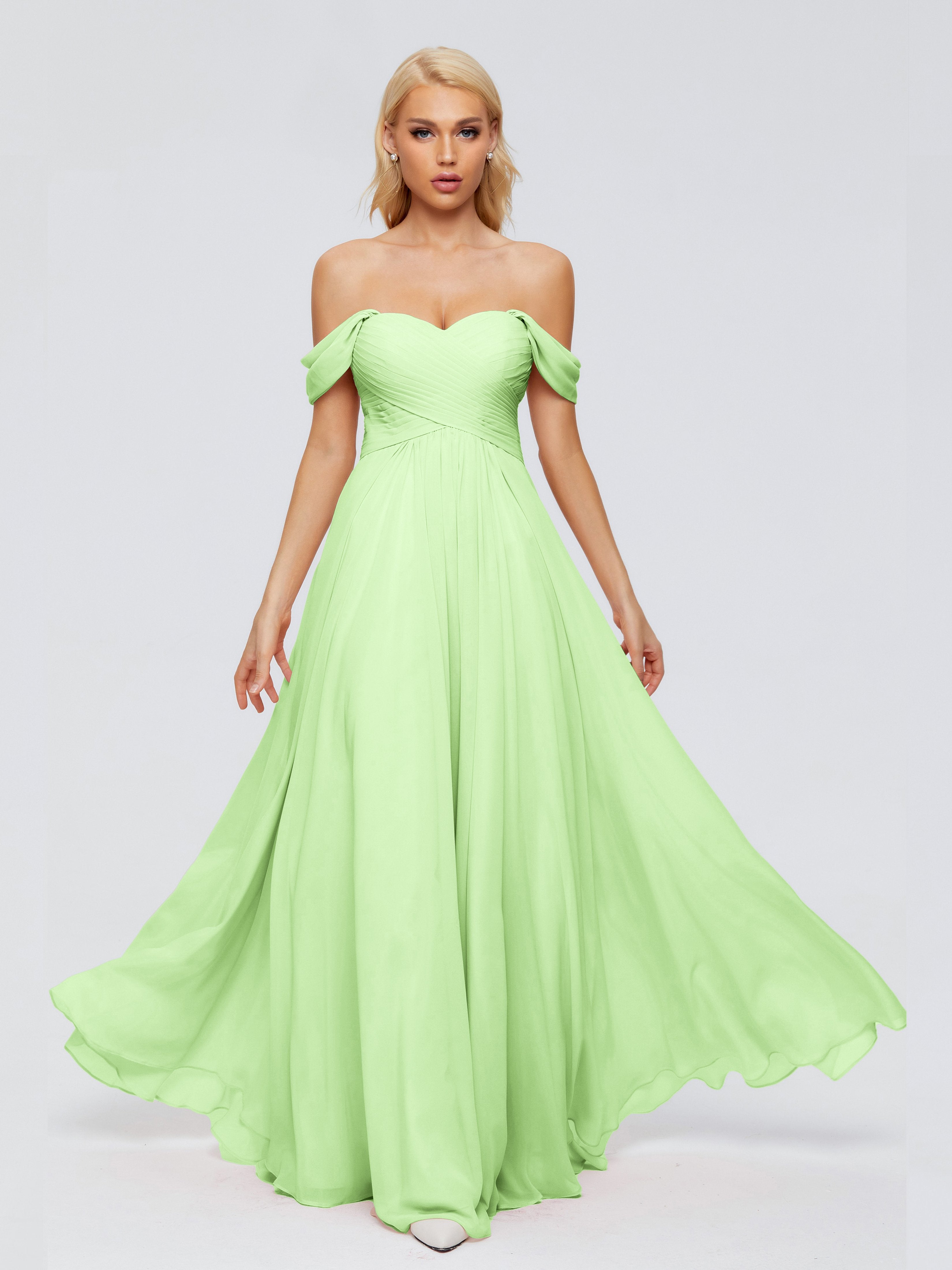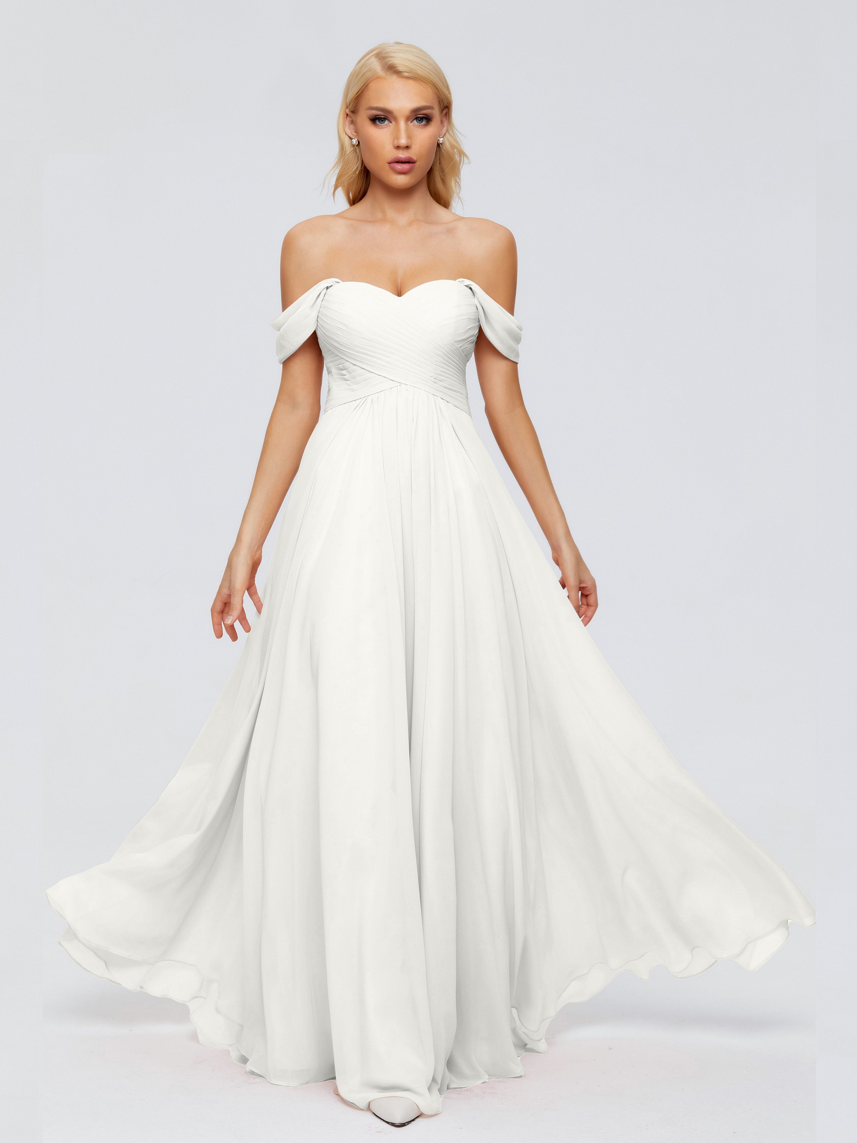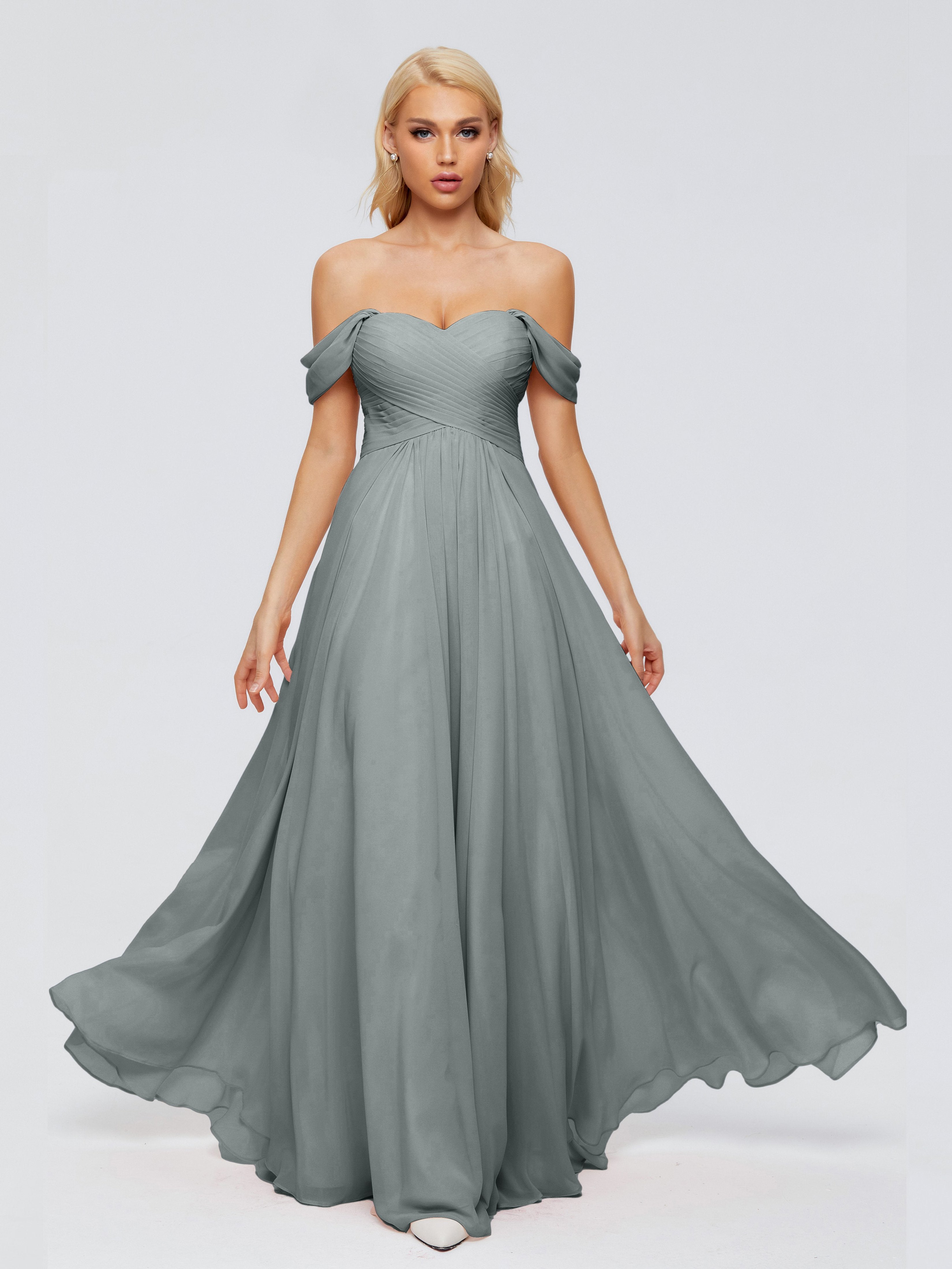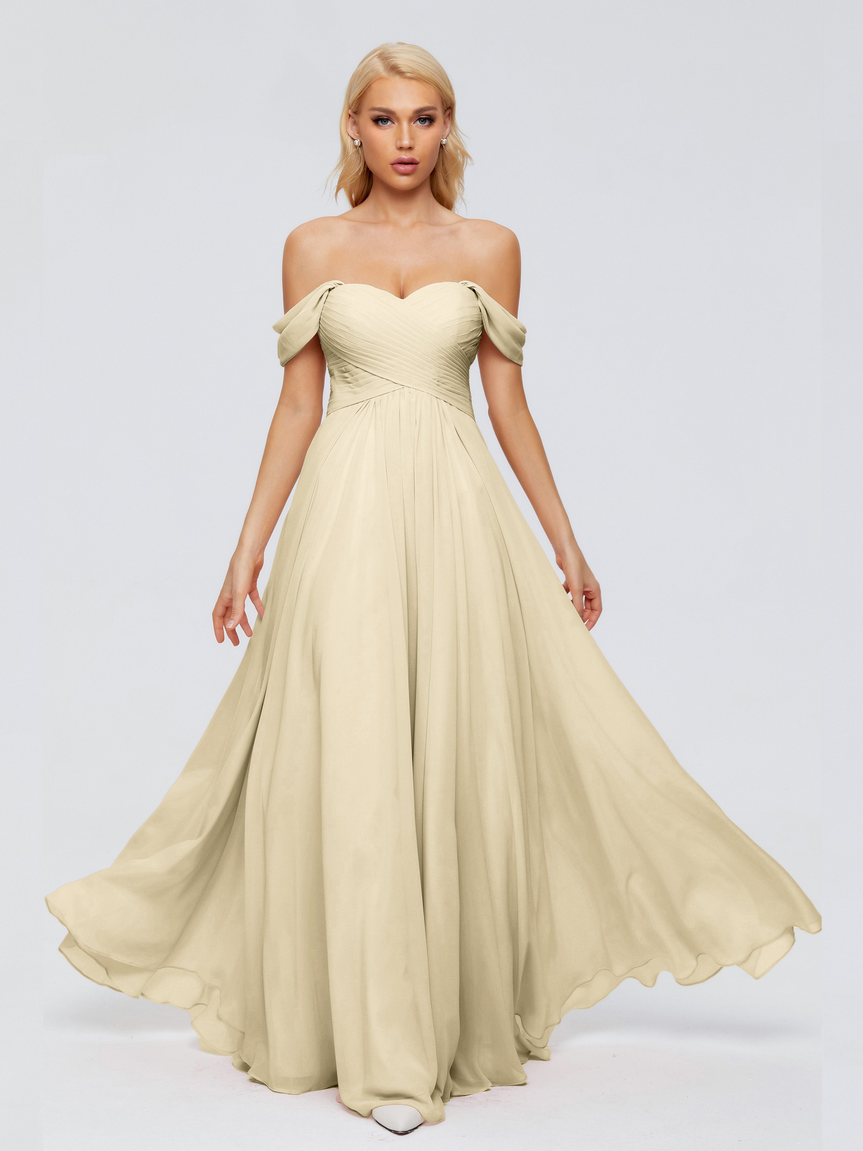 Trinity Off-The-Shoulder Chiffon Bridesmaid Dresses